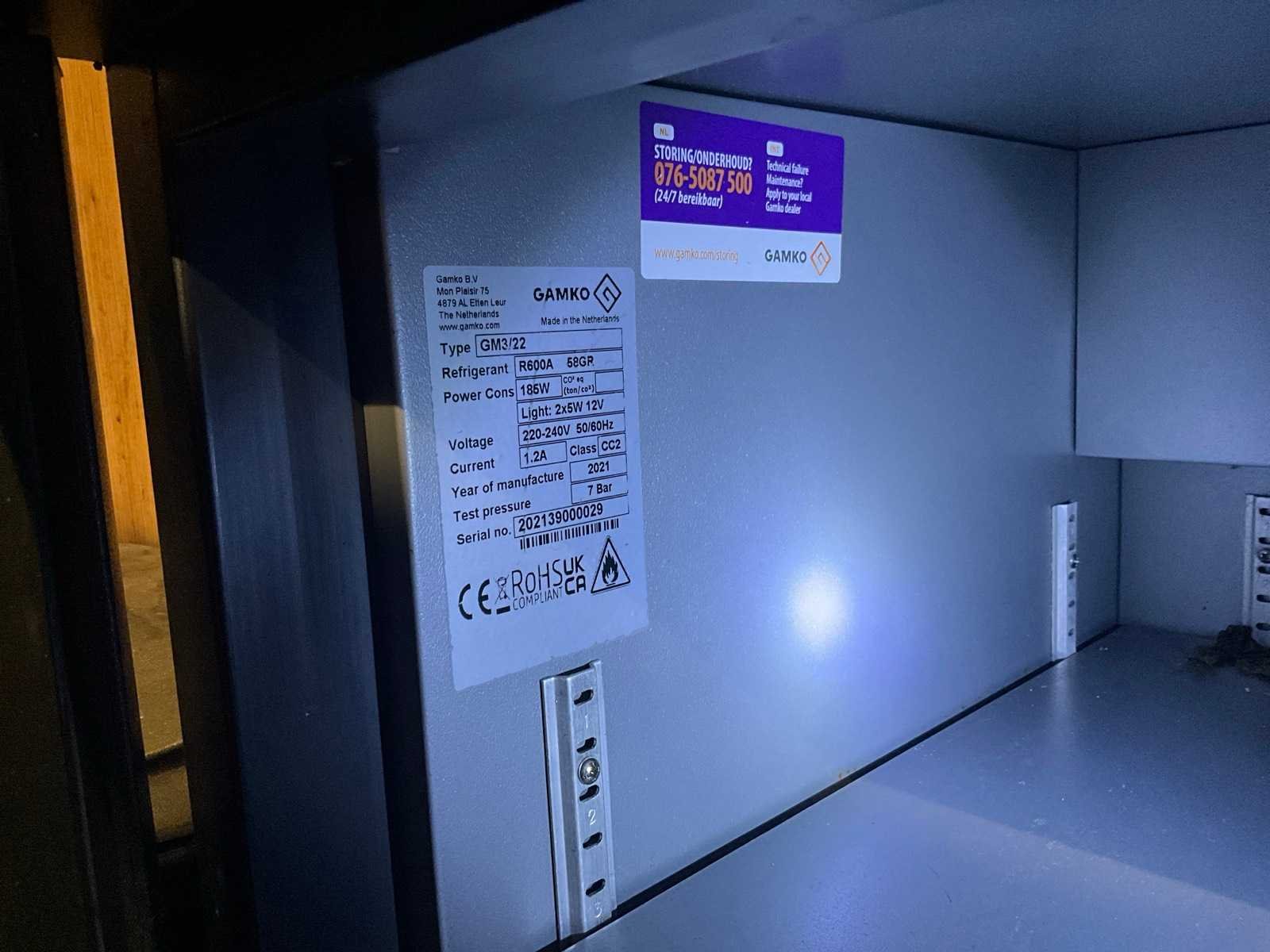Koelmiddel R600A Merk: Gamco Type: GM3/22 Serienummer: 202139000029 Klapdeur(en): 2 Bouwjaar: 2021 Digitale uitlezing: true Aansluiting: 220V Totale afmeting L: 560mm Totale afmeting Breedte: 1110mm Totale afmeting Hoogte: 840mm