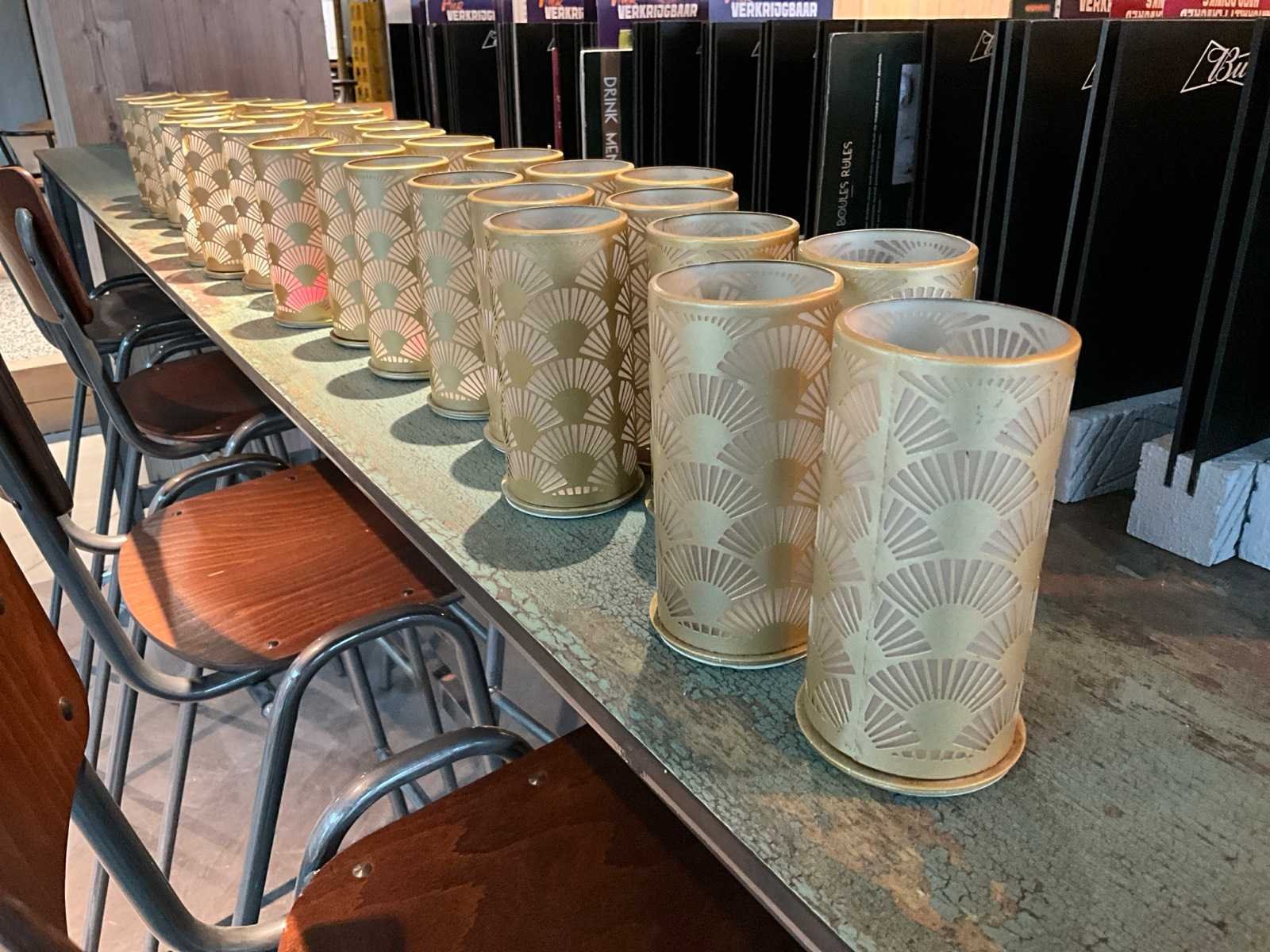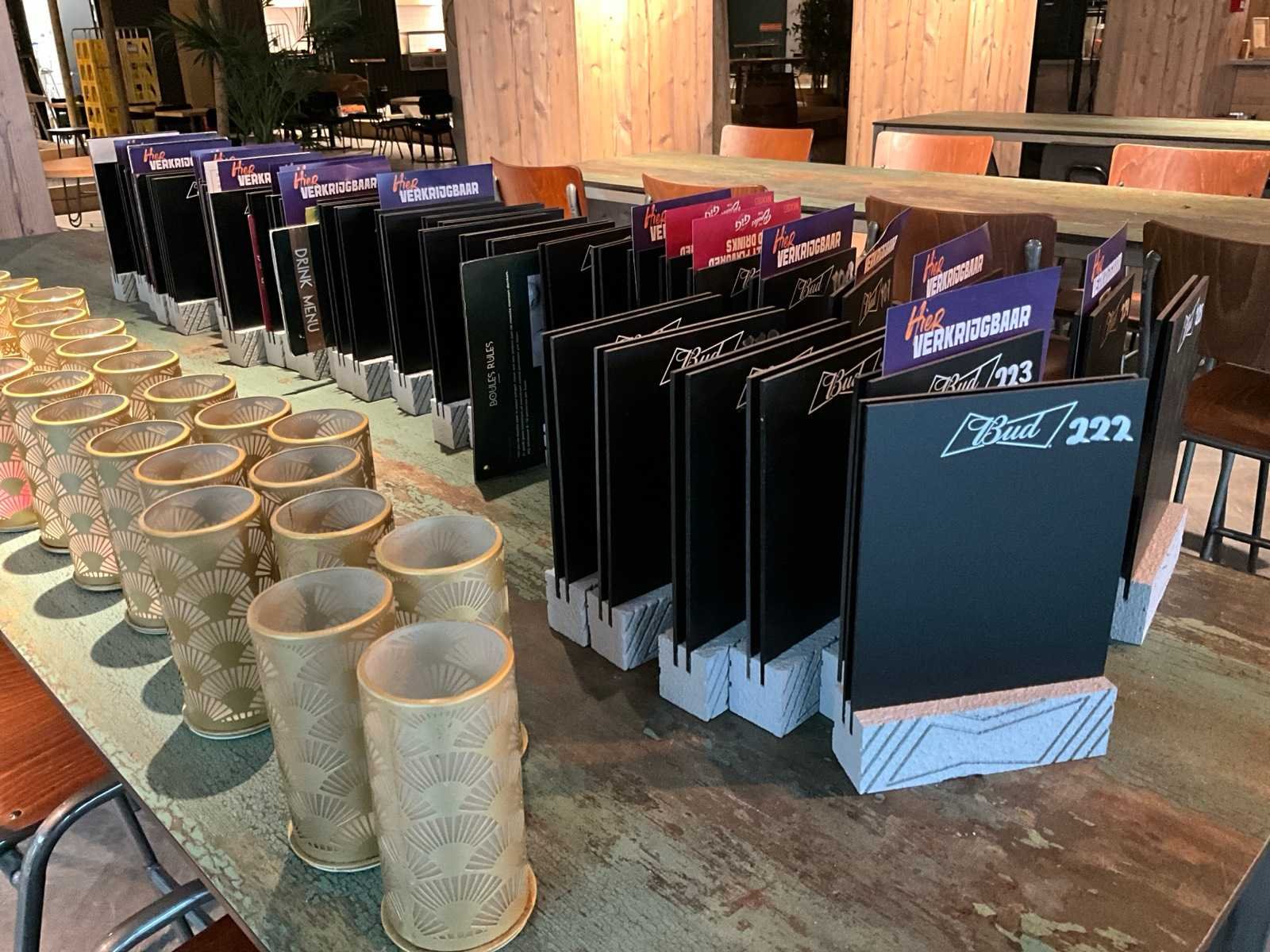 Waaronder tafelverlichting met elektrisch oplaadbare lichtbron, oplaadstation en schrijfbordjes in 3 Kunstof bakken