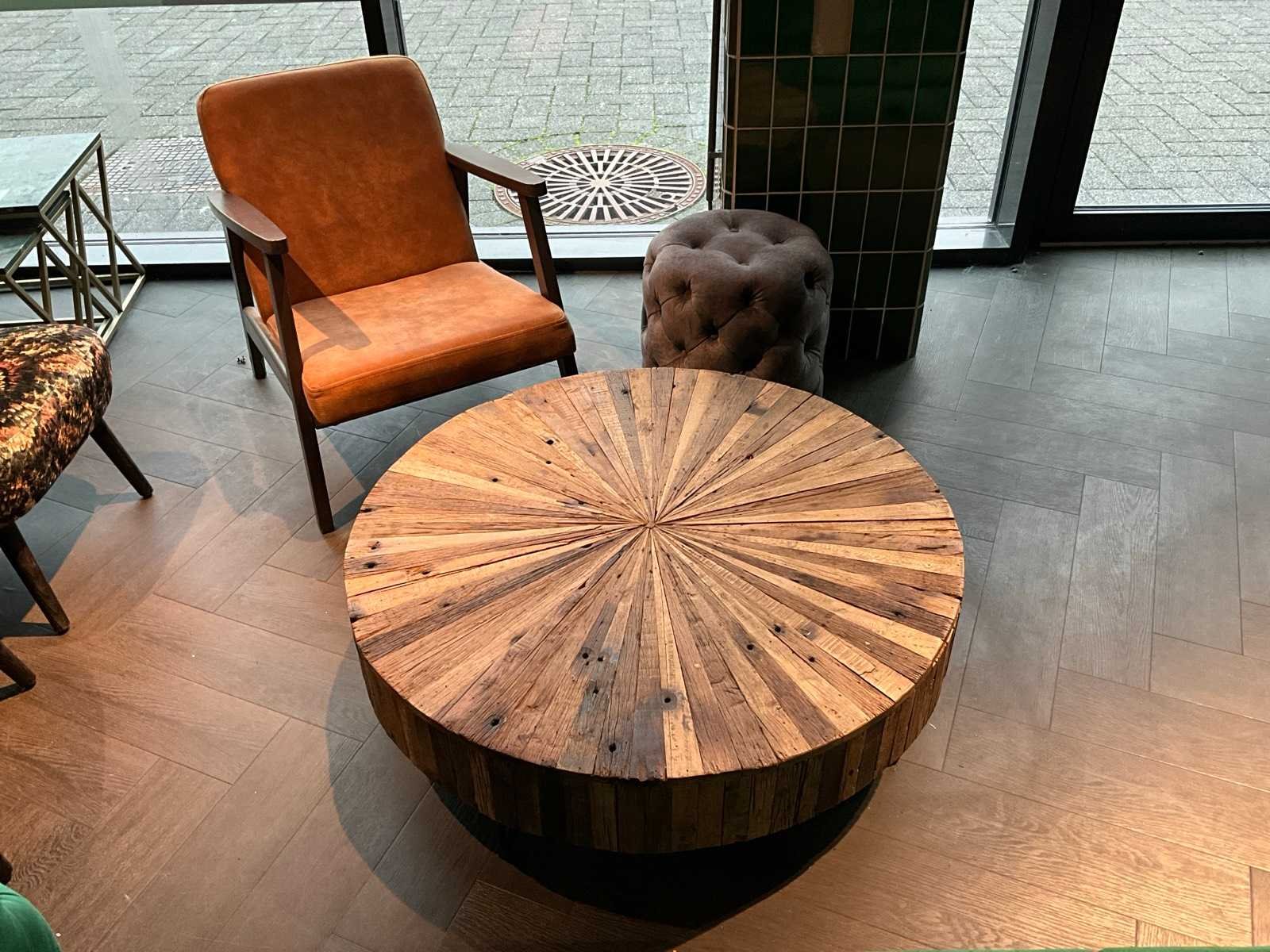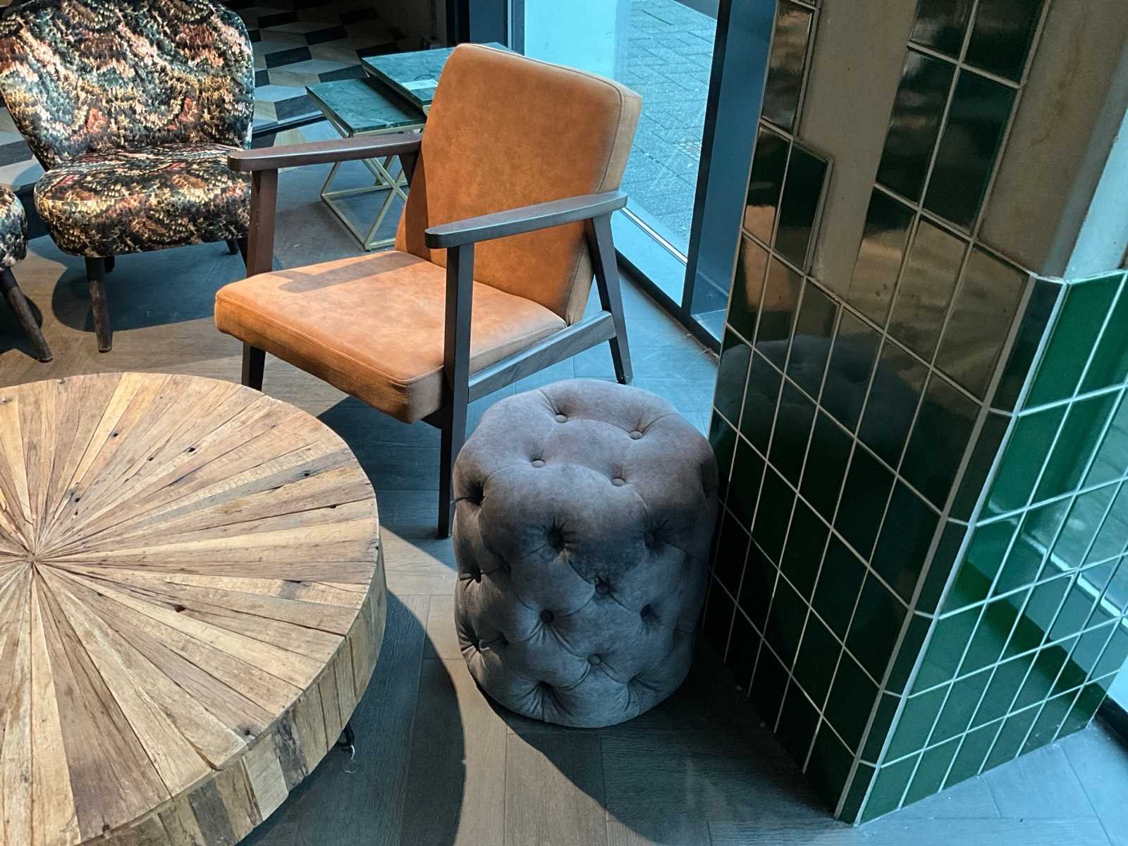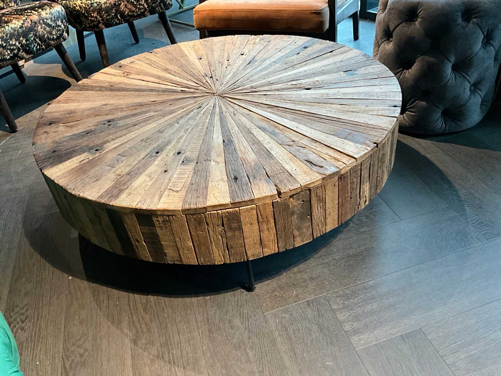 Met 1 stuks stoel suède gestoffeerd en 1 stuks poef kleur grijs Type: Rond Totale afmeting Breedte: 1000mm Totale afmeting Hoogte: 320mm Hout: true