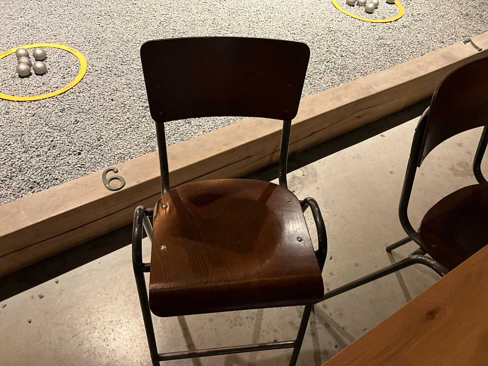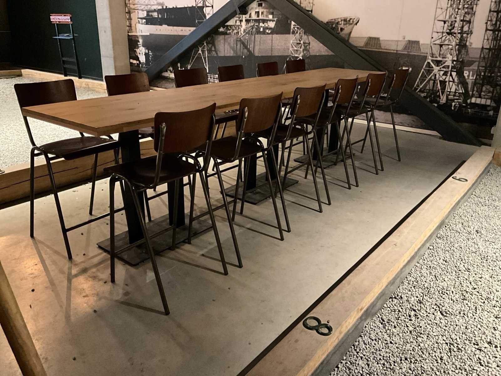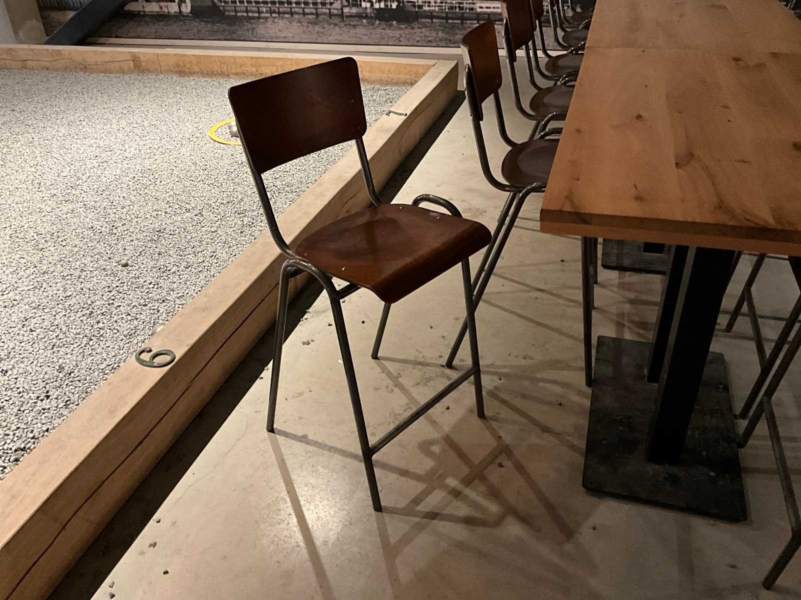 Voorzien van 3 tafels afmeting 120x70x92cm en 12 stuks stoel met houten zit en rug gedeelte Type: Hoog