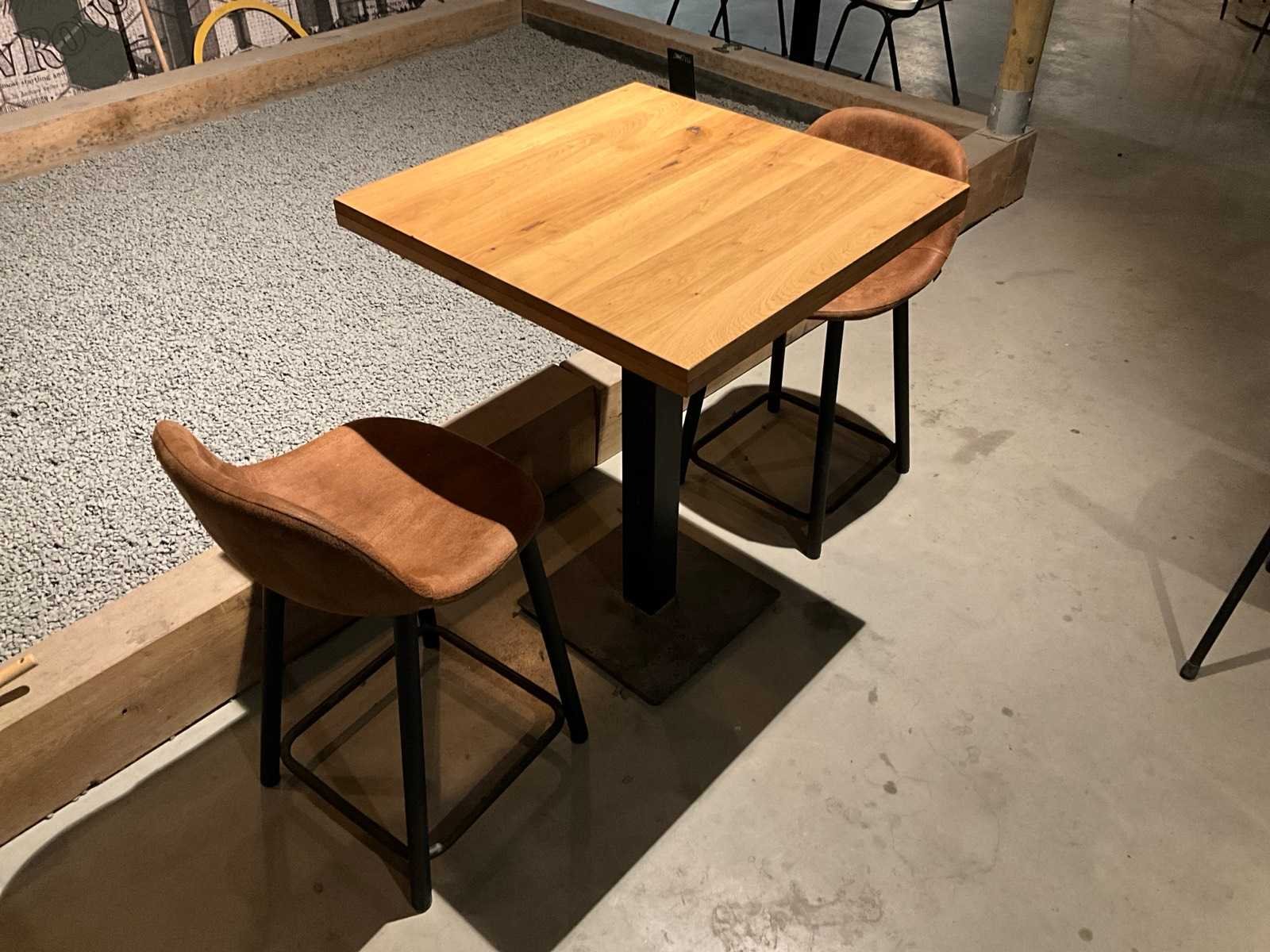 Met 2 stuks zitkruk voorzien van sky lederen bekleding, Kleur bruin Totale afmeting L: 700mm Totale afmeting Breedte: 700mm Totale afmeting Hoogte: 920mm Hout: true Metaal: true