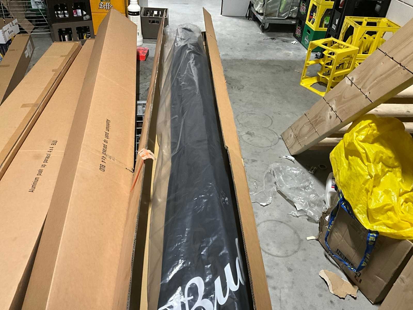 Ongebruikt in verpakking, zonder voet Merk: BUD BEER Model: Aluminium Product type: 4x4 Vorm: Vierkant Kleur: Zwart Lengte: 400cm Breedte: 400cm Hoogte: 374cm