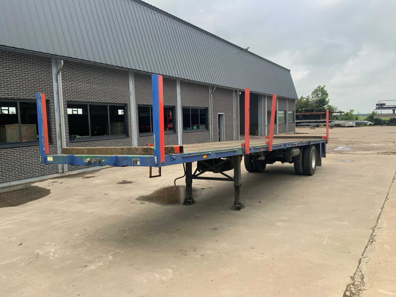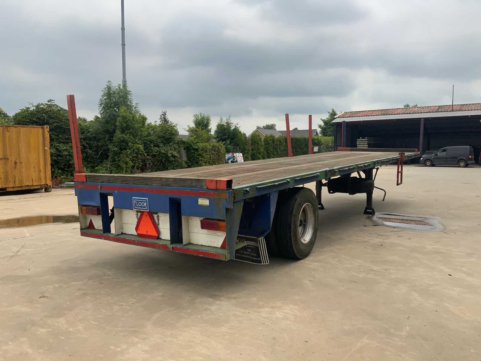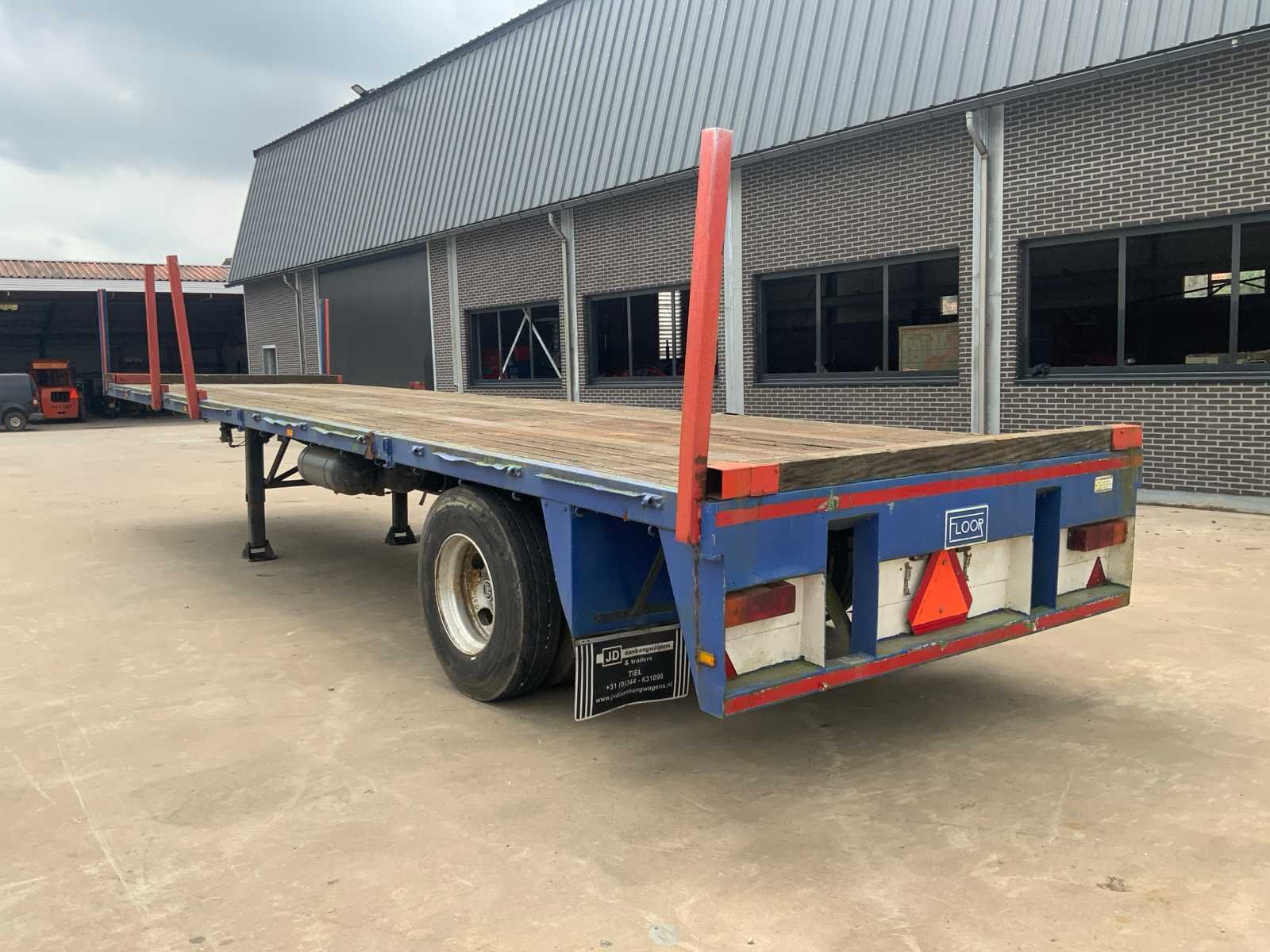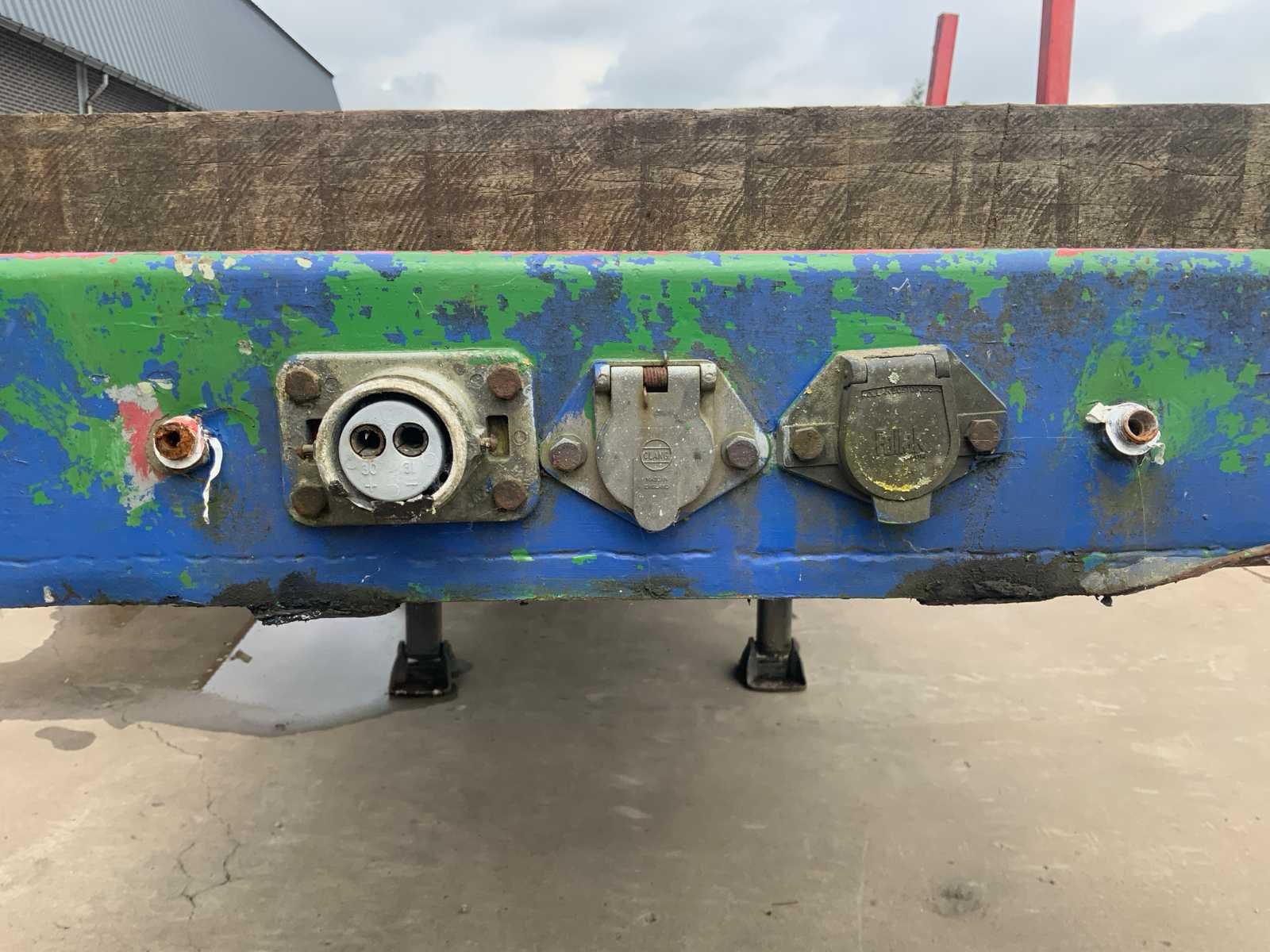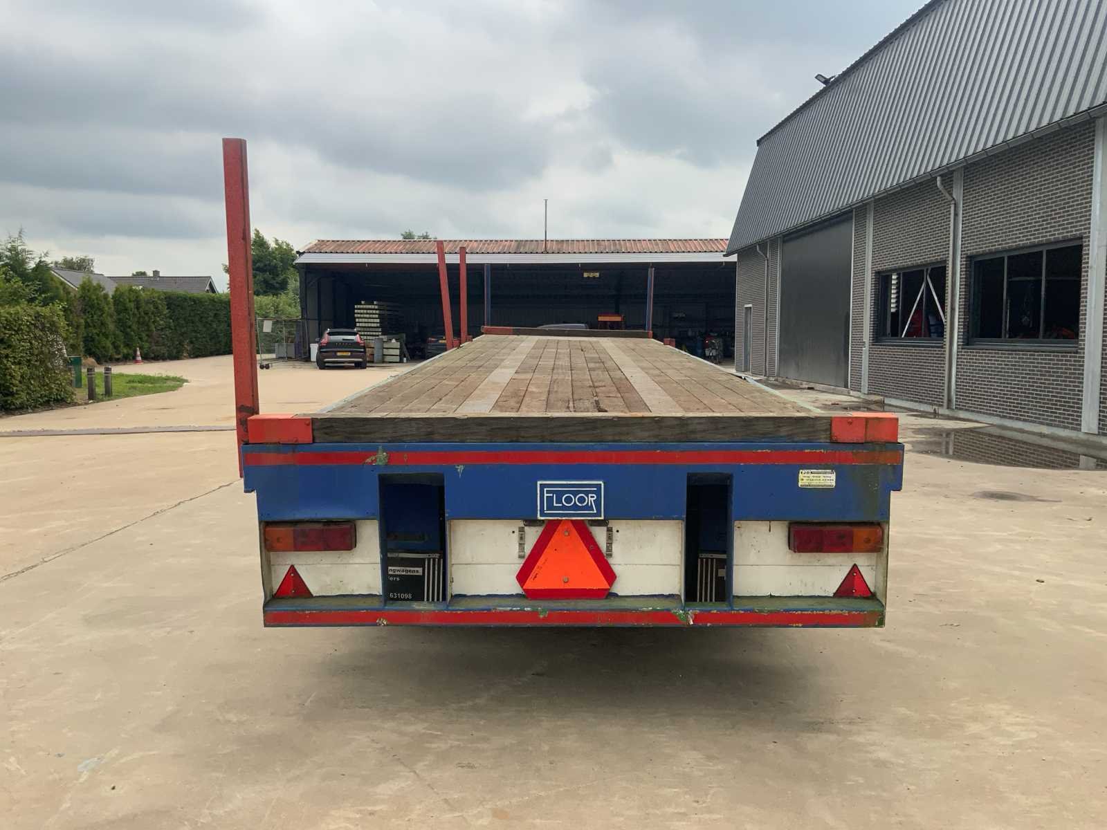 Houten vloer / stalen frame * handmatig bedienbare steunpoten * luchtremmen * 2 en 3 polige stekker aansluiting voor * meesturende ass met dubbele banden (4 banden) * voorzien van reservewiel * gewicht geschat op circa 5000 kilo Merk: Floor Type: FL0-10-102 Bouwjaar: 1988 Chassisnummer VIN: 8094 Laadvermogen: 22000kg Totale afmeting L: 10400mm Totale afmeting Breedte: 2600mm Totale afmeting Hoogte: 1250mm Leveringsvoorwaarden: Niet gefundeerd - onverpakt