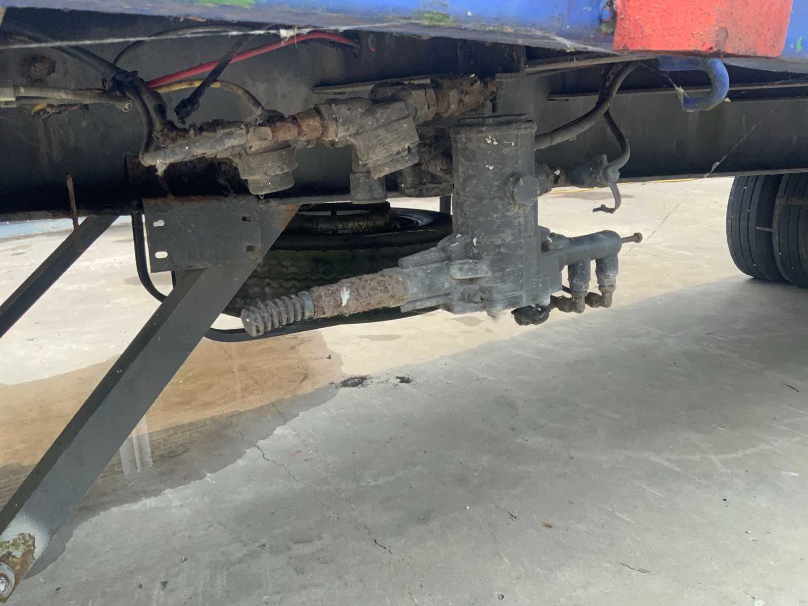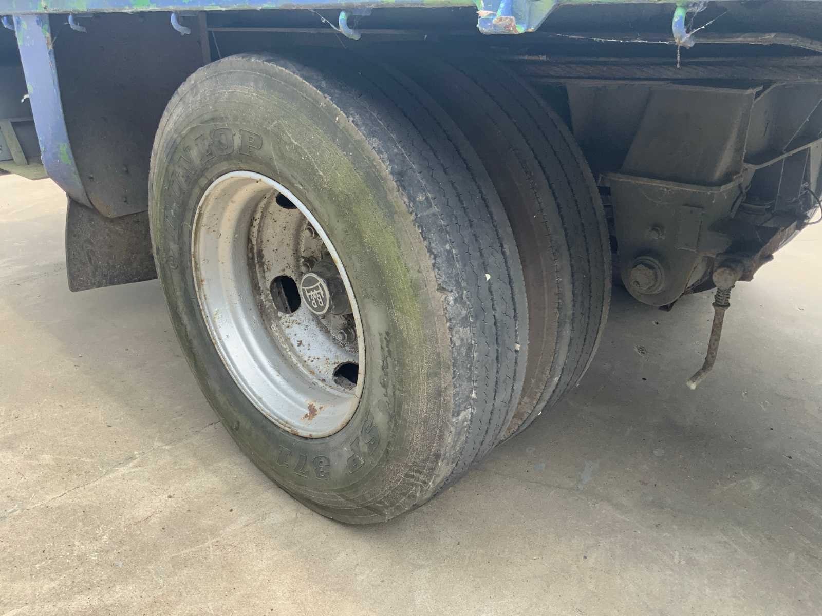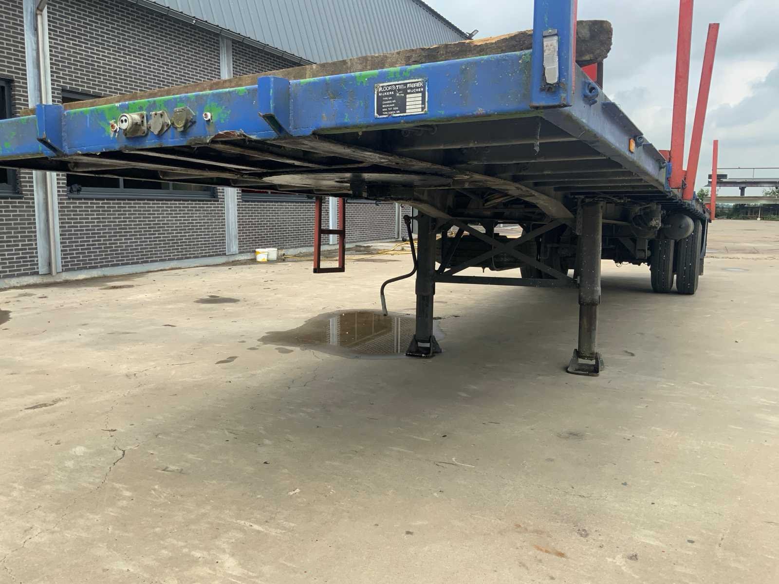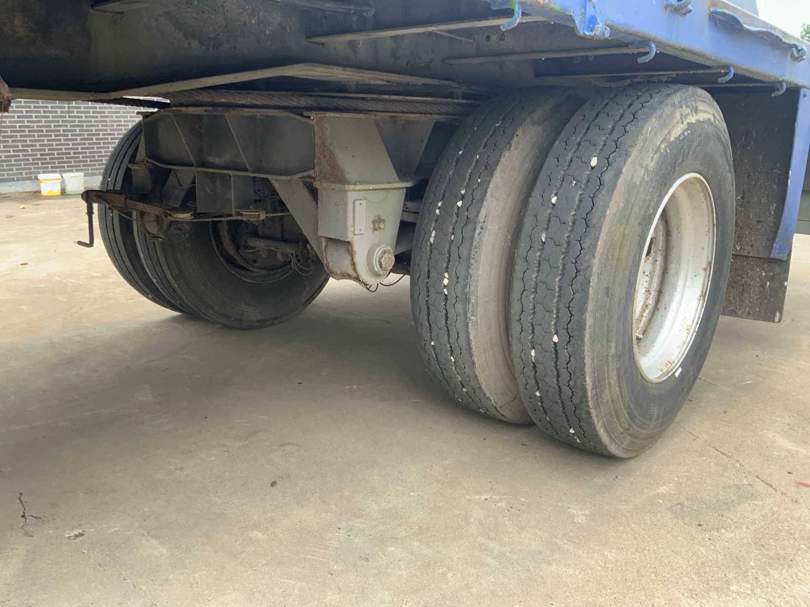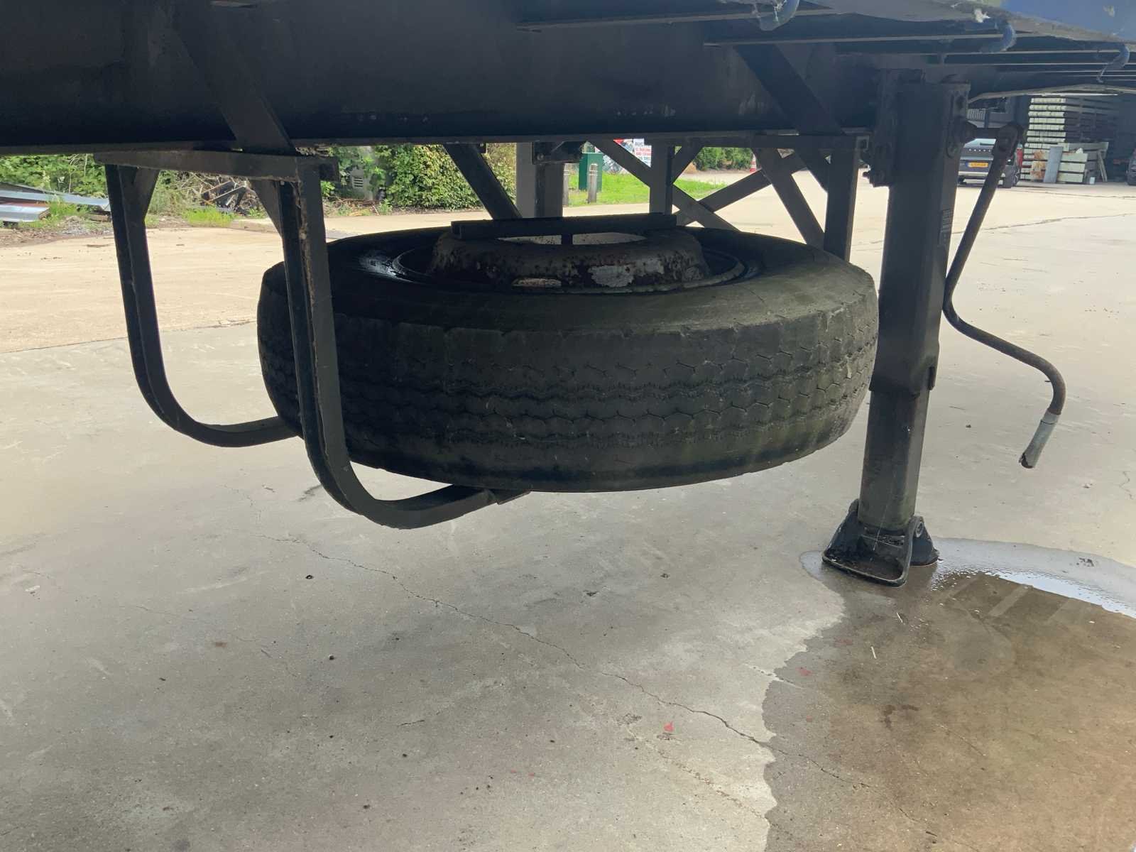 Houten vloer / stalen frame * handmatig bedienbare steunpoten * luchtremmen * 2 en 3 polige stekker aansluiting voor * meesturende ass met dubbele banden (4 banden) * voorzien van reservewiel * gewicht geschat op circa 5000 kilo Merk: Floor Type: FL0-10-102 Bouwjaar: 1988 Chassisnummer VIN: 8094 Laadvermogen: 22000kg Totale afmeting L: 10400mm Totale afmeting Breedte: 2600mm Totale afmeting Hoogte: 1250mm Leveringsvoorwaarden: Niet gefundeerd - onverpakt