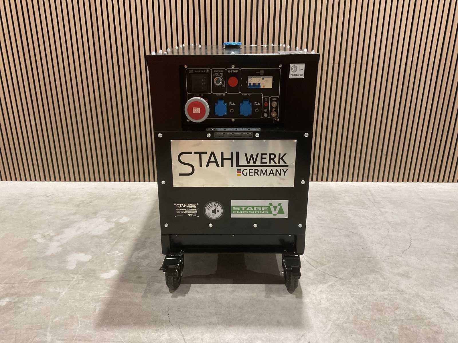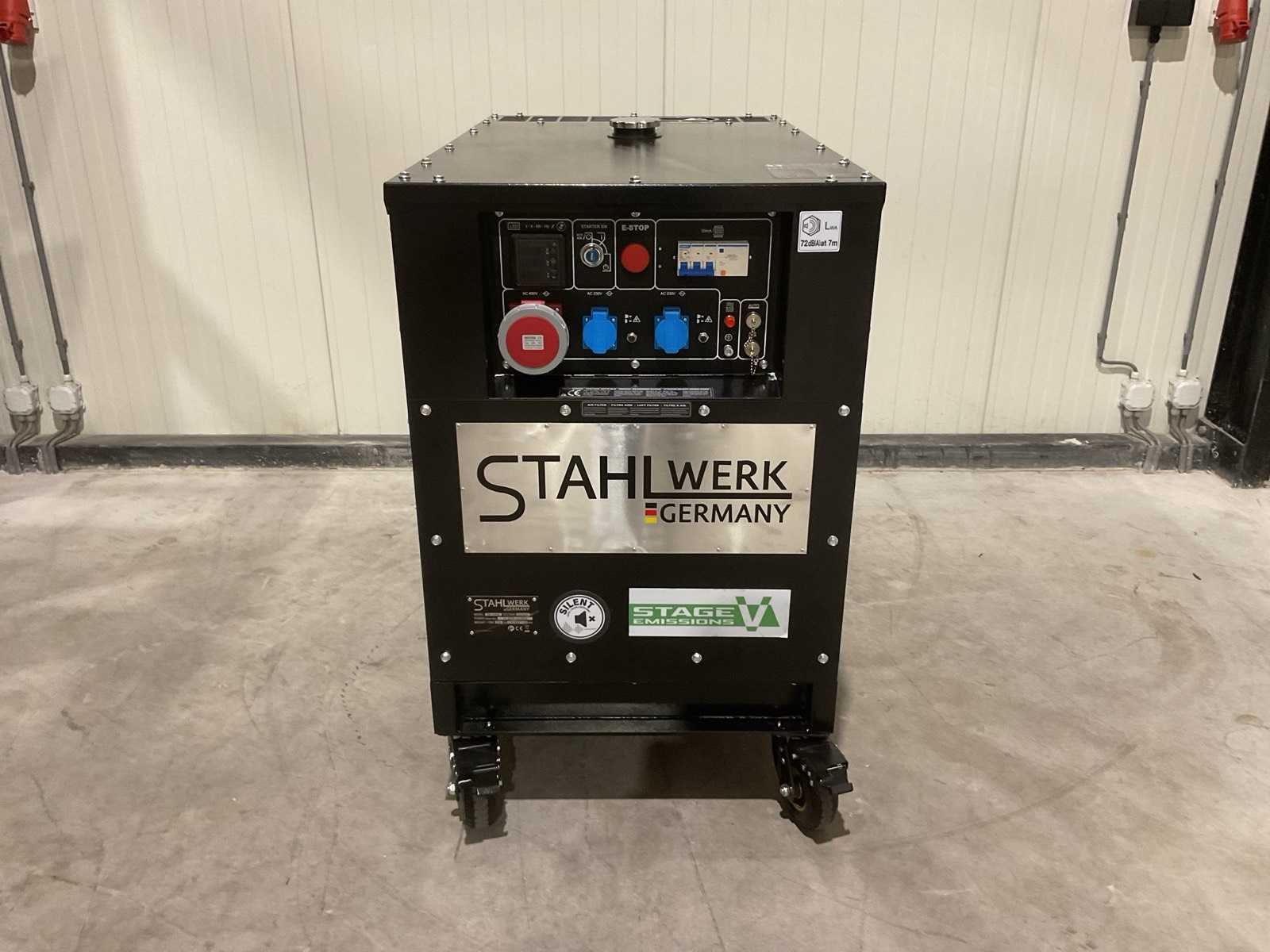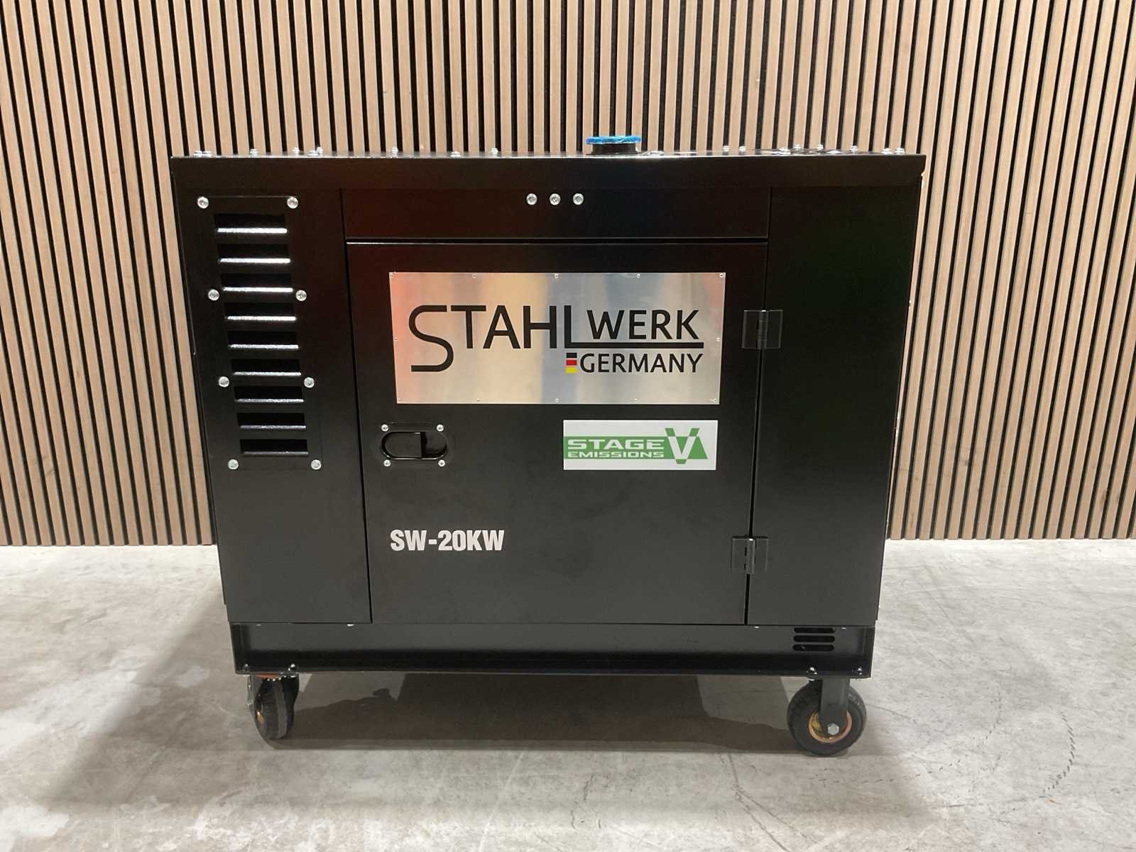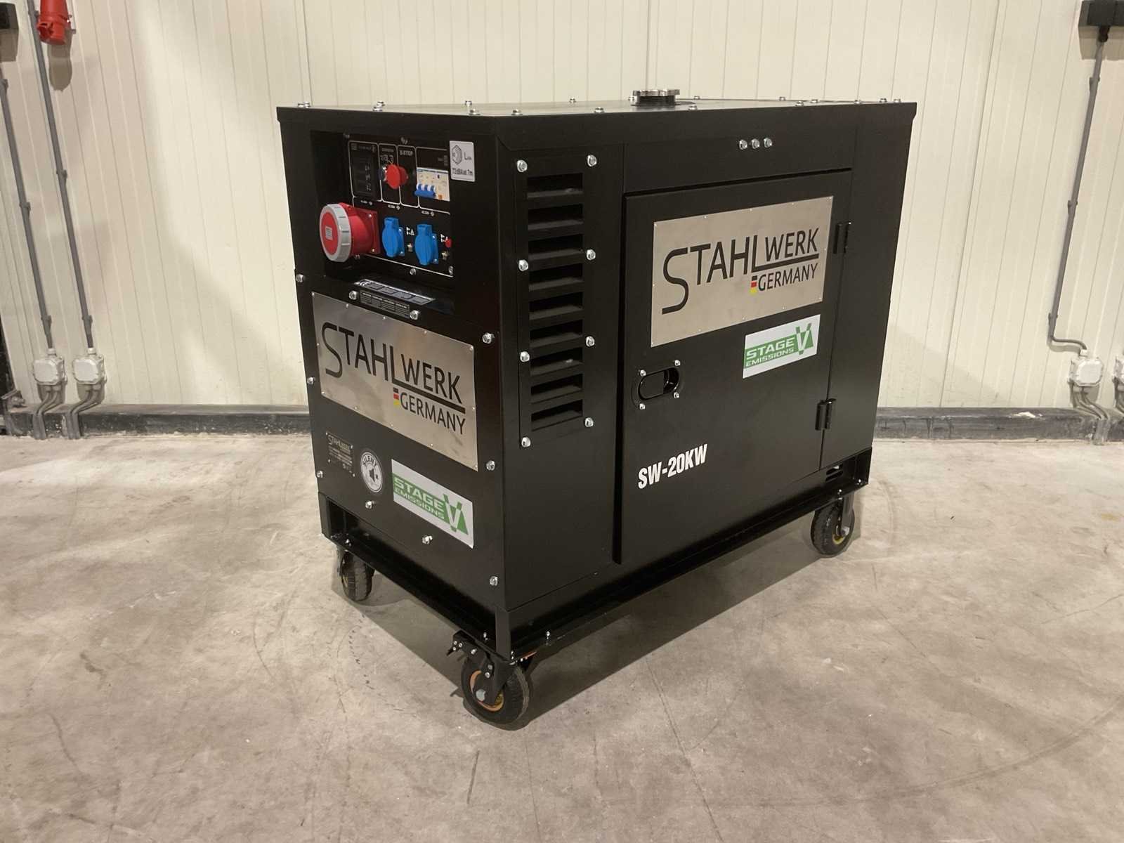 Voorzien van ATS; Afstands bediening; 1247cc Dieselmotor; 24,4HP; Output single fase 16,9 kva; Output drie fase 18,8 kva; Max output single fase 18 kva; Max output drie fase 20 kva; 46 liter; olie3,5 liter; Display LED; elektrische start; werkingsduur bij 75% belasting 9 uur; geluidsdruk LpA 72dB(A) @ 7m output 2 pins 230v 16a; 5 pins 400v 32a. ongebruikt in doos (Transport afmeting; 1160x70x1125mm; Gewicht 354kg) Merk: Stahlwerk Type: SW-20KW Bouwjaar: 2025 Capaciteit.: 20kVA Diesel: true Aantal cilinders: 2 Luchtgekoeld: true Mobiel: true Handboek aanwezig: true Machinegewicht: 334kg Totale afmeting L: 1140mm Totale afmeting Breedte: 1100mm Totale afmeting Hoogte: 680mm