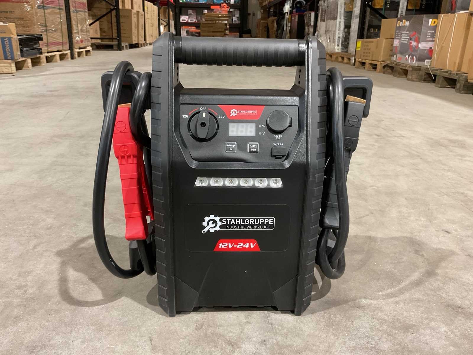 Voorzien van USB lader; 12V lader; led werklamp met diverse standen; 12V 2200A/4400A; 24V 800A/1600A; ongebruikt in doos Merk: Stahlgruppe Type: 4400A Bouwjaar: 2025 Laadstroom: 4400A Aansluiting: 230V Eigen gewicht: 22kg Totale afmeting L: 500mm Totale afmeting Breedte: 300mm Totale afmeting Hoogte: 500mm