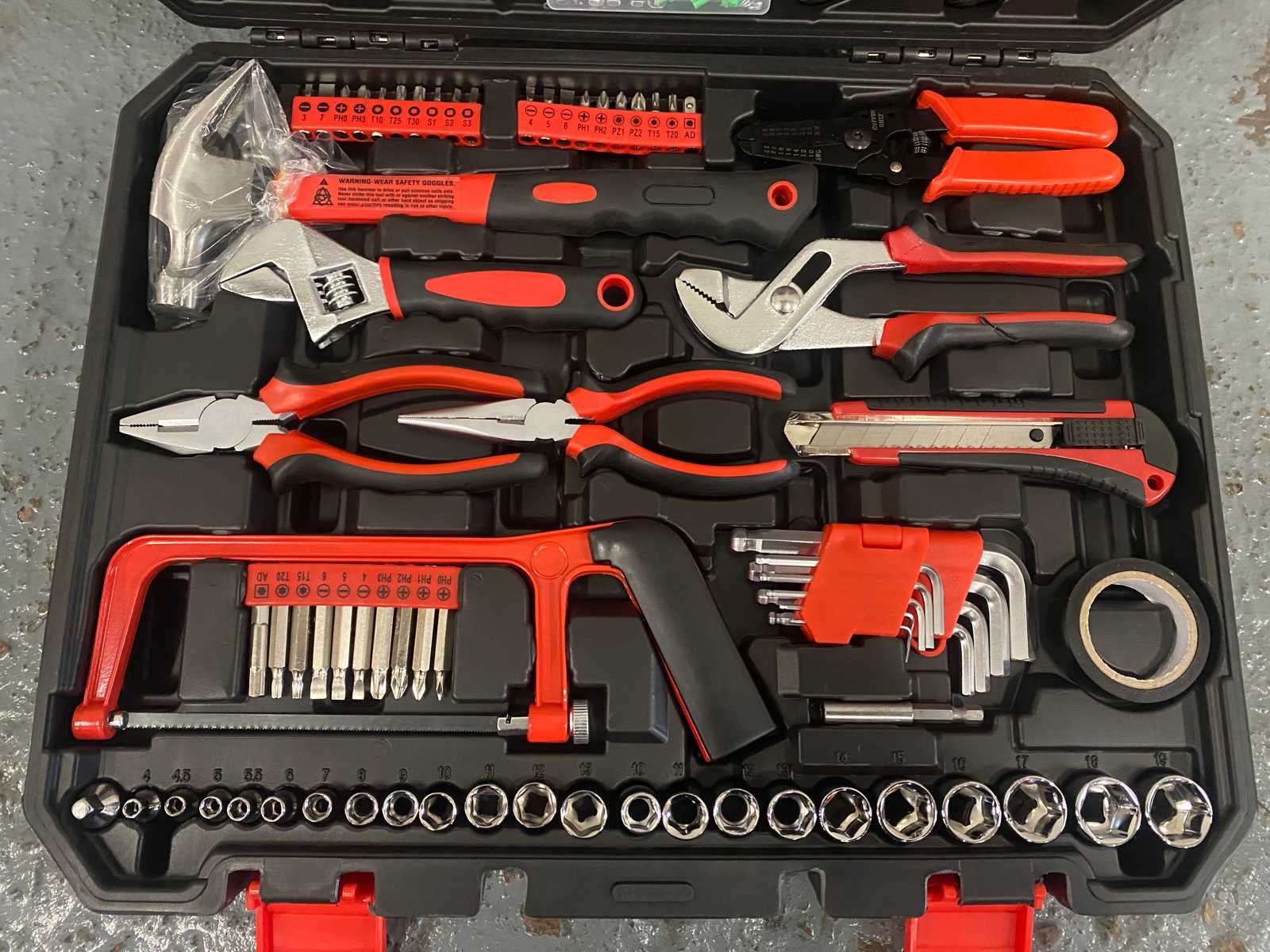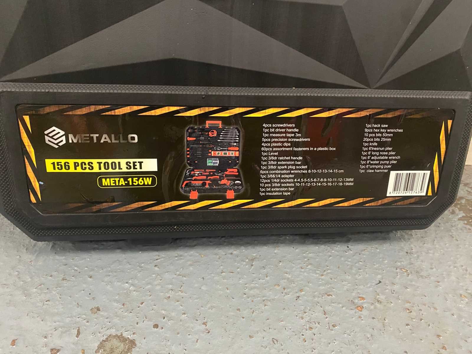 Voorzien van 156 delige gereedschapskoffer; divers professioneel gereedschap; chroom-vanadium; ongebruikt in verpakking Merk: Metallo Type: META-156W Kunststof: true Met inhoud: true