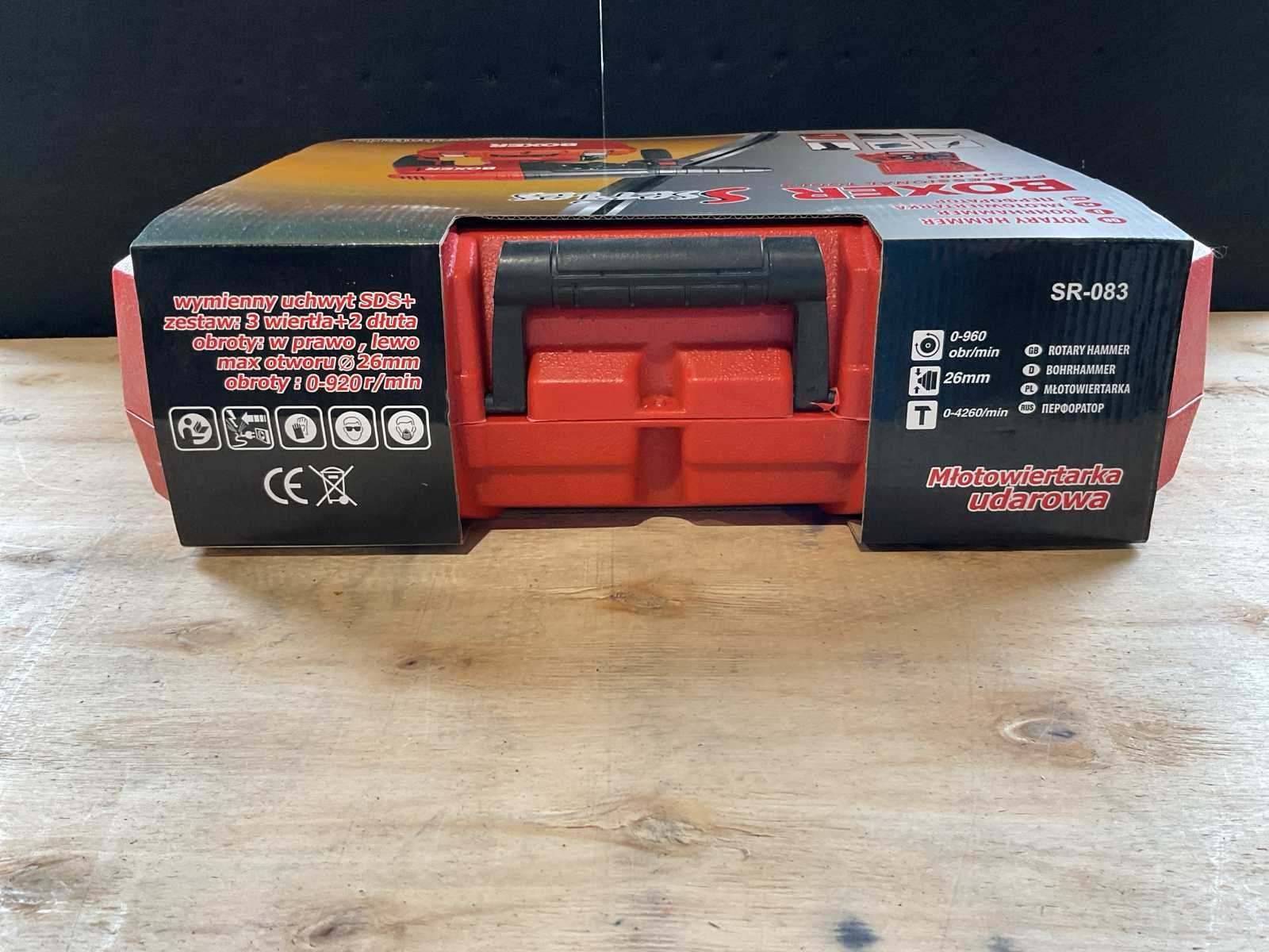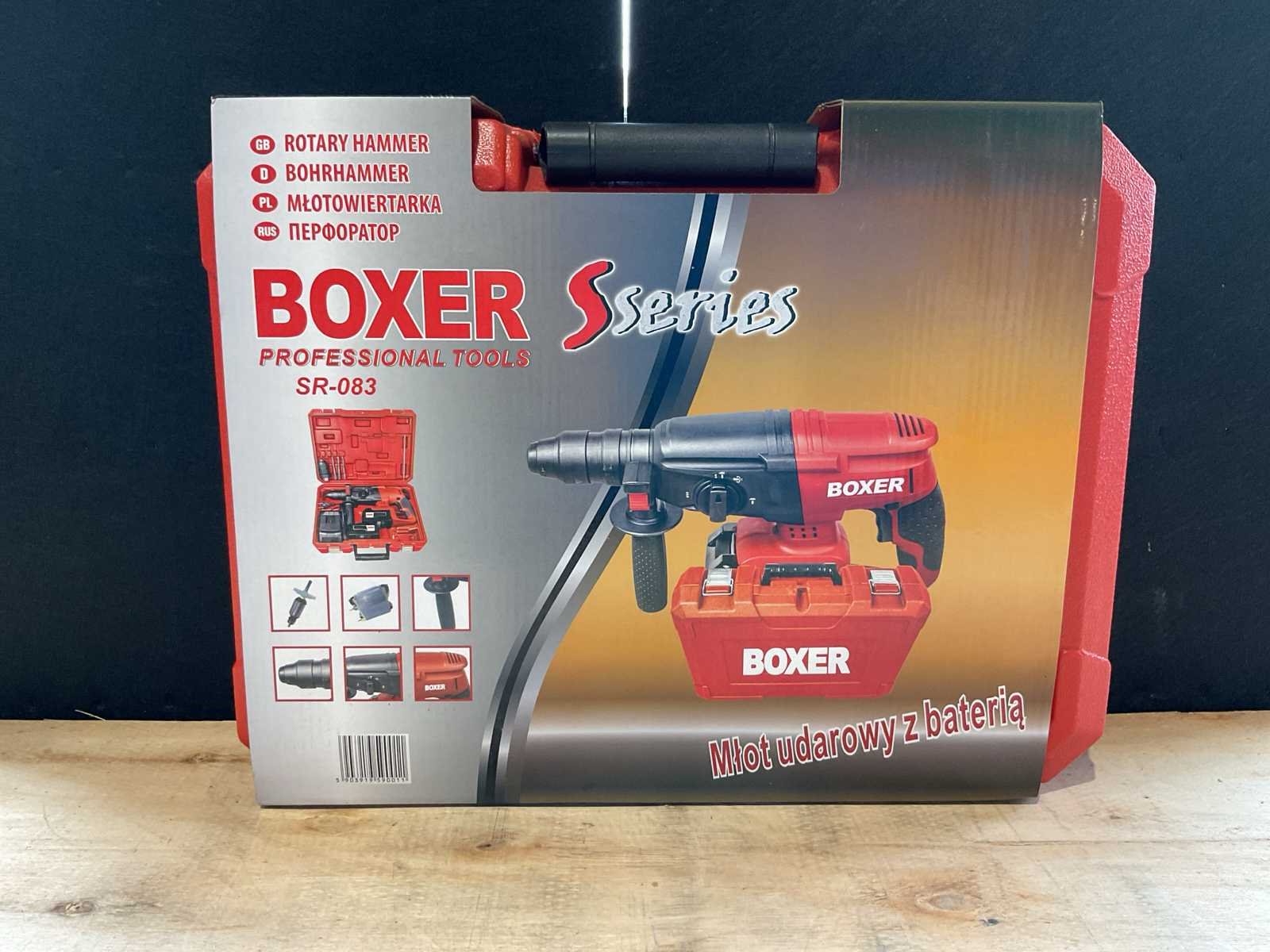 Eigengewicht 6,5kg verpakking afmeting 440x120x335mm Merk: Boxer Type: SR-083 RD Bouwjaar: 2025 Klopboormachine: true Boorhamer: true SDS fitting: true Met koffer: true