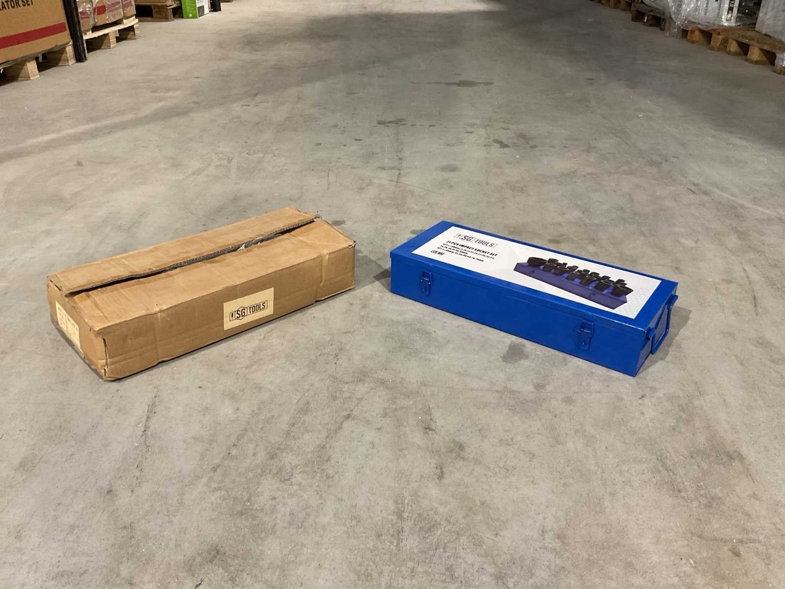 Voorzien van Krachtdoppenset; 3/4" maten: 17, 19, 21, 22, 24, 27, 30, 32, 33, 34, 36, 38, 41, 46, 50 mm; 1" doppen: 52, 55, 60, 65, 70, 75 mm; Ongebruikt in doos (gewicht inclusief verpakking 22,90 kg) Merk: SG Tools Delig: 21 Krachtdop uitvoering: true Type: 21 PCS impact Socket Set1 Bouwjaar: 2025