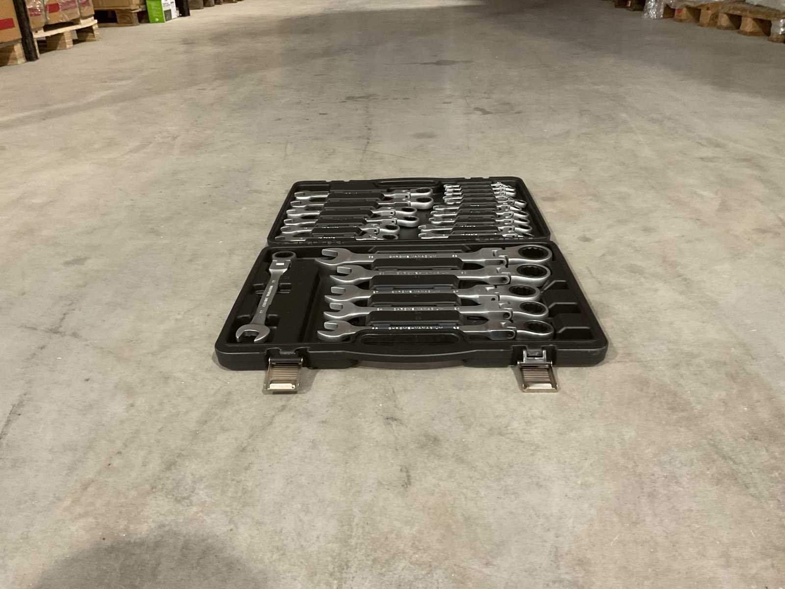 Voorzien van Steek/Ratelringsleutel maten: 6, 7, 8, 9, 10, 11, 12, 13, 14, 15, 16, 17, 18, 19, 20, 21, 22, 23, 24, 27, 30, 32mm; Kunstof koffer; Ongebruikt (Transport Afmeting 500 x 70 x 360mm, Gewicht: 8,84 kg) Merk: F Tools Professional Set: true Delig: 22 Bouwjaar: 2025 Type: 22PCS Flexible Gear Wrench