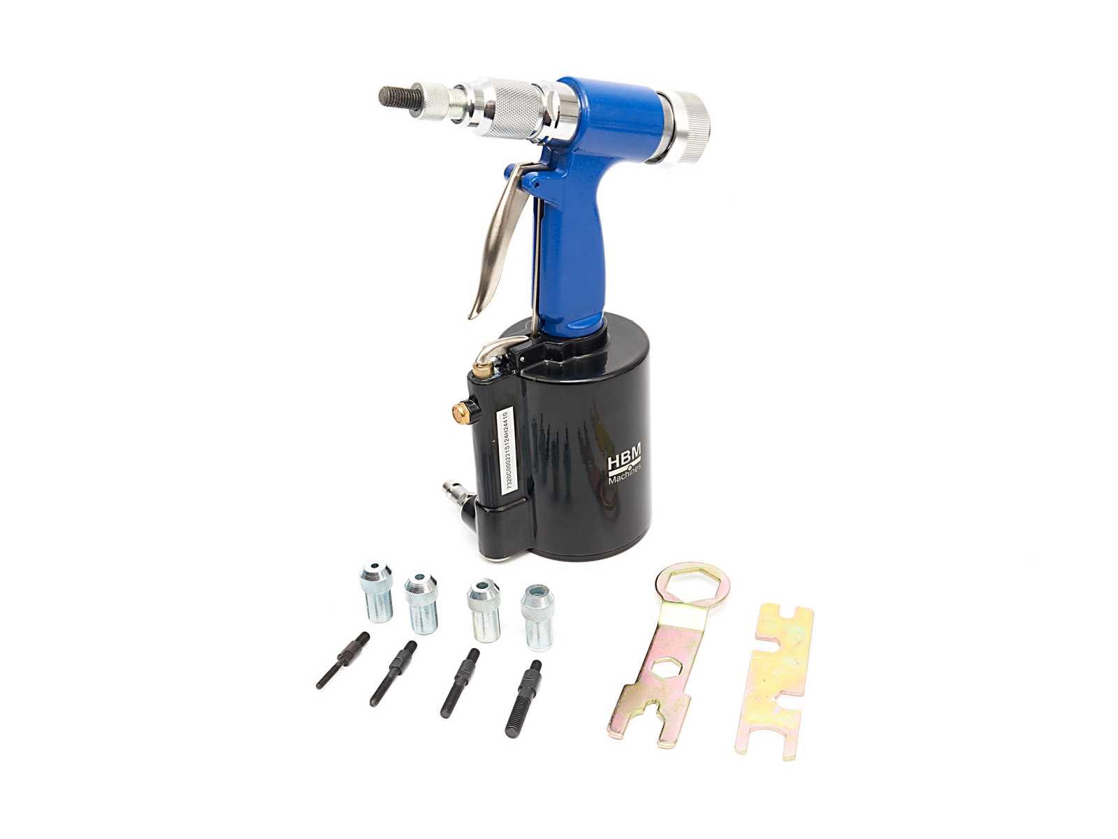 Professionele Pneumatische Blindklinkmoertang M4 – M10 Deze pneumatische blindklinkmoertang is geschikt voor blindklinkmoeren van M4, M5, M6, M8 en M10. Met een slaglengte van 10 mm is het een echte allrounder voor in de werkplaats. Compleet geleverd met 5 neusstukken en plaatsingssleutels. Geschikt voor gebruik in auto's, aanhangwagens , meubelreparatie of zelfs bootbouw. Ideaal gereedschap wanneer de achterzijde van het materiaal niet bereikbaar is. Lichtgewicht, goed uitgelanceerd en handzaam in gebruik. Bezorgtermijn 7 dagen Merk: HBM Type: Professionele Pneumatische Blindklinkmoertang