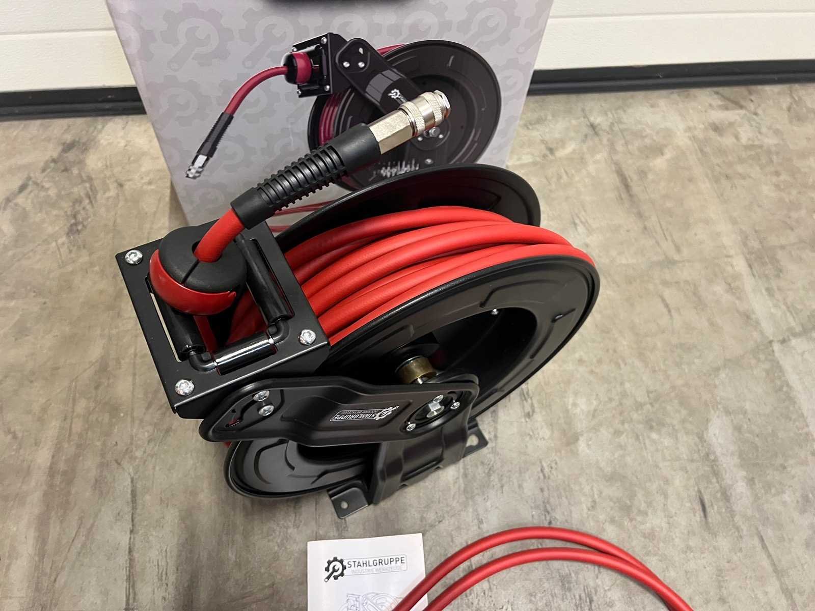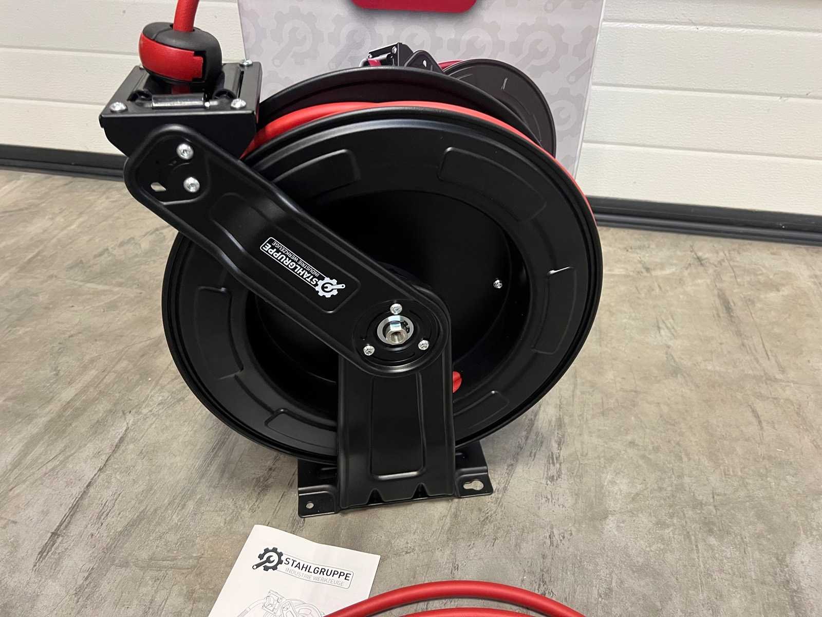 2 M Inlaatslang 20 M uitlaatslang 9,5 MM slangdiameter 20 BAR Max druk Verstelbare stop bal Duurzame materialen Automatisch oprolsysteem Montagemateriaal inbegrepen Bezorgtermijn 14 dagen Merk: Stahlgruppe Type: SGST20M Stalen Luchthaspel