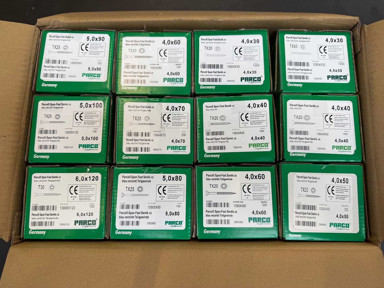 PARCO® Spaanplaatschroeven 4,0 x 30mm Span-Fast blauw verzinkt - TX20 PARCO® Spaanplaatschroeven 4,0 x 40mm Span-Fast blauw verzinkt - TX20 PARCO® Spaanplaatschroeven 4,0 x 50mm Span-Fast blauw verzinkt deeldraad - TX20 PARCO® Spaanplaatschroeven 4,0 x 60 Span-Fast blauw verzinkt deeldraad - TX20 PARCO® Spaanplaatschroeven 4,0 x 70mm Span-Fast blauw verzinkt deeldraad - TX20 PARCO® Spaanplaatschroeven 5,0 x 80 Span-Fast blauw verzinkt deeldraad - TX25 PARCO® Spaanplaatschroeven 5,0 x 90 Span-Fast blauw verzinkt deeldraad - TX25 PARCO® Spaanplaatschroeven 5,0 x 100 Span-Fast blauw verzinkt deeldraad - TX25 PARCO® Spaanplaatschroeven 6,0 x 120 Span-Fast blauw verzinkt deeldraad - TX30 Bezorgtermijn 7 dagen Merk: PARCO® Type: Diverse soorten houtschroeven