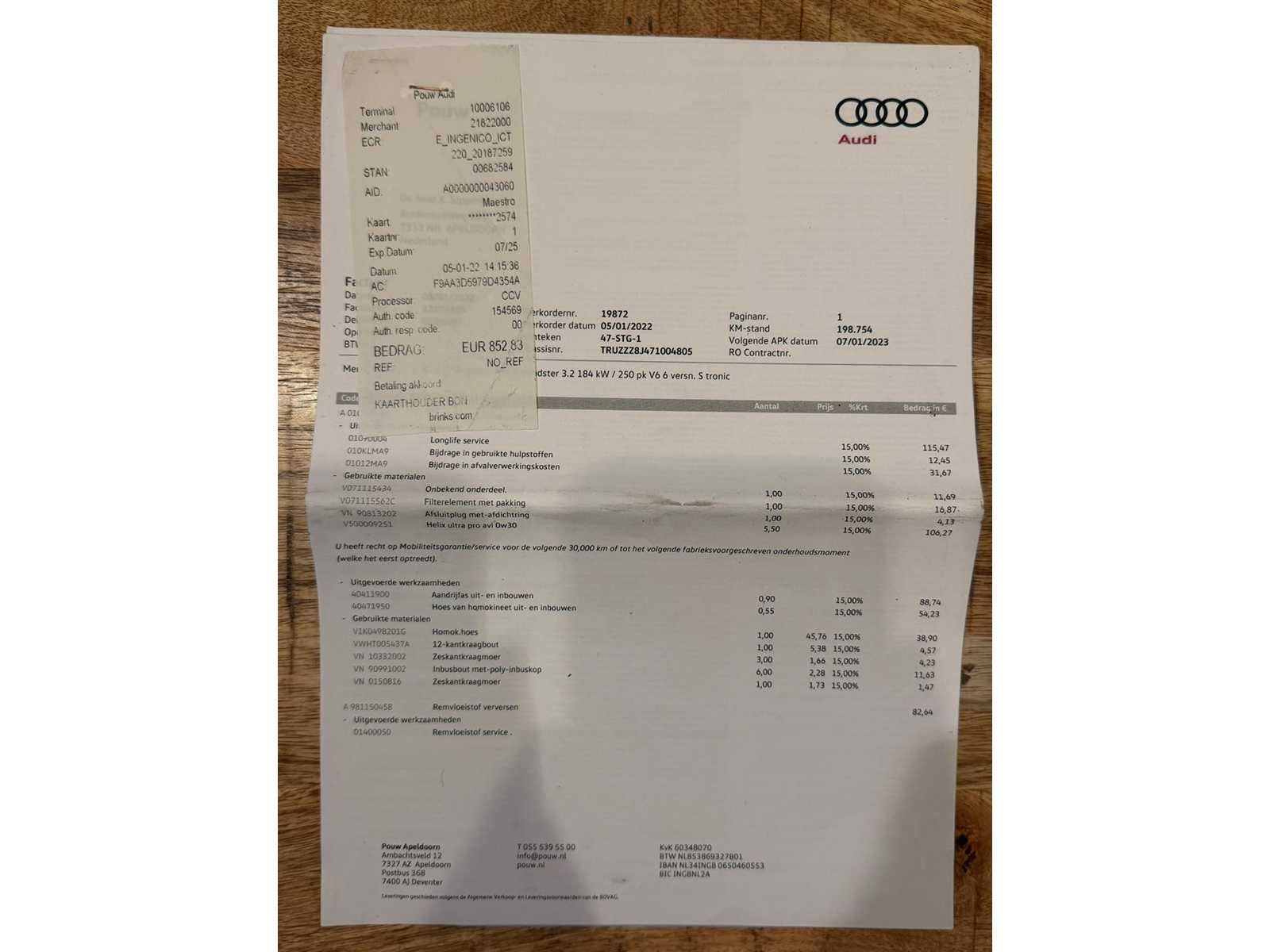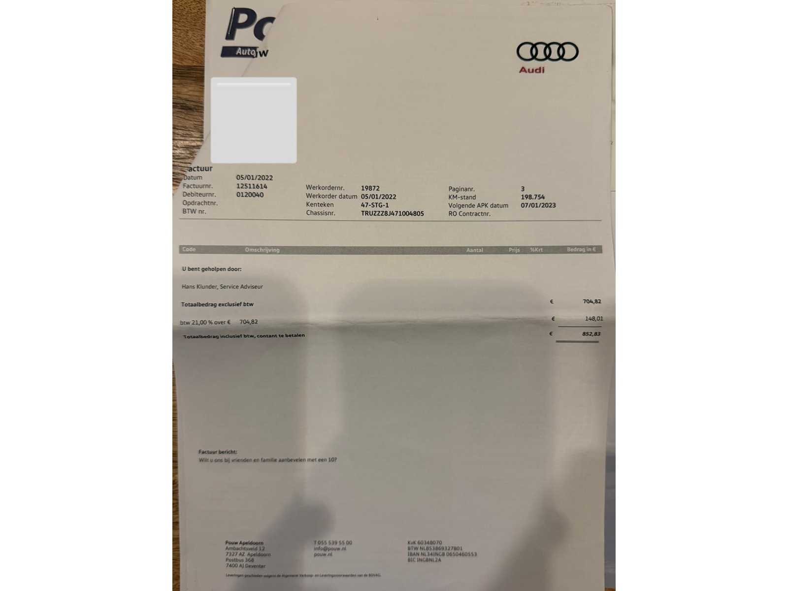 Omdat dit kavel niet in Spijkenisse staat moet u ons een mail, info@collectcars.nl sturen dan krijgt u van ons het adres. Vermeld wel het veilingnummer en kavelnummer zodat het voor ons makkelijker zoeken is. Alvast bedankt Kenteken: 47-STG-1 Merk: Audi Model: TT Type: 3.2 V6 Quattro Afgelezen kilometerstand: 239612km Cilinderinhoud: 3189cc Vermogen (kW): 184kW Brandstof: Benzine Chassisnummer: TRUZZZ8J471004805 Datum eerste toelating: 2006-11-17 Datum eerste toelating (NL): 2011-11-21 APK vervaldatum: 2026-08-27 Aantal zitplaatsen: 4 Kleur: grijs Stuurwiel: links Emissieklasse: 4 Aantal deuren: 2 Ledig gewicht: 1405kg Bruto BPM (NL): 14582€ Aantal cilinders: 6 Carrosserie: coupe Onderhoudshistorie: Ja gedeeltelijk Carfax Link: https://was.carfax.eu/v0/api/ccdid/5100016408/svc/201/vinreg/47STG1/checksum/eyJhbGciOiJIUzI1NiIsInR5cCI6IkpXVCJ9.eyJleHAiOjE3NzEwODg3NDh9.CGDqZOAde8x4nzhneGUXAE3DuBGJHd0PlFjLclXl6d4 startinformatie : Start en rijdt