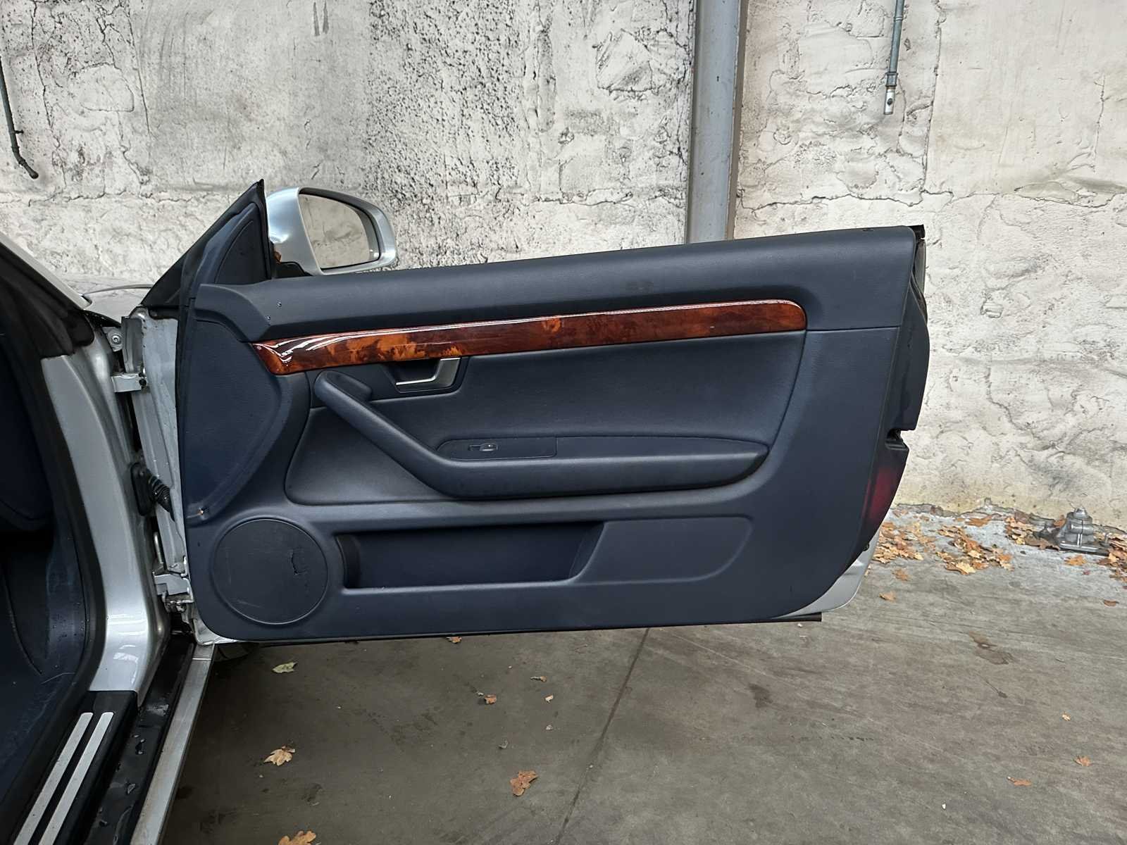 Kenteken: 38-LR-TT Merk: Audi Model: A4 Cabriolet Type: 3.0 V6 Exclusive Afgelezen kilometerstand: 323479km Cilinderinhoud: 2976cc Vermogen (kW): 162kW Brandstof: Benzine Chassisnummer: WAUZZZ8H93K028560 NAP status: Logisch Datum eerste toelating: 2003-04-18 Datum eerste toelating (NL): 2003-04-18 APK vervaldatum: 2026-05-25 Vermogen (pk): 220hp Aandrijving: voor Aantal zitplaatsen: 4 Kleur: grijs Transmissie: Automaat Stuurwiel: Links Emissieklasse: 4 Aantal deuren: 2 Ledig gewicht: 1595kg Bruto BPM (NL): 17997€ Aantal cilinders: 6 Carrosserie: cabriolet Nationaliteit documenten: Nederlandse kentekendocumenten