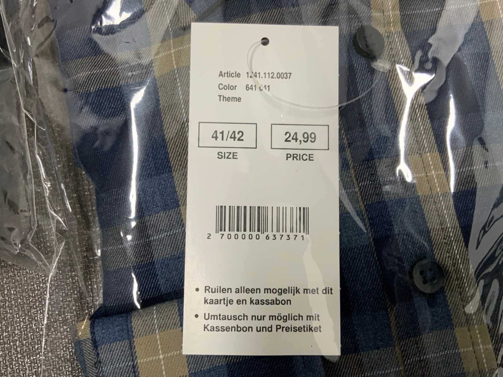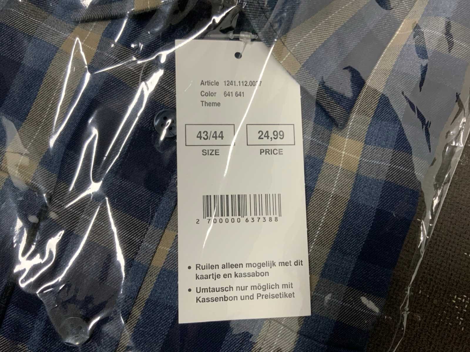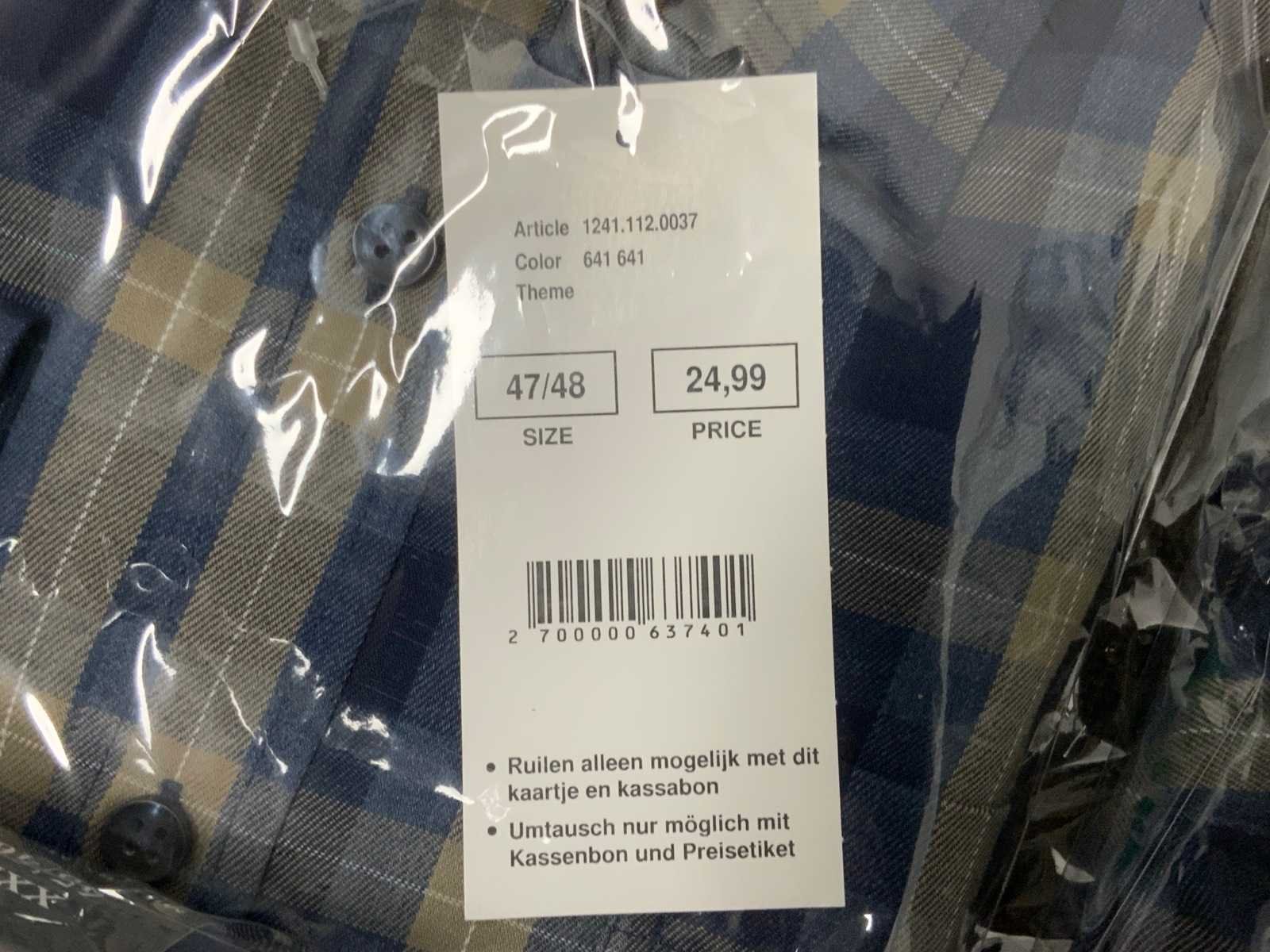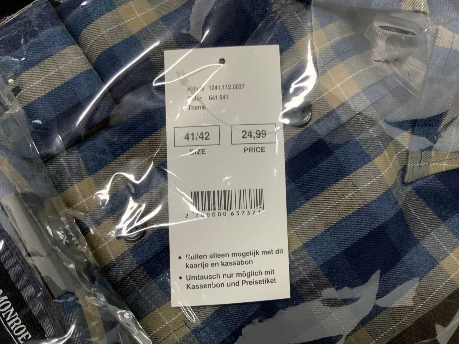 Geruite overhemden van Miller & Monroe, diverse maten; Werkbroek van Staples, maat 48; Polo's van Office Centre, maat XL (2x) en XXL (1x); diverse kleding