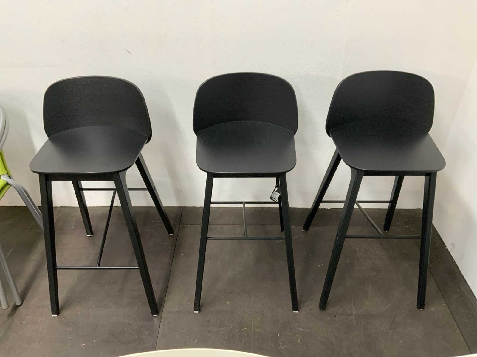 3x Comma Black Ash barkruk zwart, nieuwprijs €281,- per stuk; zithoogte: 70cm; 4x eetkamerstoel wit, zithoogte: 45cm; 2x tuinstoel groen, zithoogte: 45cm