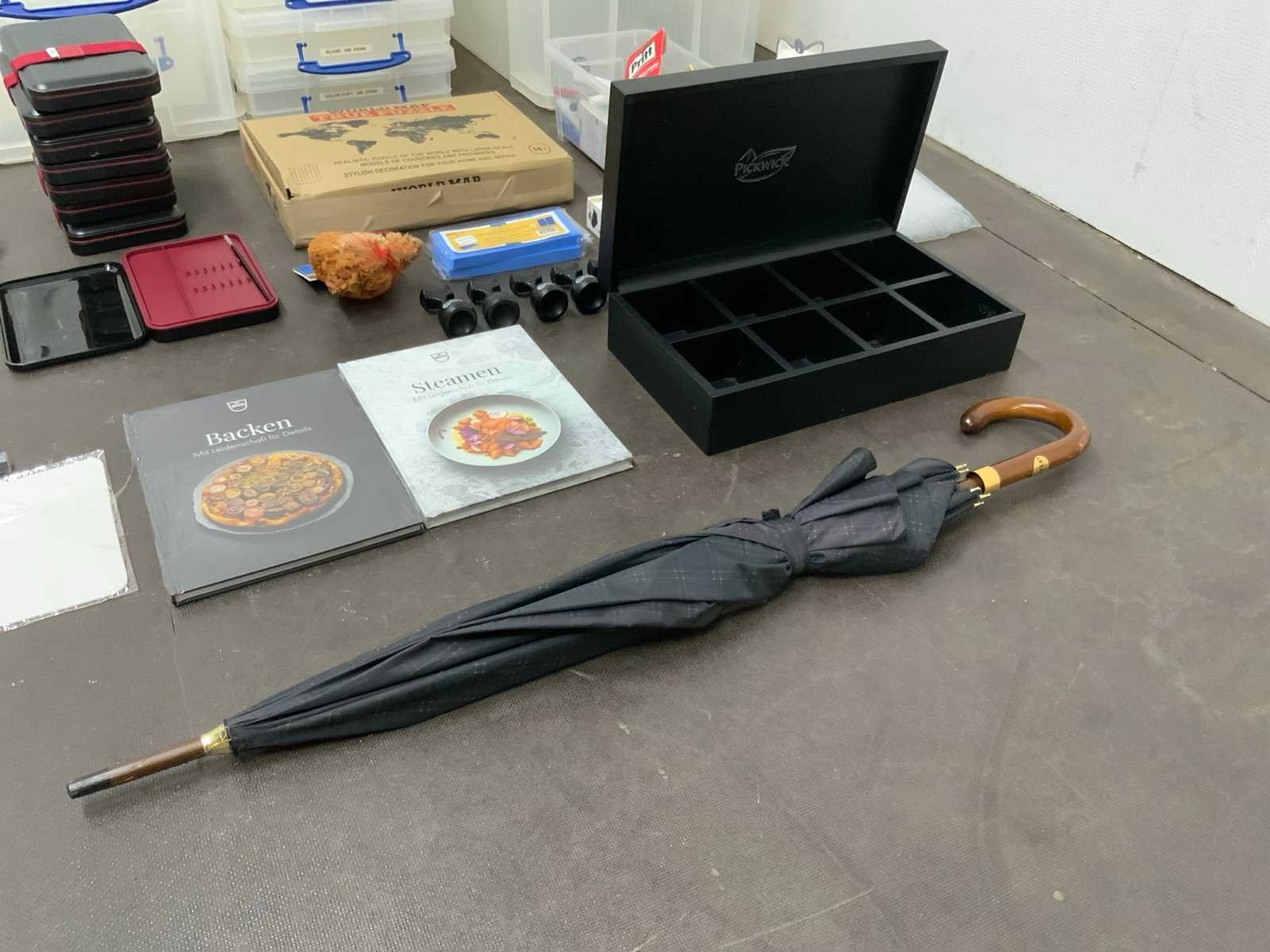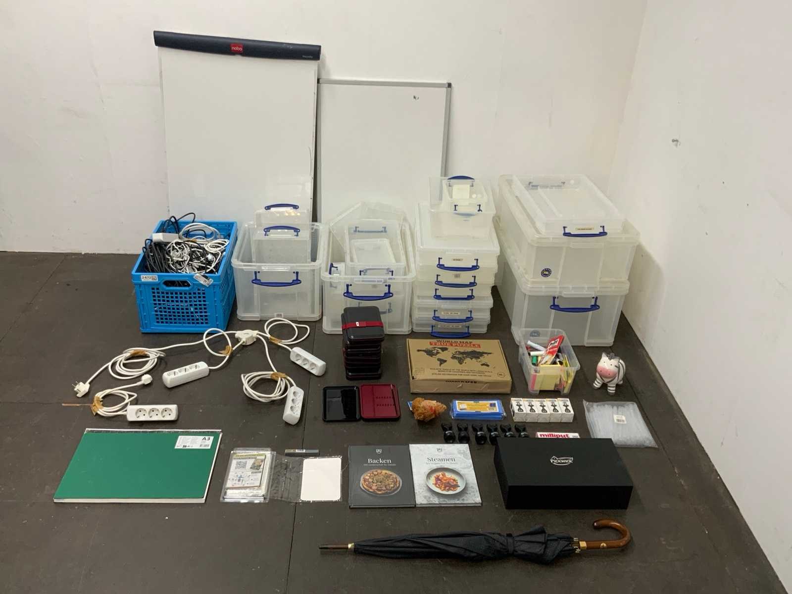 1e: Opbergboxen 2e: Krat met elektra 3e: Verf- en knutsel spullen 4e: Paraplu 5e: Whiteboards 6e: Pipettes 7e: Spaarpot 8e: Puzzel 9e: Kantoor artikelen 10e: Kookboeken