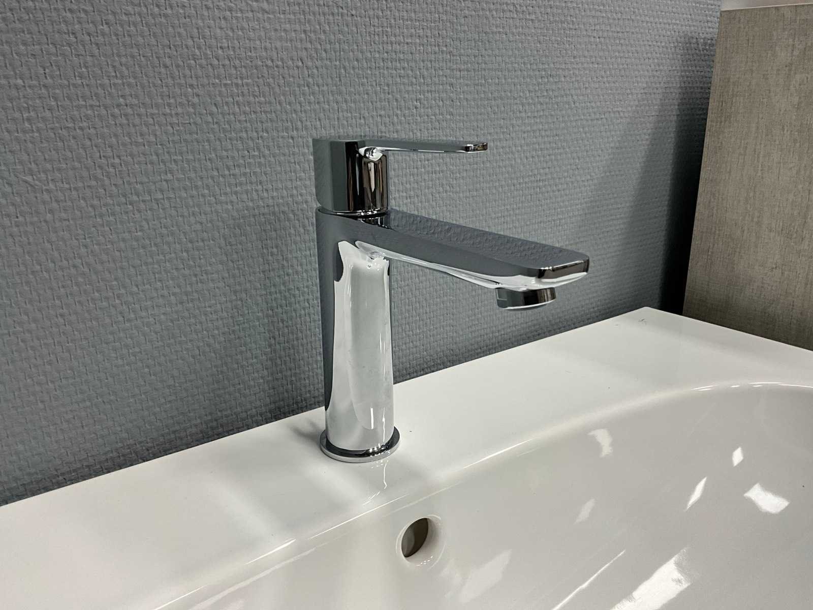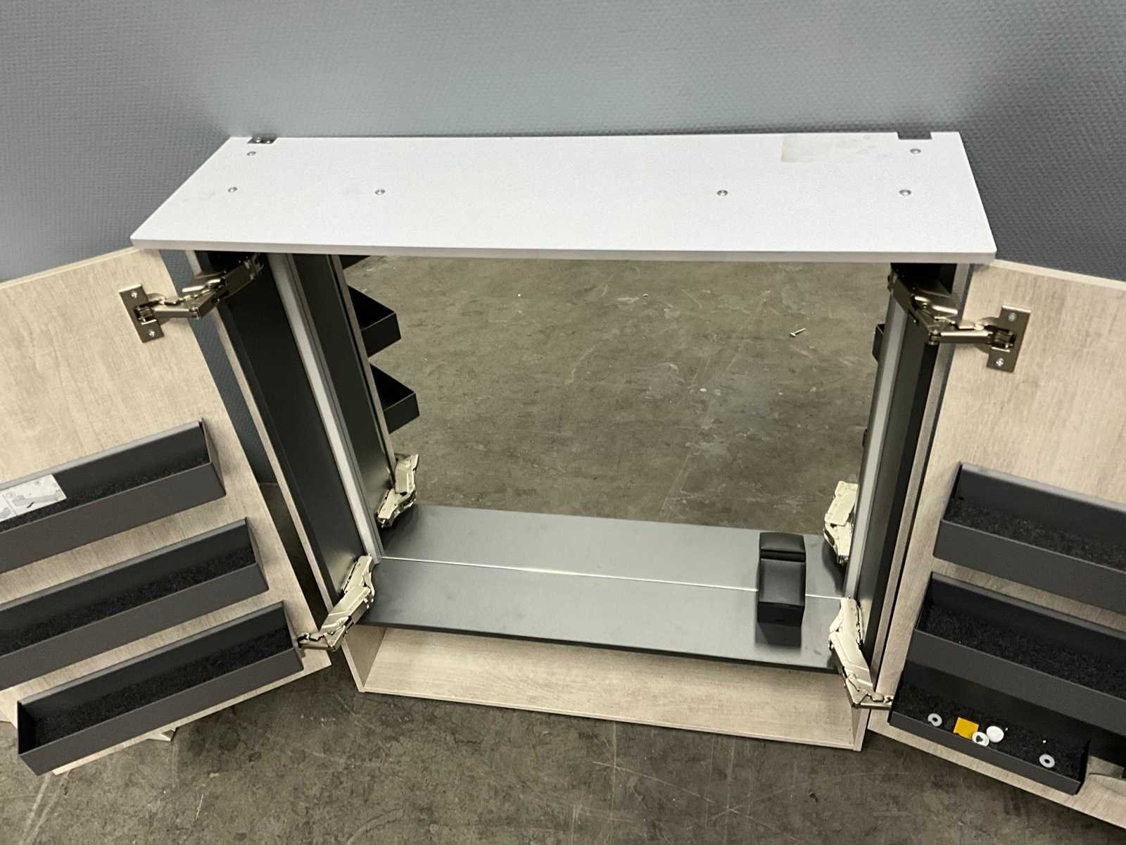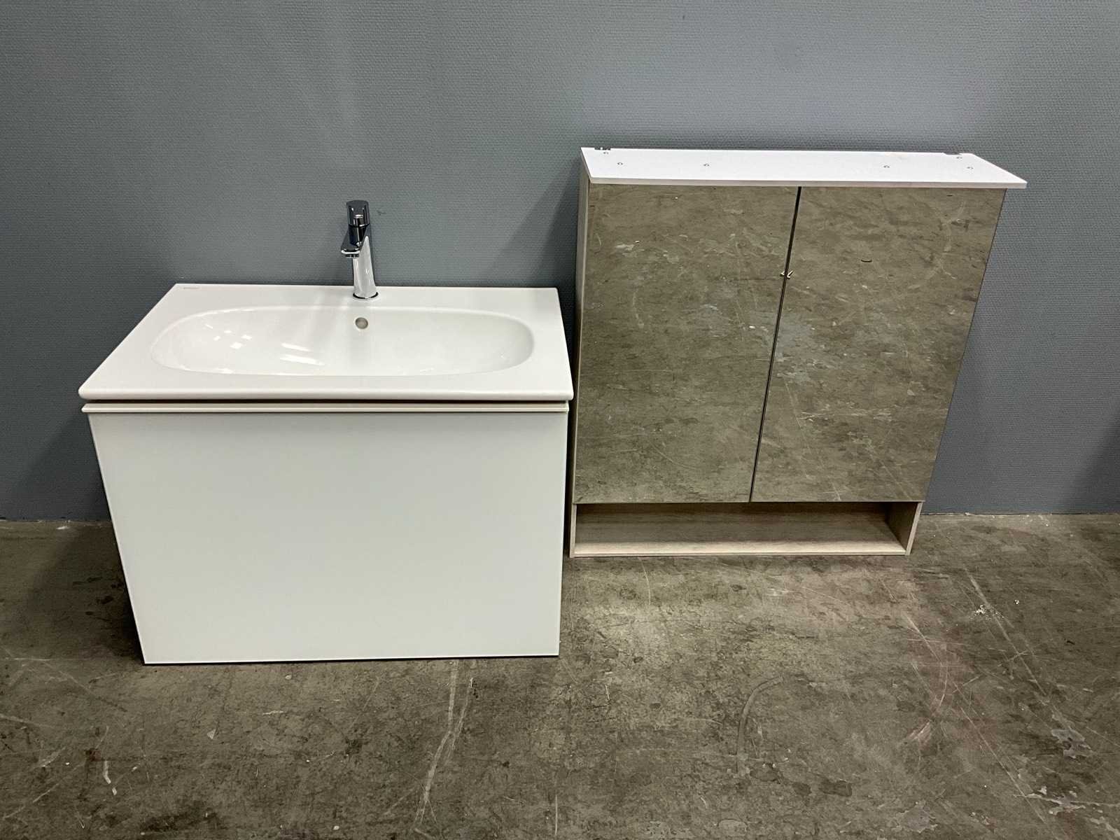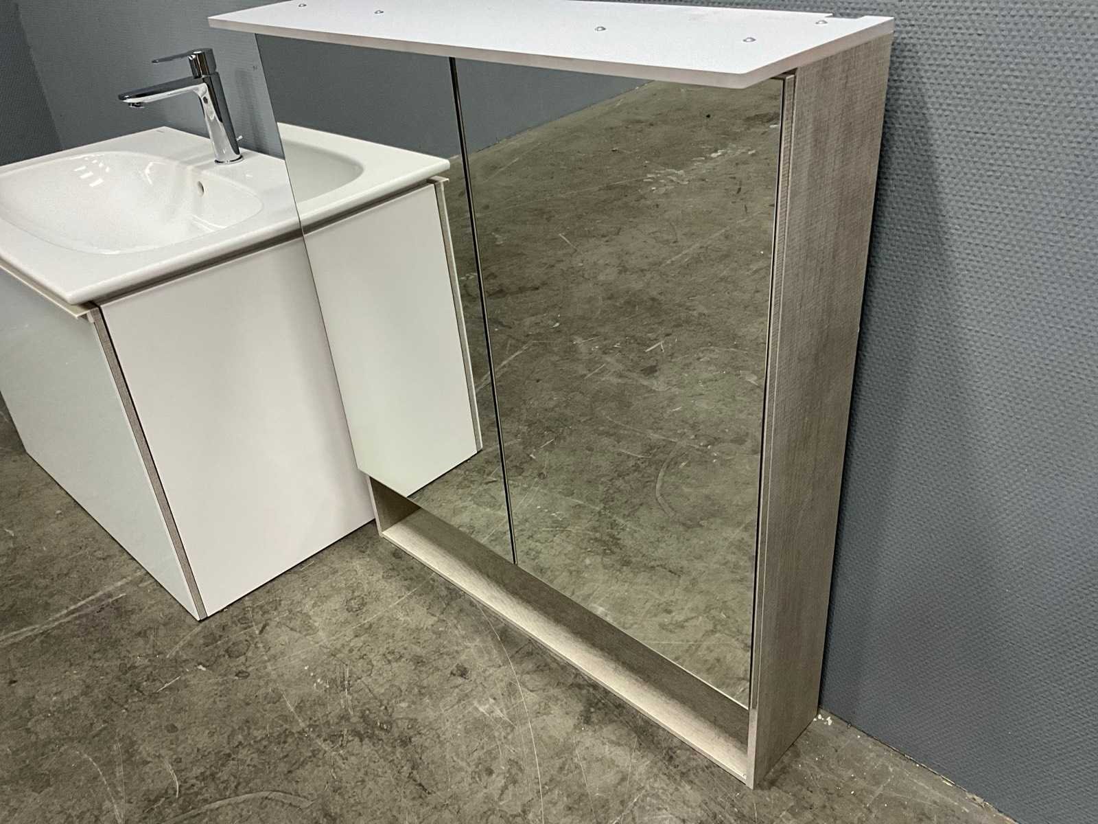 Merk: Geberit Model: Acanto Hoogte: 56cm Lengte: 75cm Breedte: 48cm Kraan: Grohe Wastafel: Geberit Spiegelkast: true Spiegel met verlichting: 75x83 cm. Lades: 2 Softclose: true