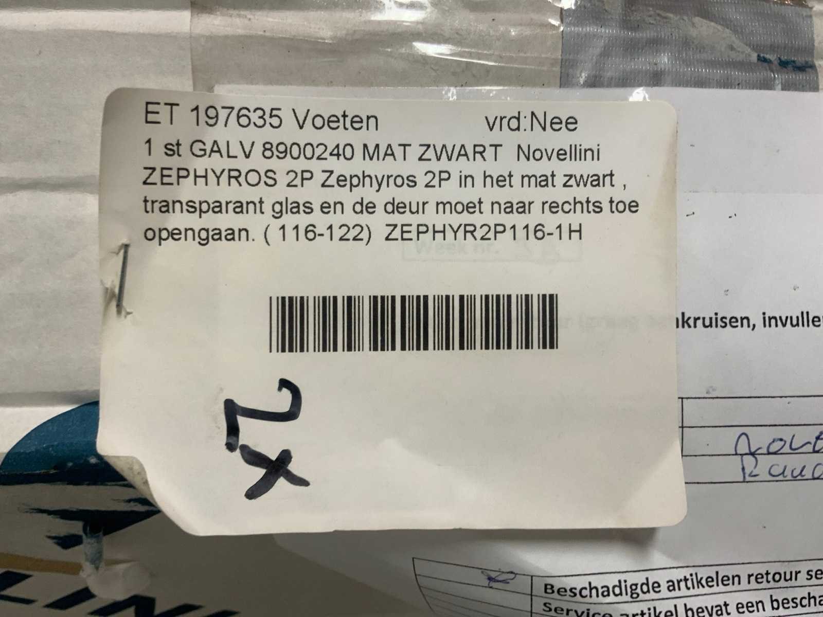 117-119x200cm; Deur moet naar rechts toe open Merk: Novellini Model: Zephyros 2P Kleur: Mat zwart Hoogte: 200cm