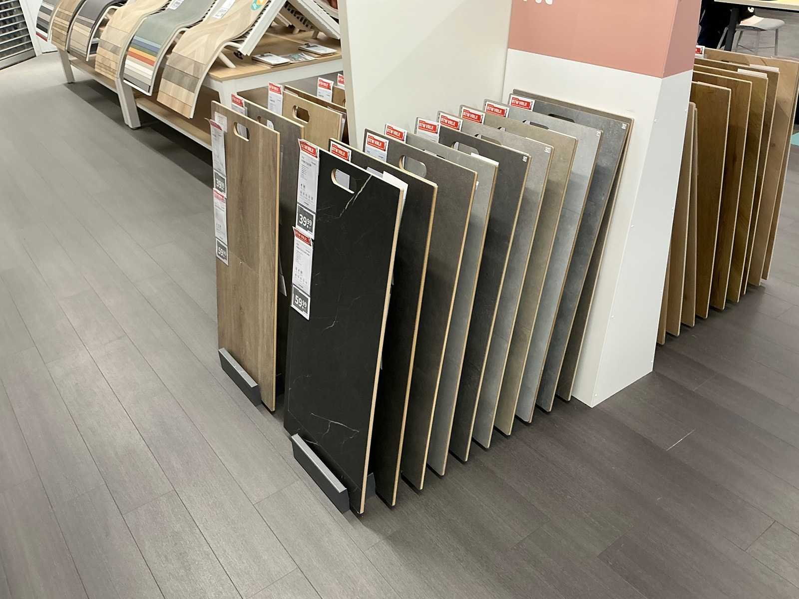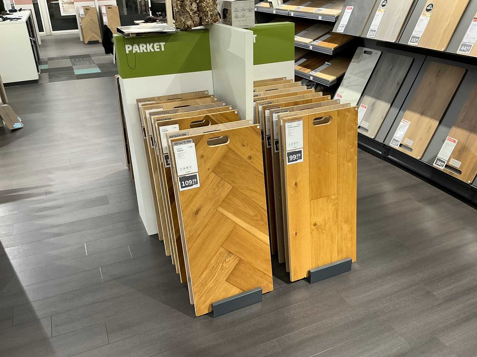 Partij vloer samples met houders pvc/laminaat/parket
