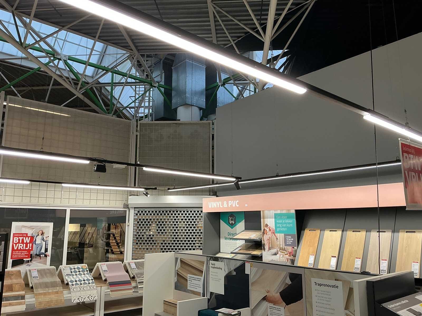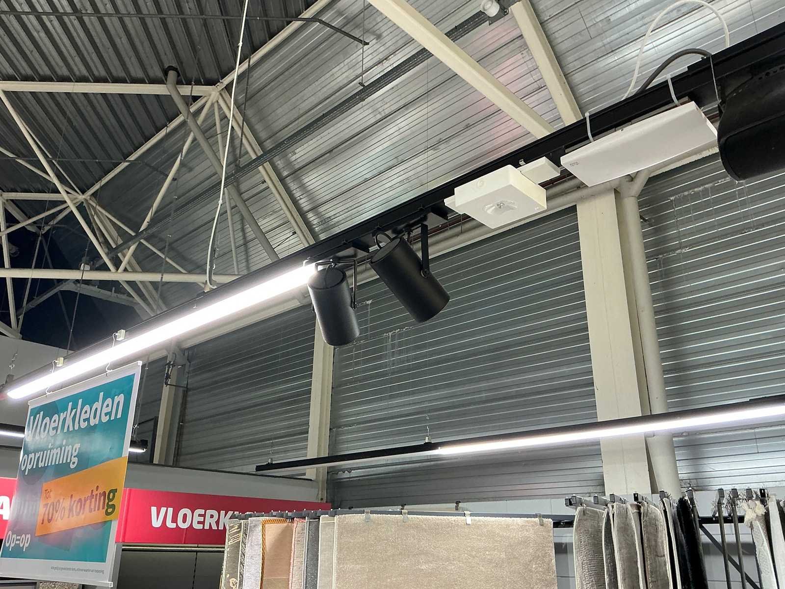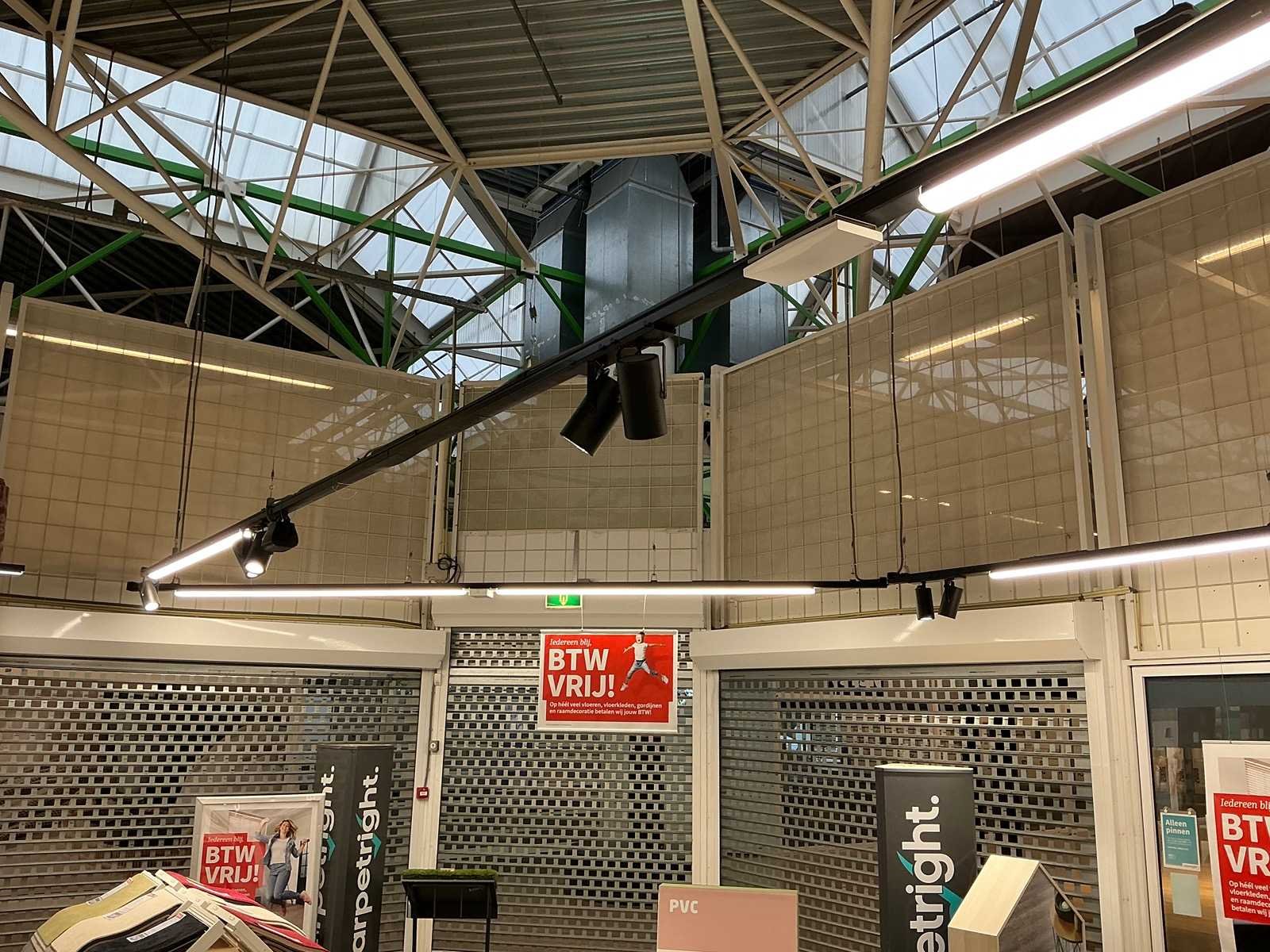 Winkelverlichting 100 meter rails met led balken en 32 spots
