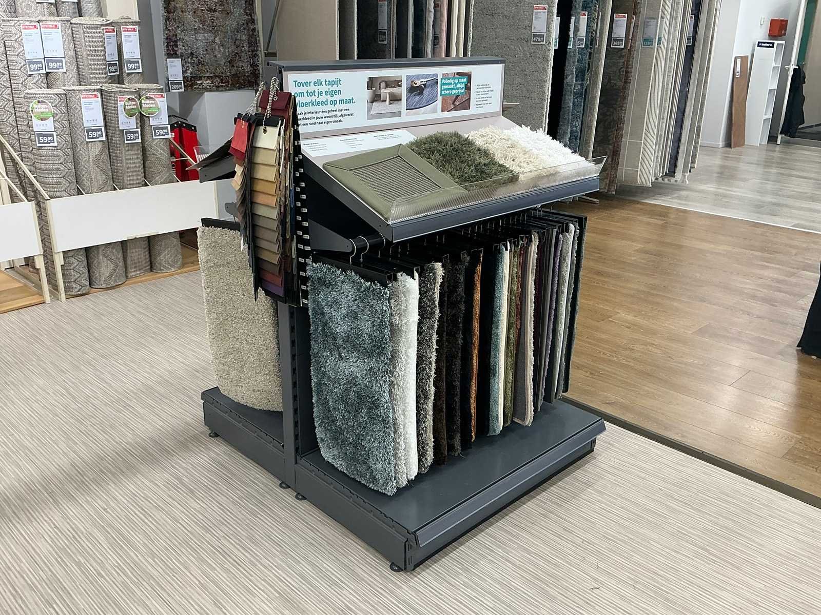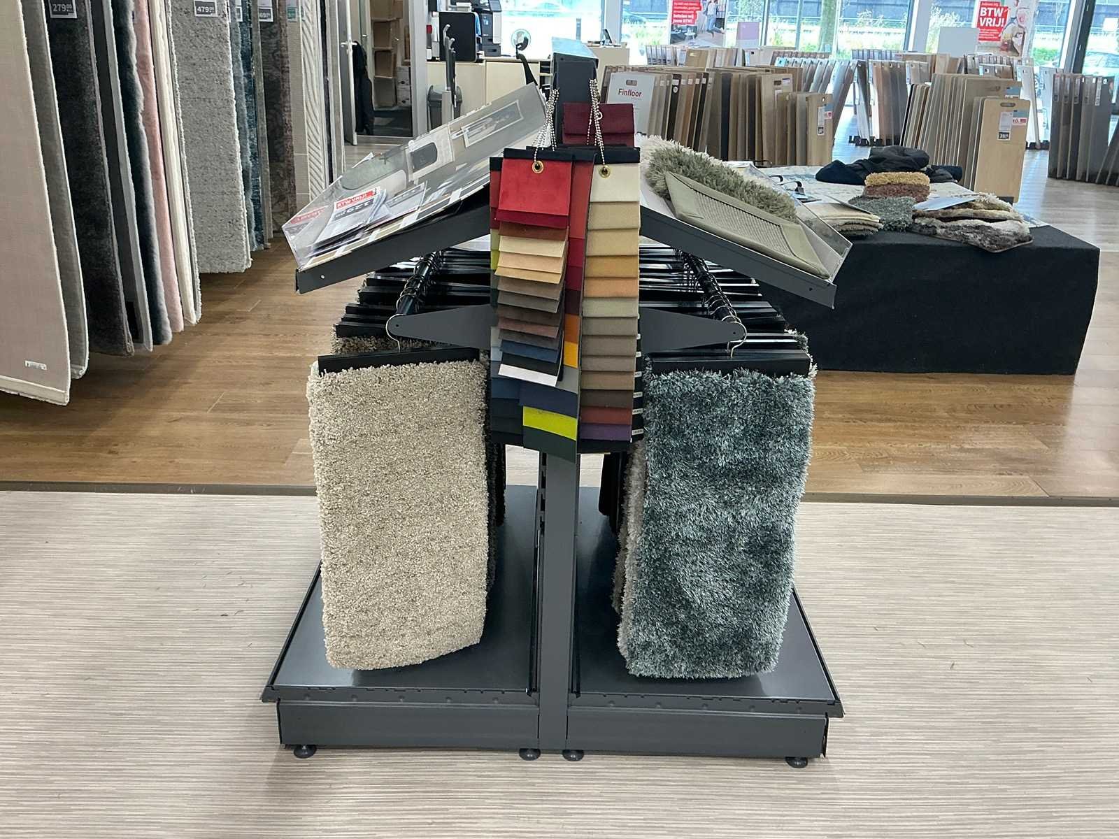 Dit kavel dient door de koper professioneel gedemonteerd te worden. De stellingen zijn gemaakt van datec onderdelen. Stellingen zijn 320x60x245, 104x125x144 en 200x125x144 cm Exclusief inhoud. Inclusief stofstalen