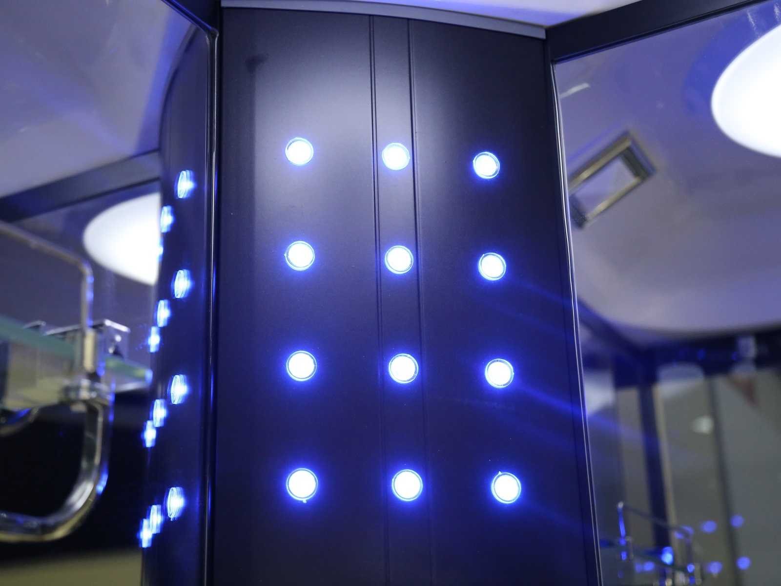 Type: SC2505 Voorzien van: Schuifdeuren, regendouche in het plafond, digitaal bedieningspaneel, in de hoek geplaatst douchepaneel, sfeerverlichting in de douchekolom, verlichting rond de regendouche, FM radio met speaker, mogelijkheid voor het aansluiten van een telefoon, CD-aansluiting, ozone-desinfectie, stelpoten, antislip bodem, ventilator, handdouche, 6 waterjets voor rugmassage, stoeltje. Totaal gewicht 91,5 kg in vier kartons. Bezorgtermijn 14 dagen Merk: Vonato Model: Halvo Stroomglide Product type: met bad Kleur: Zwart & wit Lengte: 90cm Hoogte: 215cm Materiaal: Veiligheidsglas