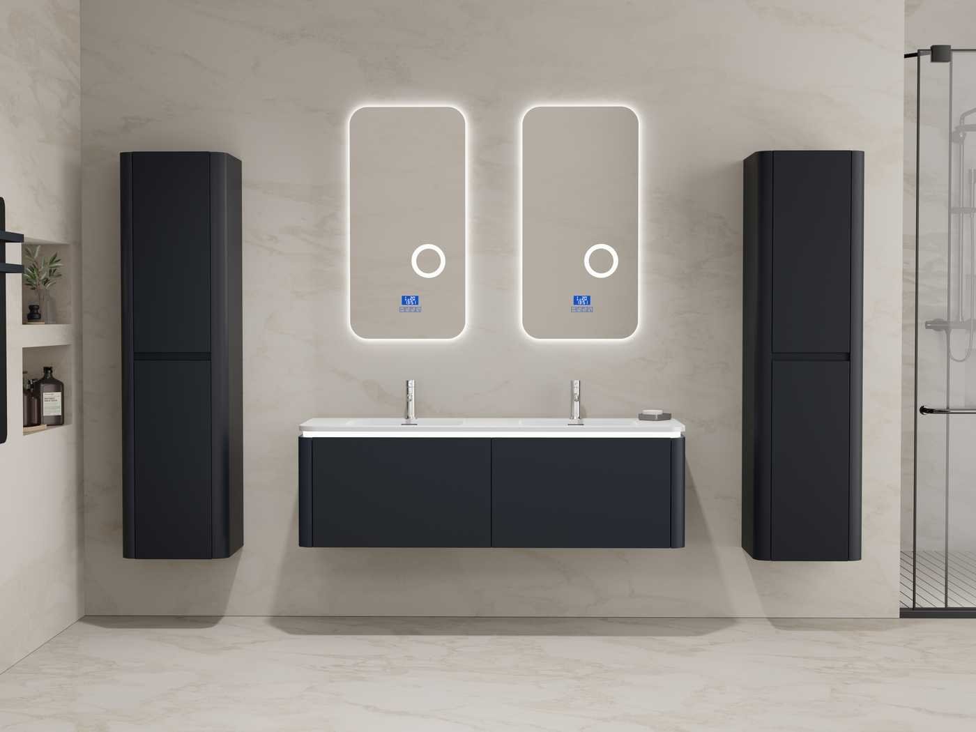 Type: BOSTON1402-BL. Afmetingen Complete set: 1 * Wastafelmeubel - 1400x455x400mm, 1 * Dubbele wasbak - 1405x460x190mm, 2 * Zijkast - 1500x350x350mm, 2* Spiegel- 450x900mm. Voorzien van: LED verlichting in onderkast - 2 kranen inclusief pop-up afvoer – 2 lades - Softclose lade systeem - LED spiegels met anti-fog systeem - Voorgemonteerde zijkasten en wastafelmeubel. Bezorgtermijn 14 dagen Merk: Vonato Model: Lykke 140 Product type: 2-Persoons 140 cm Hoogte: 40cm Lengte: 46cm Materiaal: Melamine, MDF, metaal Kleur: Zwart Kraan: Inclusief 2 kranen Wastafel: Inclusief dubbele wastafel Waskom: 0 Spiegelkast: Nee Spiegel: Ja Spiegel met verlichting: Ja Verlichting: Ja Onderkast: Ja Lades: 2 Bevestigingsmateriaal: Ja