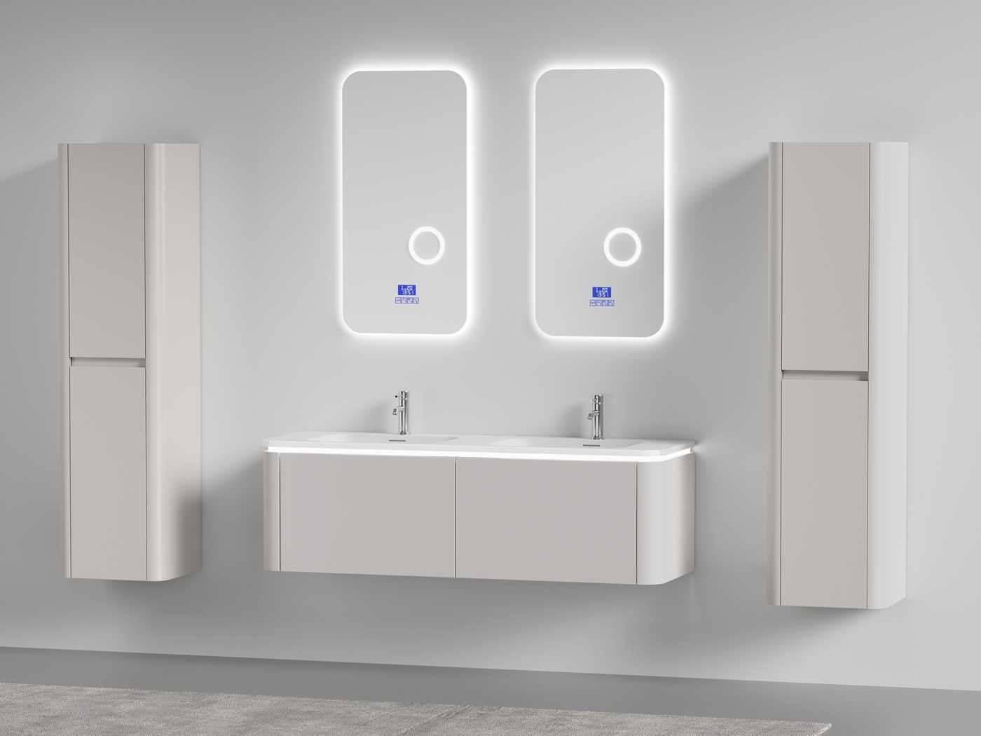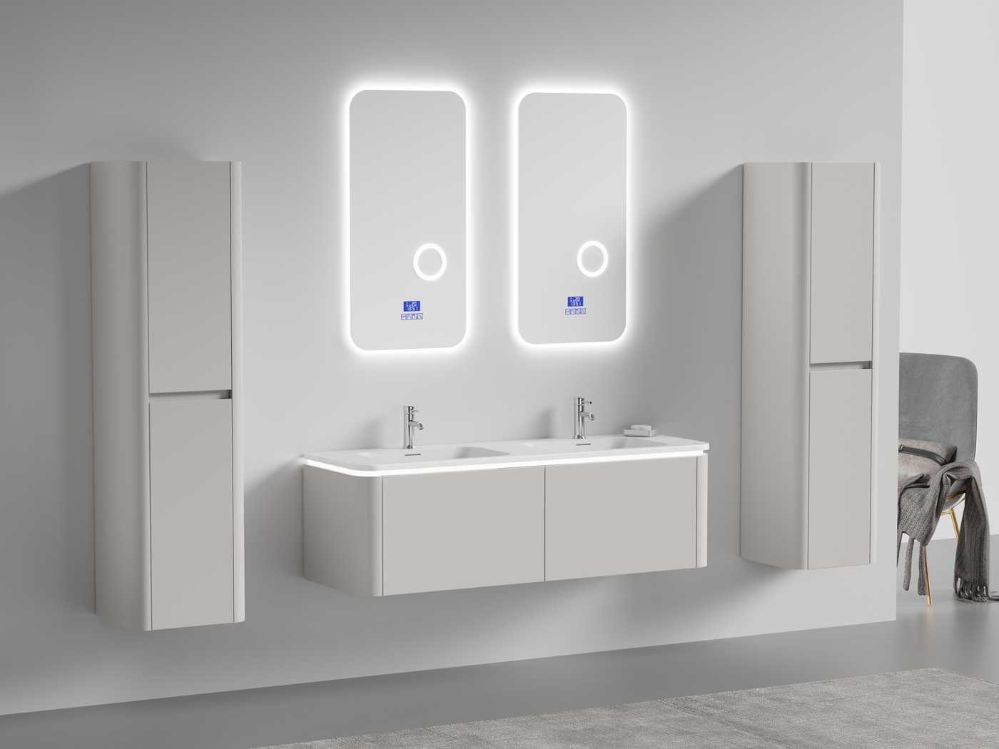 Type: BOSTON1402-TA. Afmetingen Complete set: 1 * Wastafelmeubel - 1400x455x400mm, 1 * Dubbele wasbak - 1405x460x190mm, 2 * Zijkast - 1500x350x350mm, 2* Spiegel- 450x900mm. Voorzien van: LED verlichting in onderkast - 2 kranen inclusief pop-up afvoer – 2 lades - Softclose lade systeem - LED spiegels met anti-fog systeem - Voorgemonteerde zijkasten en wastafelmeubel. Bezorgtermijn 14 dagen Merk: Vonato Model: Tilda 140 Product type: 2-Persoons 140 cm Hoogte: 40cm Lengte: 46cm Materiaal: Melamine, MDF, metaal Kleur: Taupe Kraan: Inclusief 2 kranen Wastafel: Inclusief dubbele wastafel Waskom: 0 Spiegelkast: Nee Spiegel: Ja Spiegel met verlichting: Ja Verlichting: Ja Onderkast: Ja Lades: 2 Bevestigingsmateriaal: Ja