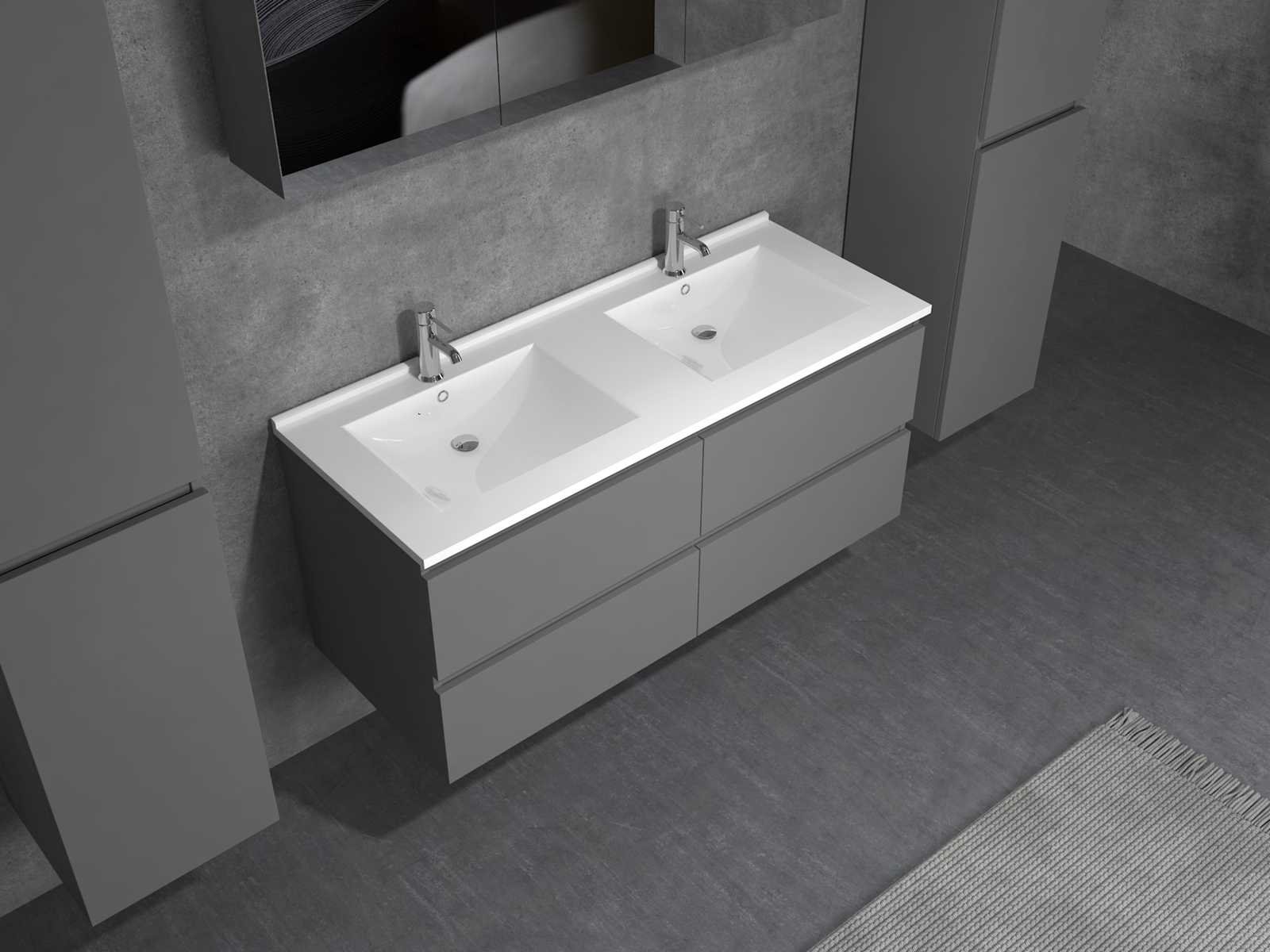 Type: HAVIKLUXWM-2-120-ANT. Model: 2-persoons badkamermeubel 120 cm - hoogglans antraciet met witte wasbak. Afmeting: 2-persoons set: 1 * Wastafelmeubel - 1200x455x520mm, 1 * Dubbele wasbak – 1200x460x160mm (rand 2 cm), 2 * Zijkasten - 1500x350x350mm, 1 * Spiegelkast - 1200x450x180mm. Voorzien van: Kranen inclusief pop-up drain – 4 lades - Softclose systeem op deurtjes en lades - Giethars wasbakken – LED verlichting boven de spiegel – Spiegelkast met 3 deurtjes en 2 planken - Voorgemonteerde zijkasten en wastafelmeubel. Bezorgtermijn 14 dagen Merk: Vonato Model: Modular 3 Product type: 2-Persoons 120 cm Hoogte: 45cm Lengte: 52cm Materiaal: 18 mm MFC Kleur: Hoogglans antraciet Kraan: Inclusief 2 kranen Wastafel: Inclusief dubbele wastafel Waskom: 0 Spiegelkast: Ja Spiegel: Ja Spiegel met verlichting: 0 Verlichting: Ja Onderkast: Ja Lades: 4 Bevestigingsmateriaal: Ja