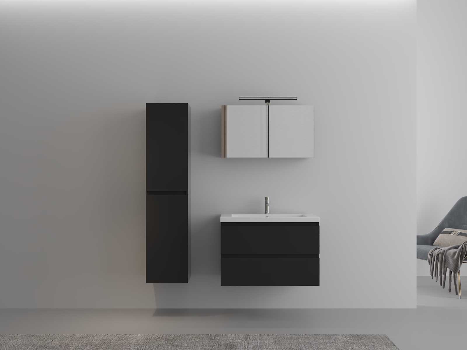 Type: HAVIKLUXWM-2-80-BL. Model: Badkamermeubel 80 cm - hoogglans zwart met witte wasbak. Afmetingen: 1 * Wastafelmeubel - 800x460x520mm, 1 * Wasbak – 800x460x160mm (rand 3 cm), 1 * Zijkast - 1500x350x350mm, 1 * Spiegelkast - 800x450x180mm Voorzien van: Kraan inclusief pop-up drain – 2 lades - Softclose systeem op deurtjes en lades - Giethars wasbak – LED verlichting boven de spiegel – Spiegelkast met 2 deurtjes en 1 plank - Voorgemonteerde zijkasten en wastafelmeubel. Bezorgtermijn 14 dagen Merk: Vonato Model: Classic 5 Product type: 1-Persoons 80 cm Hoogte: 46cm Lengte: 52cm Materiaal: 18 mm MFC Kleur: Hoogglans zwart Kraan: Inclusief 1 kraan Wastafel: Inclusief 1 witte wasbak. Waskom: 0 Spiegelkast: Ja Spiegel: Ja Spiegel met verlichting: 0 Verlichting: Ja Onderkast: Ja Lades: 2 Bevestigingsmateriaal: Ja
