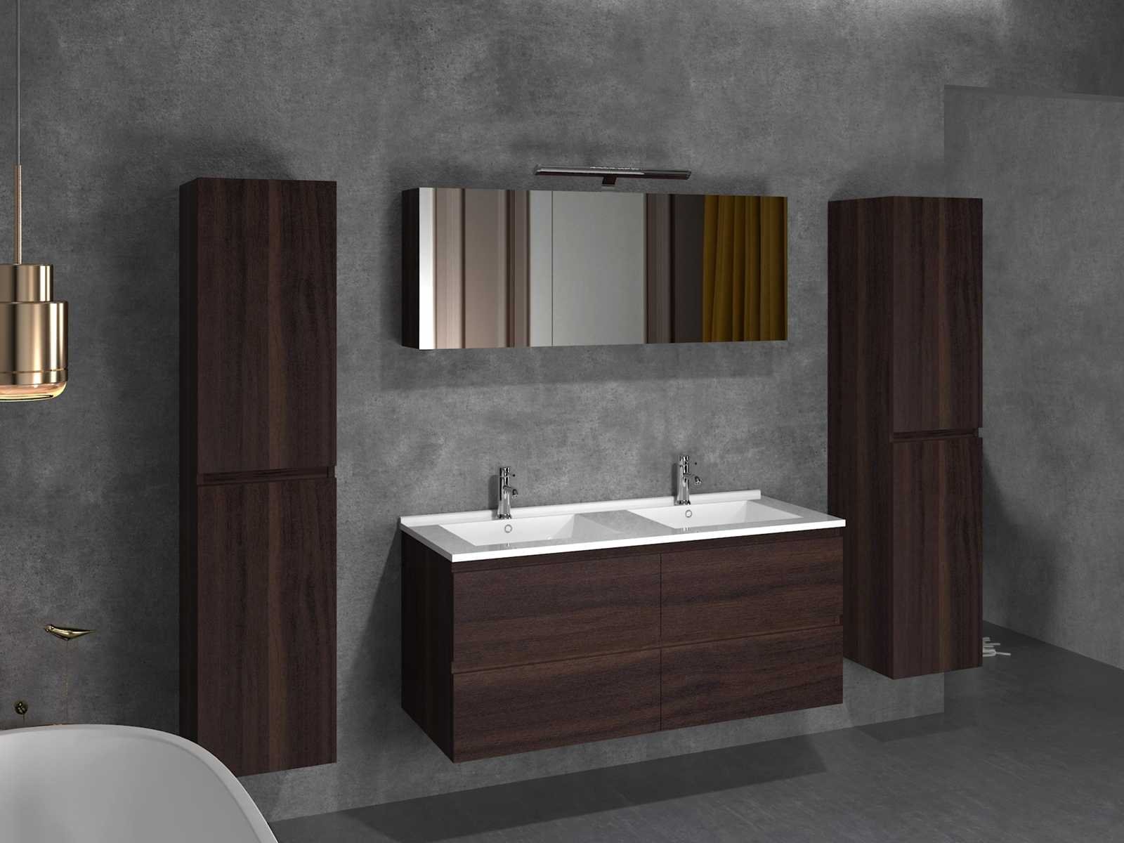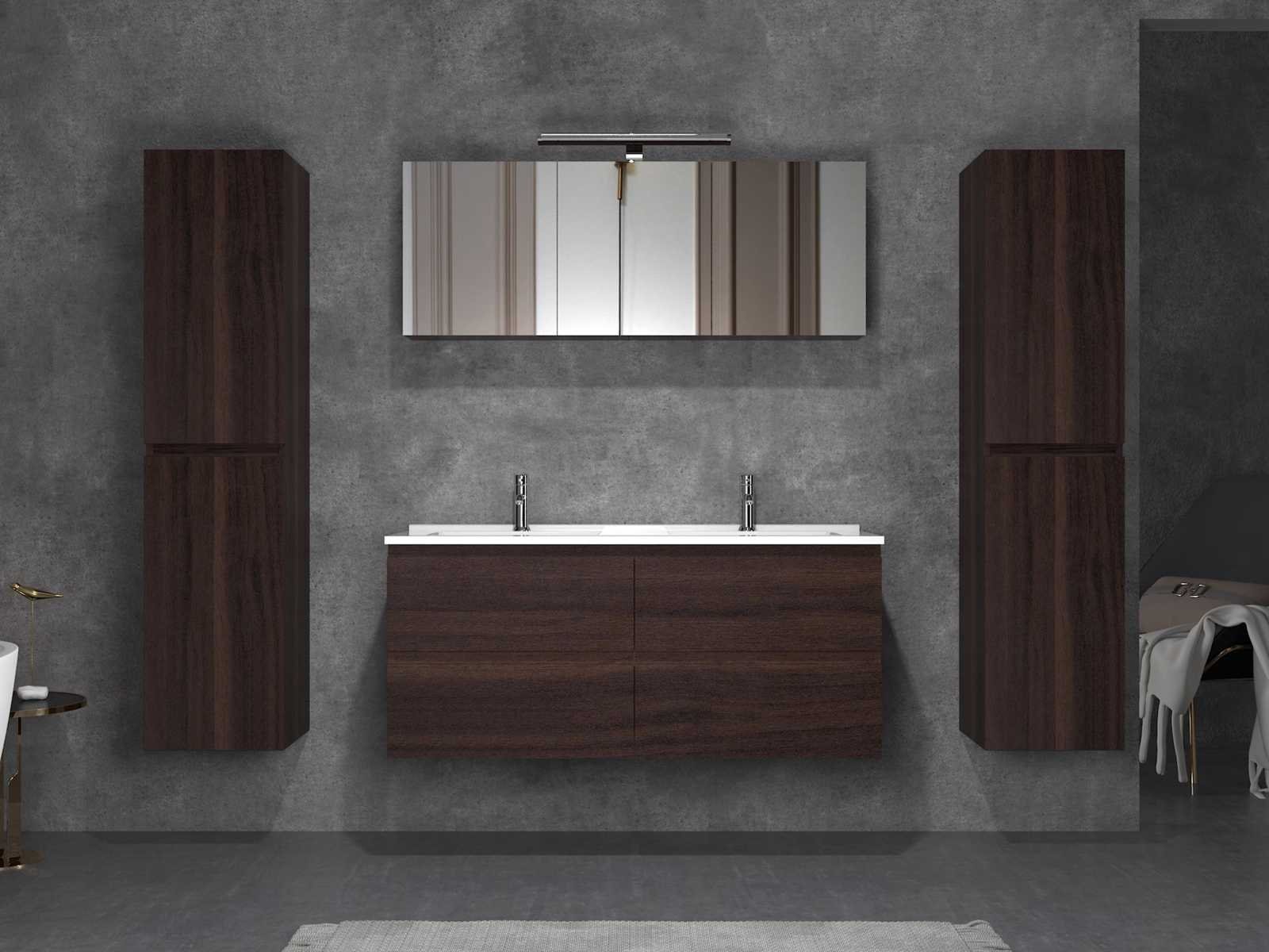 Type: HAVIKLUXWM-2-120-H084. Model: 2-persoons badkamermeubel 120 cm - donker hout decor met witte wasbak. Afmeting: 2-persoons set: 1 * Wastafelmeubel - 1200x455x520mm, 1 * Dubbele wasbak – 1200x460x160mm (rand 2 cm), 2 * Zijkasten - 1500x350x350mm, 1 * Spiegelkast - 1200x450x180mm. Voorzien van: Kranen inclusief pop-up drain – 4 lades - Softclose systeem op deurtjes en lades - Giethars wasbakken – LED verlichting boven de spiegel – Spiegelkast met 3 deurtjes en 2 planken - Voorgemonteerde zijkasten en wastafelmeubel. Bezorgtermijn 14 dagen Merk: Vonato Model: Eco 2 Product type: 2-Persoons 120 cm Hoogte: 45cm Lengte: 52cm Materiaal: 18 mm MFC Kleur: Donker hout decor Kraan: Inclusief 2 kranen Wastafel: Inclusief dubbele wastafel Waskom: 0 Spiegelkast: Ja Spiegel: Ja Spiegel met verlichting: 0 Verlichting: Ja Onderkast: Ja Lades: 4 Bevestigingsmateriaal: Ja