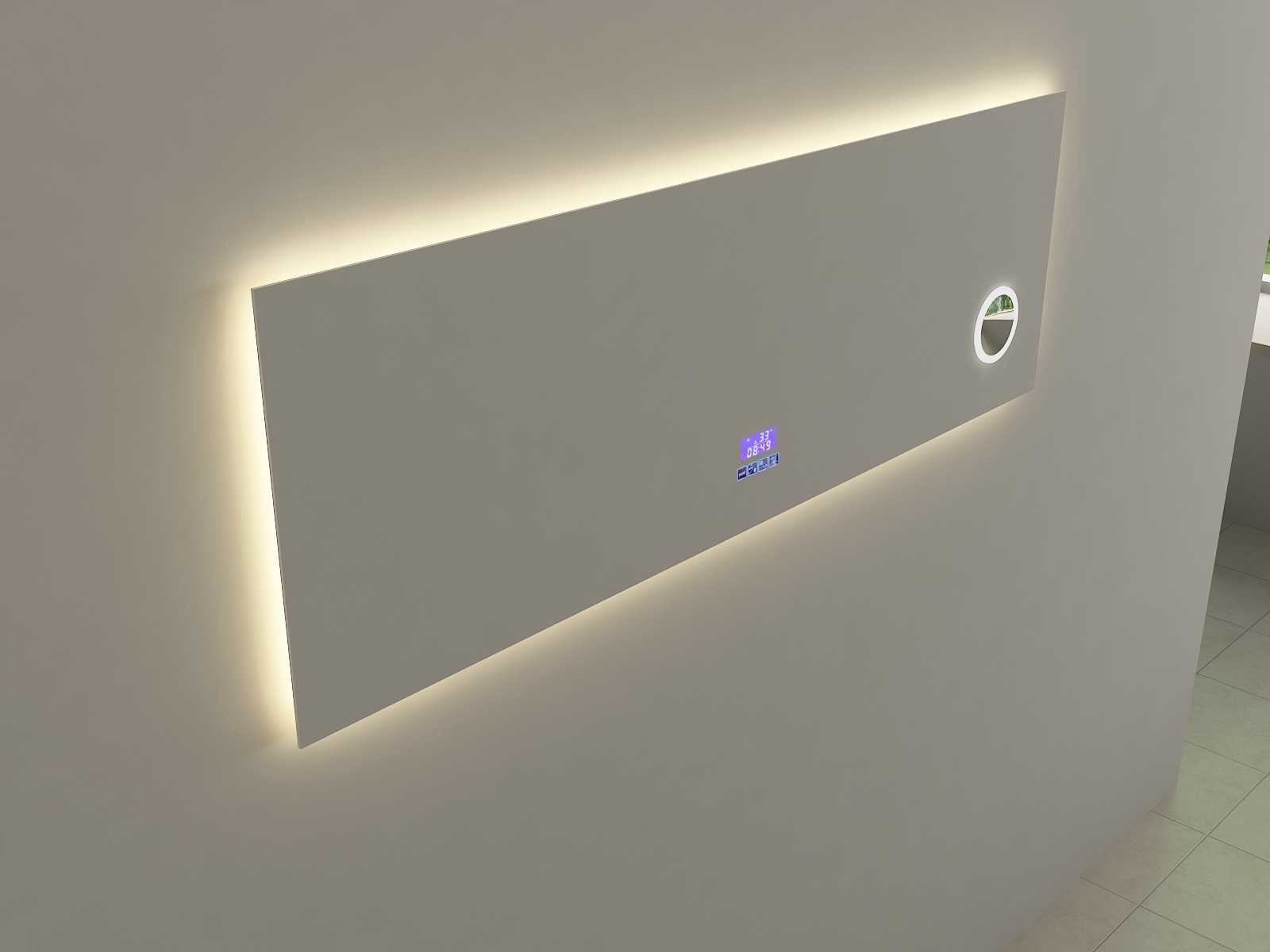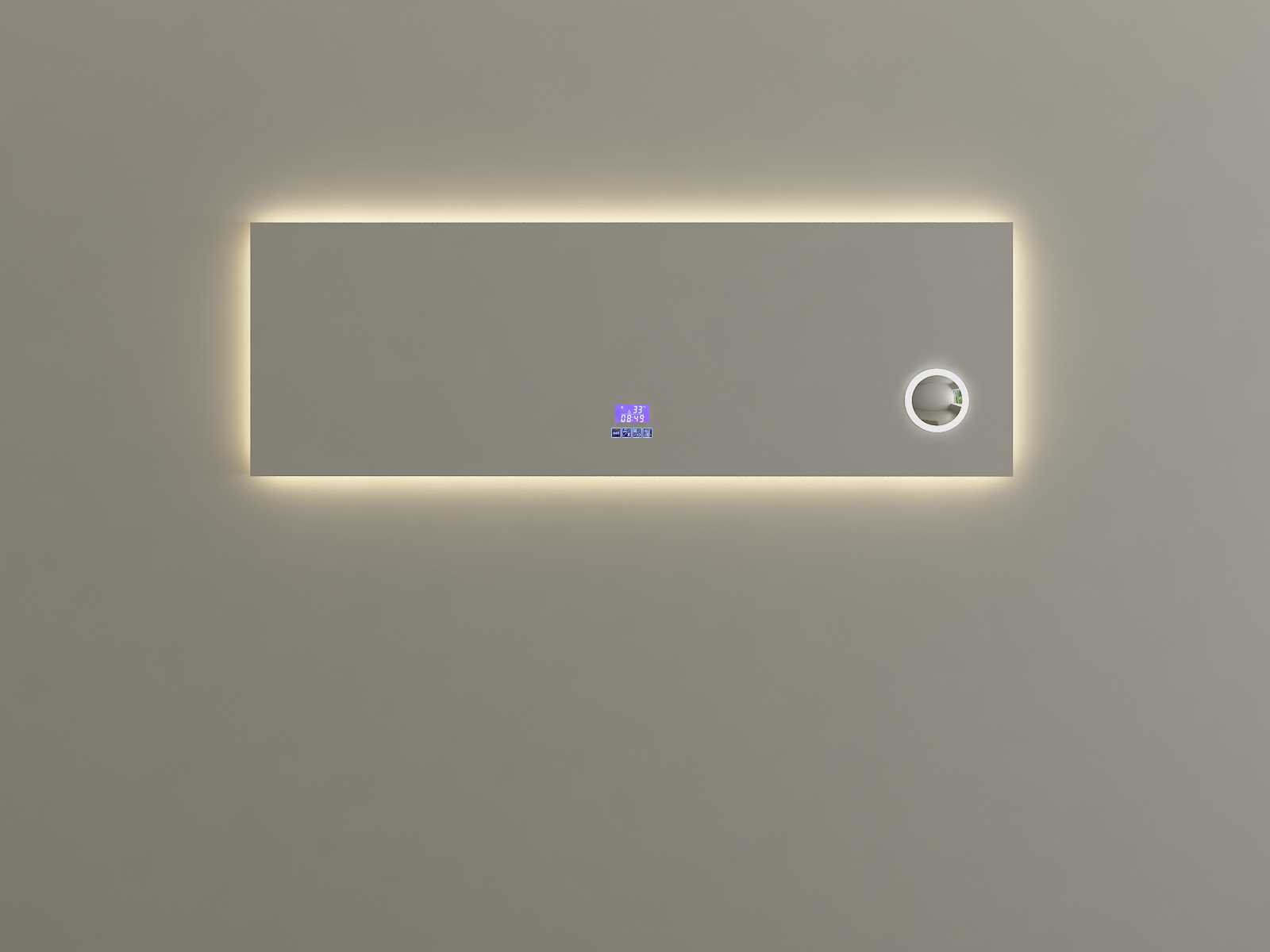 Type: RALM-150 Voorzien van: Touch bediening via digitaal display – LED verlichting in 3 kleuren, dimbaar – Bluetooth & speakers – Digitale klok – Digitale temperatuurmeter – 220 volt aansluiting – Anti-fog technologie door verwarming in de spiegel – Vergrootglas (vergroot 3x) in de spiegel Ø10 cm - Kopervrije spiegel - 1,5mm explosieveilige laag aan de achterkant. Bezorgtermijn 14 dagen Merk: Vonato Model: Serenza Product type: met LED verlichting Kleur: LED verlichting in 3 kleuren; geel, blauw en wit Lengte: 0cm Hoogte: 50cm Materiaal: 0