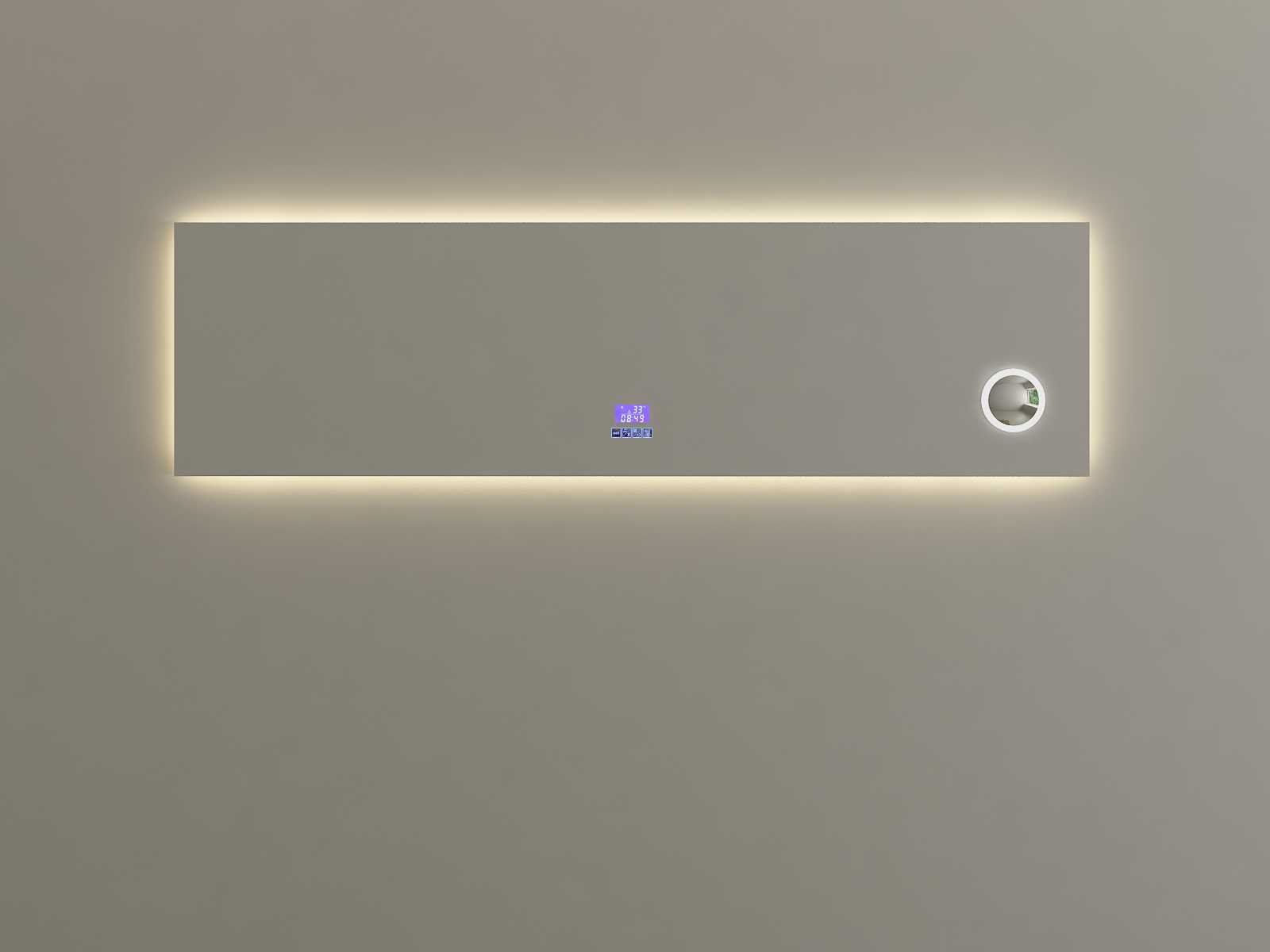 Type: RALM-180 Voorzien van: Touch bediening via digitaal display – LED verlichting in 3 kleuren, dimbaar – Bluetooth & speakers – Digitale klok – Digitale temperatuurmeter – 220 volt aansluiting – Anti-fog technologie door verwarming in de spiegel – Vergrootglas (vergroot 3x) in de spiegel Ø10 cm - Kopervrije spiegel - 1,5mm explosieveilige laag aan de achterkant. Bezorgtermijn 14 dagen Merk: Vonato Model: Lorenta Product type: met LED verlichting Kleur: LED verlichting in 3 kleuren; geel, blauw en wit Lengte: 0cm Hoogte: 50cm Materiaal: 0