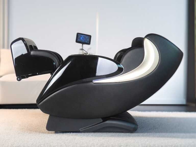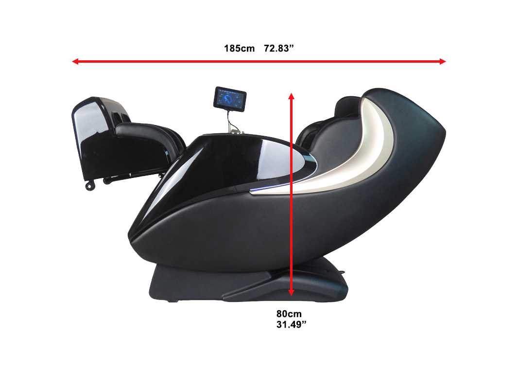 Type: 898-C65. Bekleding: Hoge kwaliteit leder. Voorzien van: Dual manipulators - Bodyscan - 3D track massage - Bluetooth muziek - Kuit massage & verwarming - Voetenmassage - Touch screen display - Sfeerverlichting - Verschillende progromma's - Aanpasbaar in snelheid en intensiteit. Garantie: 1 jaar Bezorgtermijn 14 dagen Merk: Vonato Model: Lumora Product type: Zero Gravity Kleur: Donkerblauw/Zwart/Gouden details Lengte: 150cm Hoogte: 120cm Materiaal: Hoge kwaliteit leer