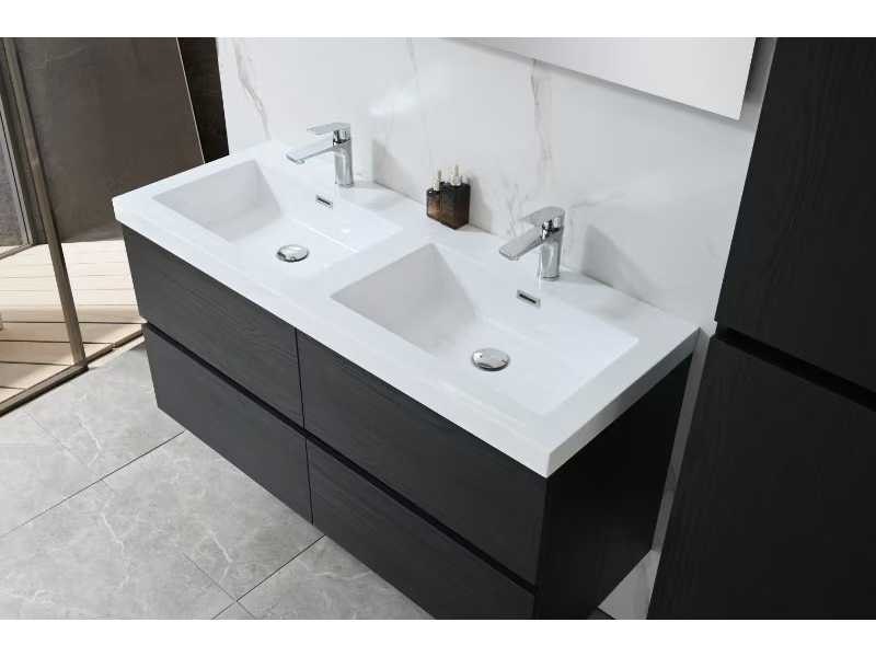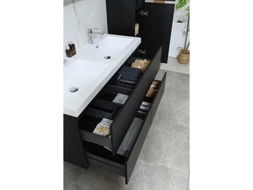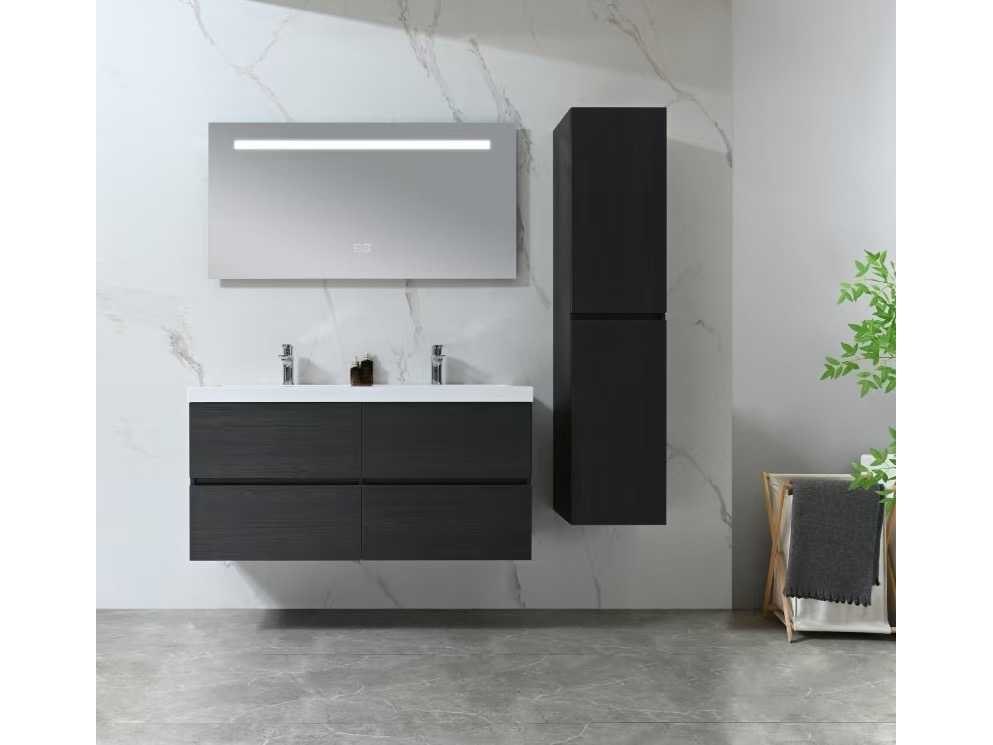 Type: 9015. Afmeting: 3-delige set: 1 * Wastafelmeubel - 1200x450x600mm, 1 * Zijkast - 1500x350x350mm, 1 * Spiegel- 1200x600mm. Voorzien van: Kranen inclusief pop-up afvoer – 4 stevige metalen lades - Softclose lade systeem - LED spiegel met anti-fog systeem - Voorgemonteerde zijkast en wastafelmeubel. Bezorgtermijn 14 dagen Merk: Vonato Model: Calmwood 120 Product type: 2-Persoons 120 cm Hoogte: 60cm Lengte: 45cm Materiaal: Melamine, kunstmarmer Kleur: Donker hout decor Kraan: Inclusief 2 kranen Wastafel: Inclusief dubbele wastafel Waskom: 0 Spiegelkast: Nee Spiegel: Ja Spiegel met verlichting: Ja Verlichting: Ja Onderkast: Ja Lades: 4 Bevestigingsmateriaal: Ja