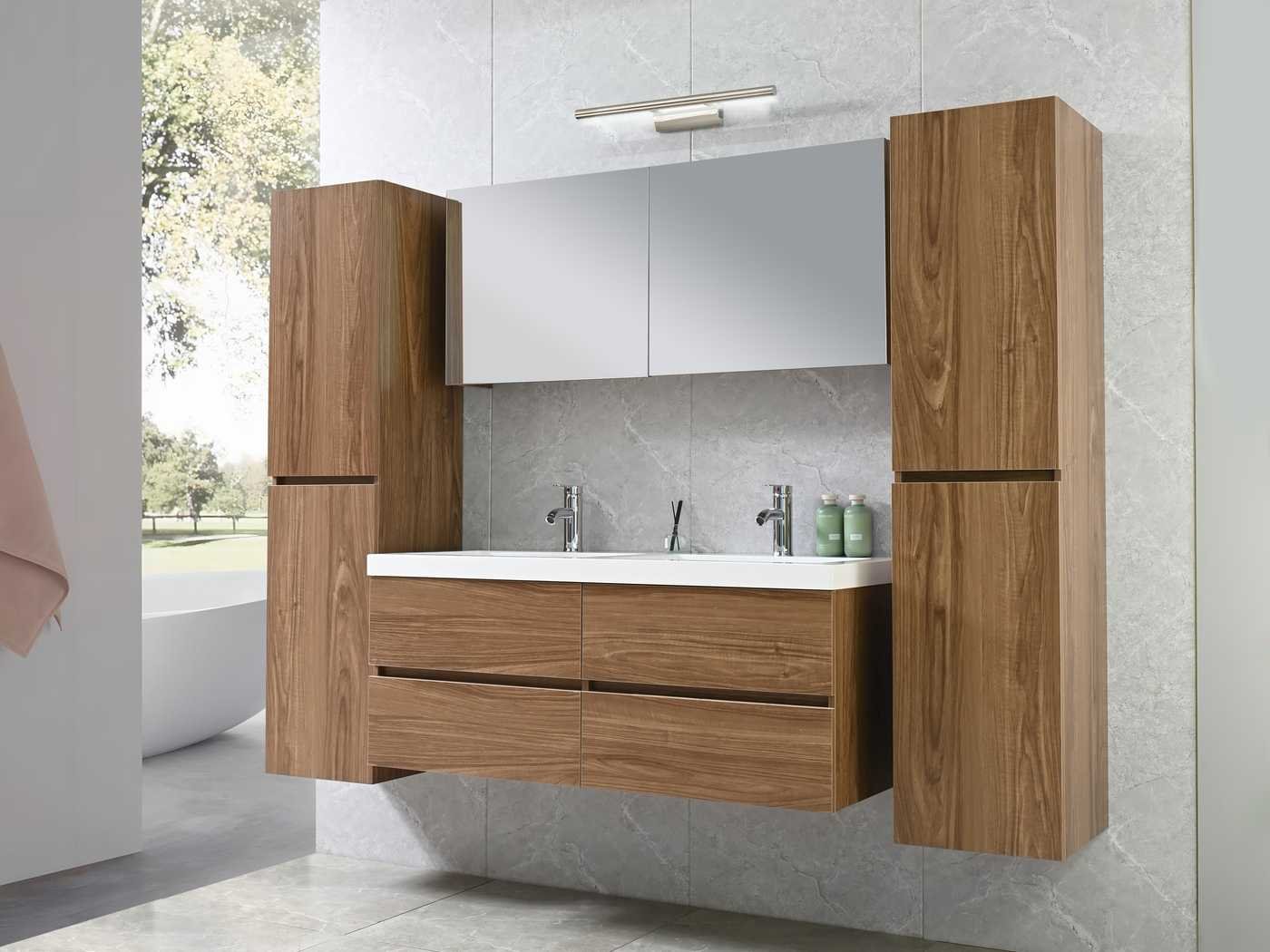 Type: Havik. Model: 2-persoons badkamermeubel 120 cm natural hout decor. Kranen: Inclusief. Afmeting: 2-persoons set: 1 * Wastafelmeubel - 1200x470x500mm, 2 * Zijkasten - 1500x350x350mm, 1 * Spiegelkast - 1200x450x180mm. Voorzien van: Kranen inclusief pop-up drain - Softclose lade systeem - Giethars wasbakken - Voorgemonteerde zijkasten en wastafelmeubel. Bezorgtermijn 14 dagen Merk: Vonato Model: Premium 0 Product type: 2-Persoons 120 cm Hoogte: 50cm Lengte: 47cm Materiaal: 0 Kleur: Natural hout decor Kraan: Inclusief 2 kranen Wastafel: Inclusief 2 persoons wasbak Waskom: 0 Spiegelkast: Ja Spiegel: 0 Spiegel met verlichting: Ja Verlichting: Ja Onderkast: Ja Lades: 4 Bevestigingsmateriaal: Ja