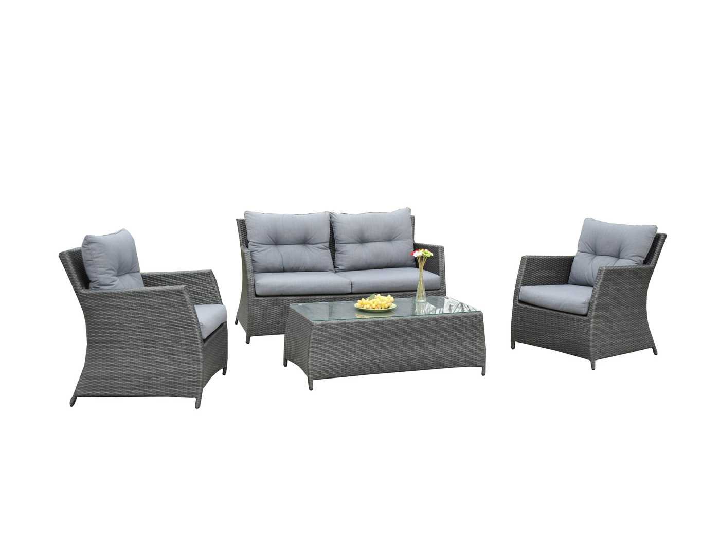 Type: VIGOLG. Afmetingen: 4-delige set: 1 * bank: 156x80x85 cm, 2 * stoel: 72x80x85 cm, 1 * tafel met glas: 115x60x41 cm. Zithoogte: 34,5 cm. Voorzien van: Waterafstotende kussens 10 cm dik – Glazen plaat 5 mm gehard glas - Weerbestendig vlechtwerk – Gepoedercoat aluminium frame. Bezorgtermijn 14 dagen Merk: Vonato Model: Toscano Product type: 4-delig Kussens: Grijs Stapelbaar: Nee Verstelbaar: Nee Vorm: rechthoekig Stoelen: 2 Kleur: Antraciet Lengte: 0cm Hoogte: 0cm Diepte: 0 Zithoogte: 0 Materiaal: Gepoedercoat aluminium frame