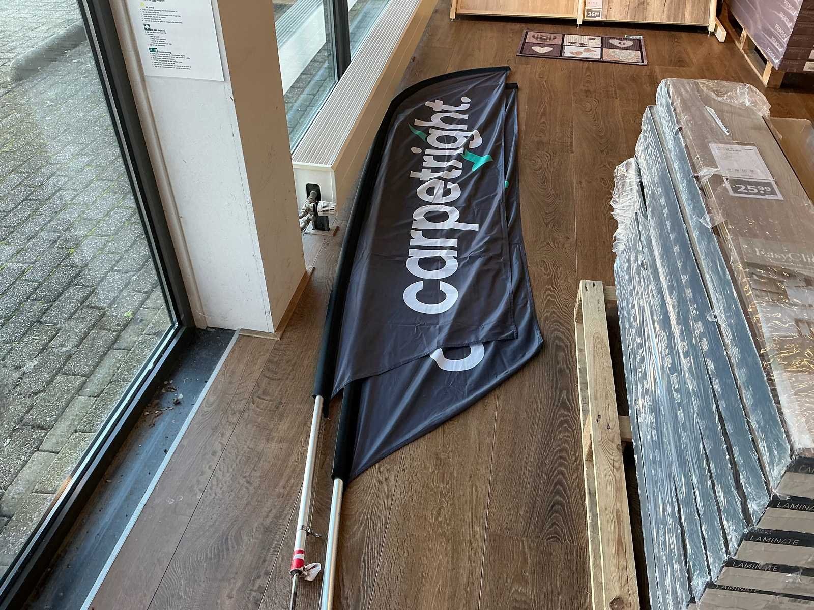 Stoepbord is 95x60x150 cm Vlaggen zijn 60x310 cm