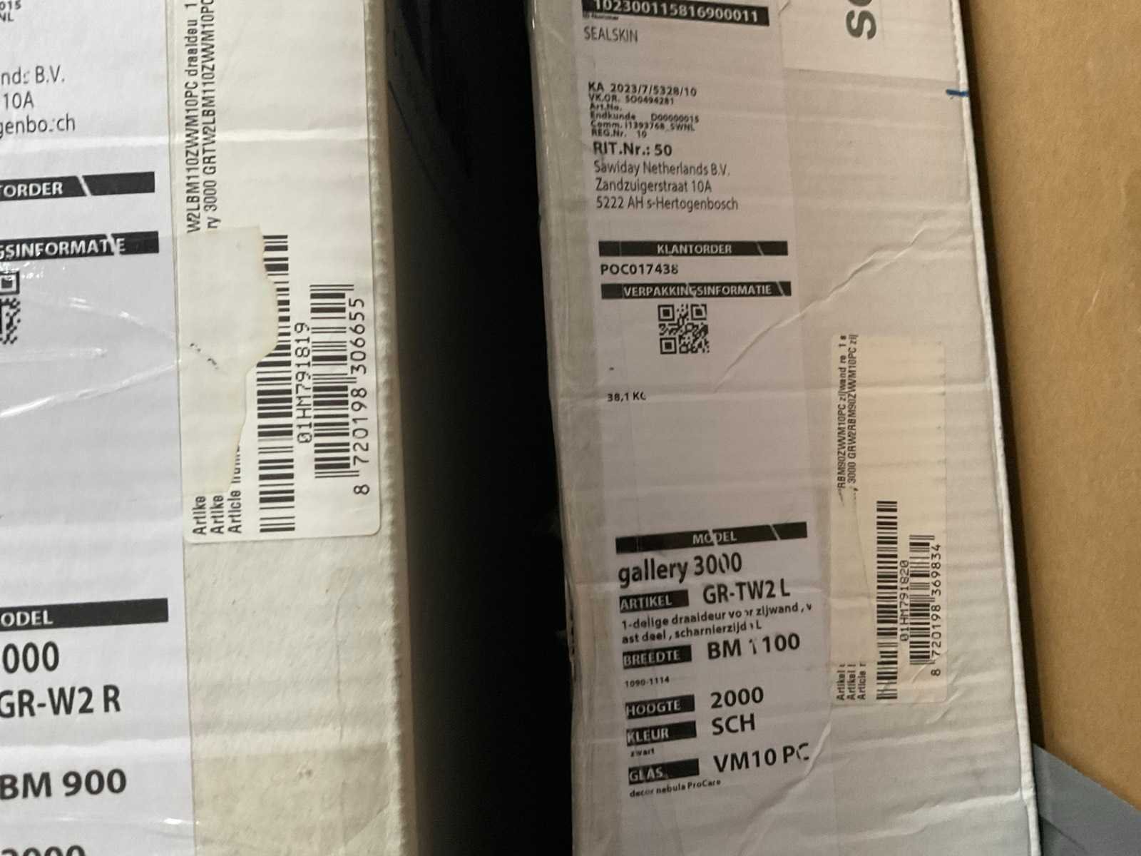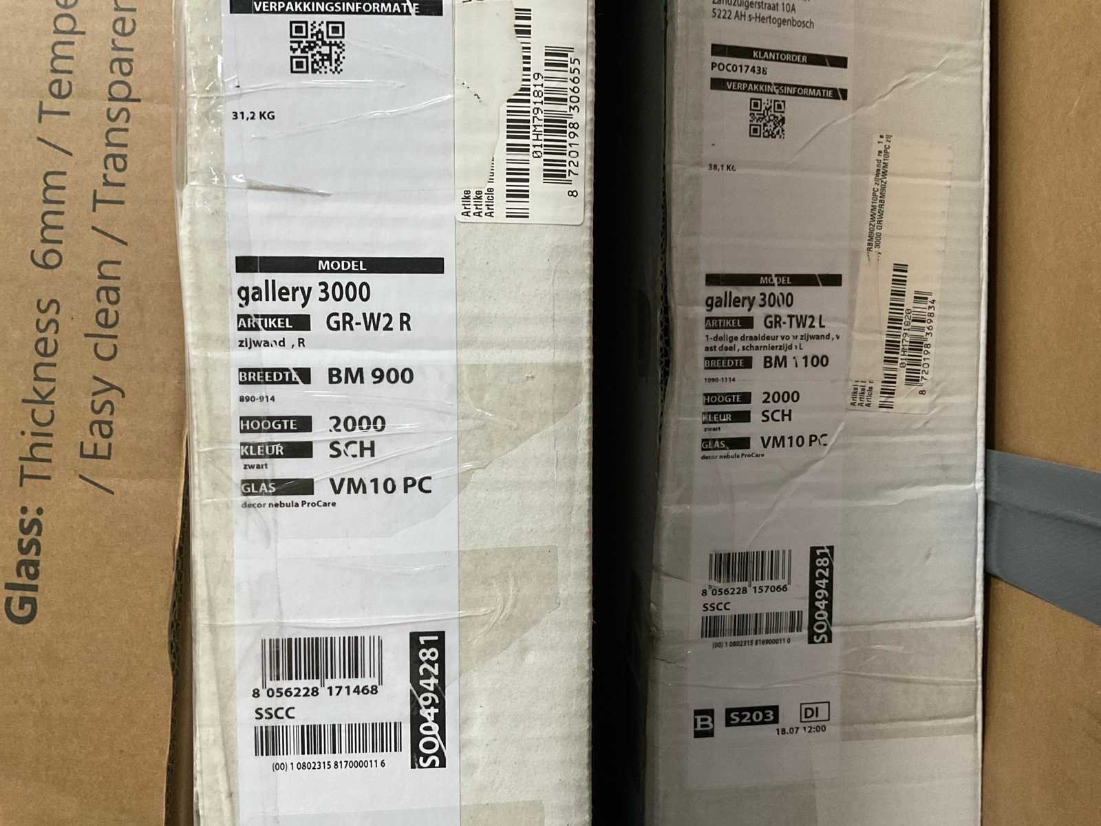 Zijwand rechts 90 cm en deur links 100 cm; profiel mat zwart; glas decor nobula pro care Merk: Sealskin Model: Gallery 3000