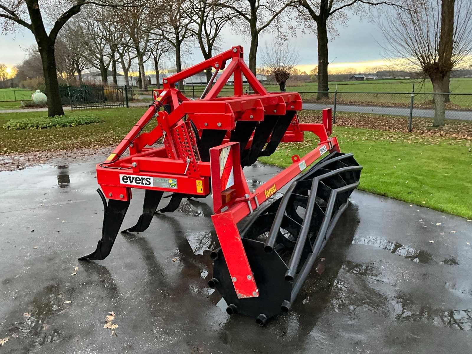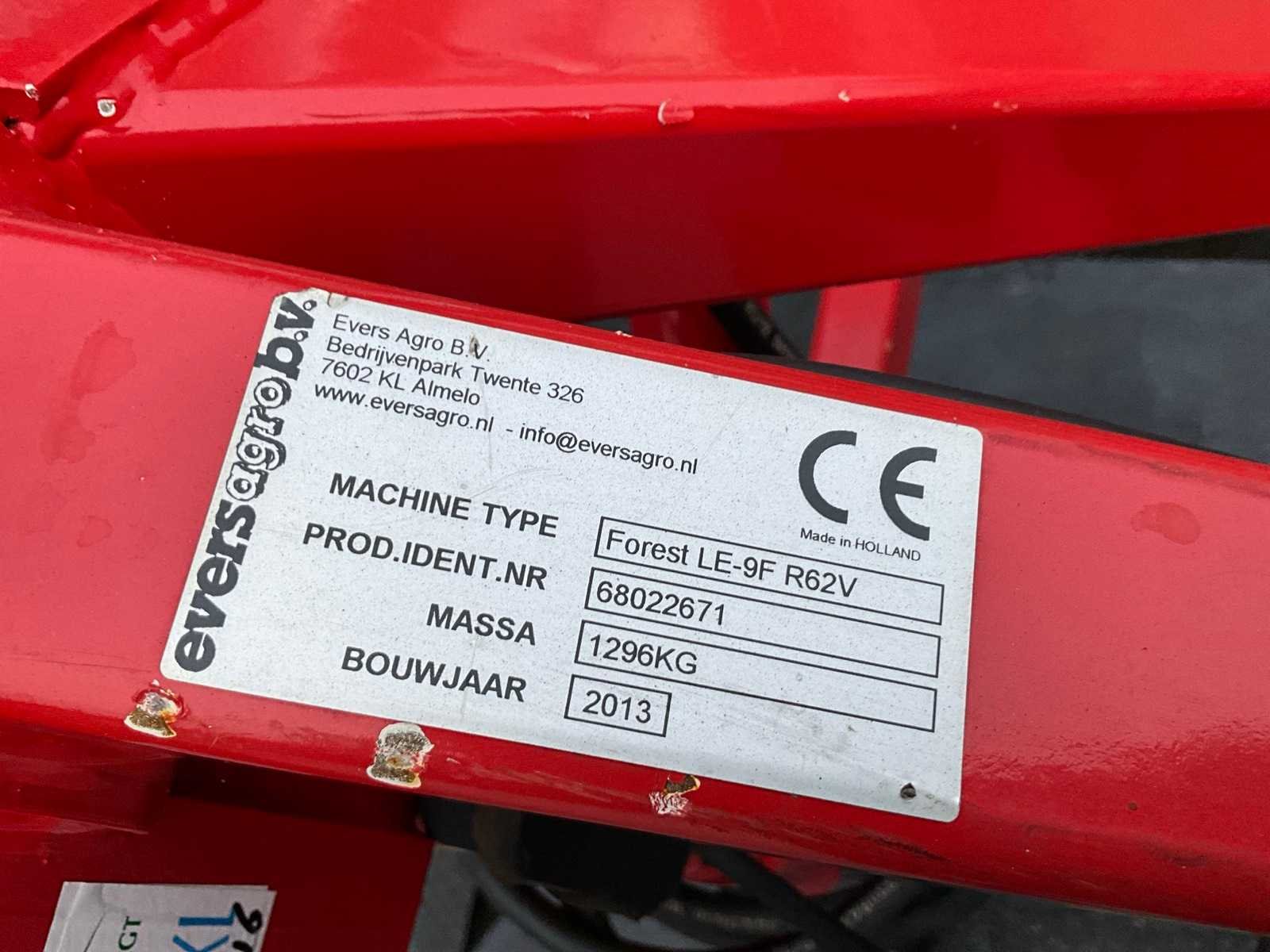 Voorzien van 9 tanden (5 voor en 4 achter), roldiameter 600 mm voorzien van 8 buizen á 60 mm, rolbreedte 3400 mm, Merk: Evers Type: Forest LE-9F R62V Bouwjaar: 2013 Werkbreedte: 3000mm Werkdiepte: 600mm Eigen gewicht: 1296kg Totale afmeting L: 2300mm Totale afmeting Breedte: 3500mm Totale afmeting Hoogte: 1800mm