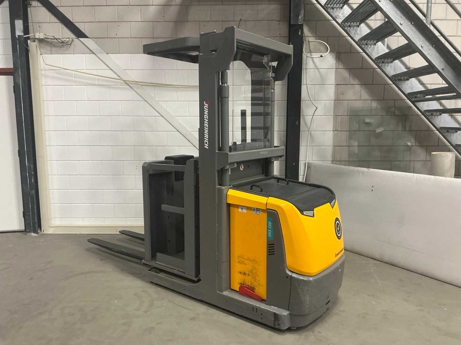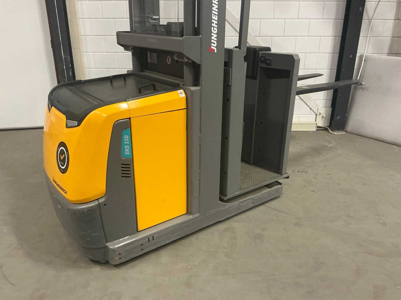 Voorzien van Jungheinrich SLH090 acculader Merk: Jungheinrich Type: EKS110 Hefvermogen: 1000kg Lepellengte: 1150mm Afgelezen urenstand: 3395 Totale afmeting L: 2900mm Totale afmeting Breedte: 900mm Totale afmeting Hoogte: 2250mm Meerij stapelaar: true