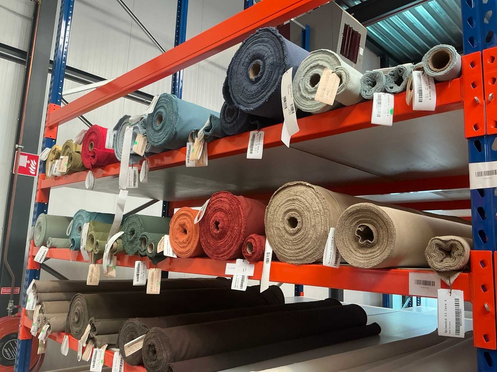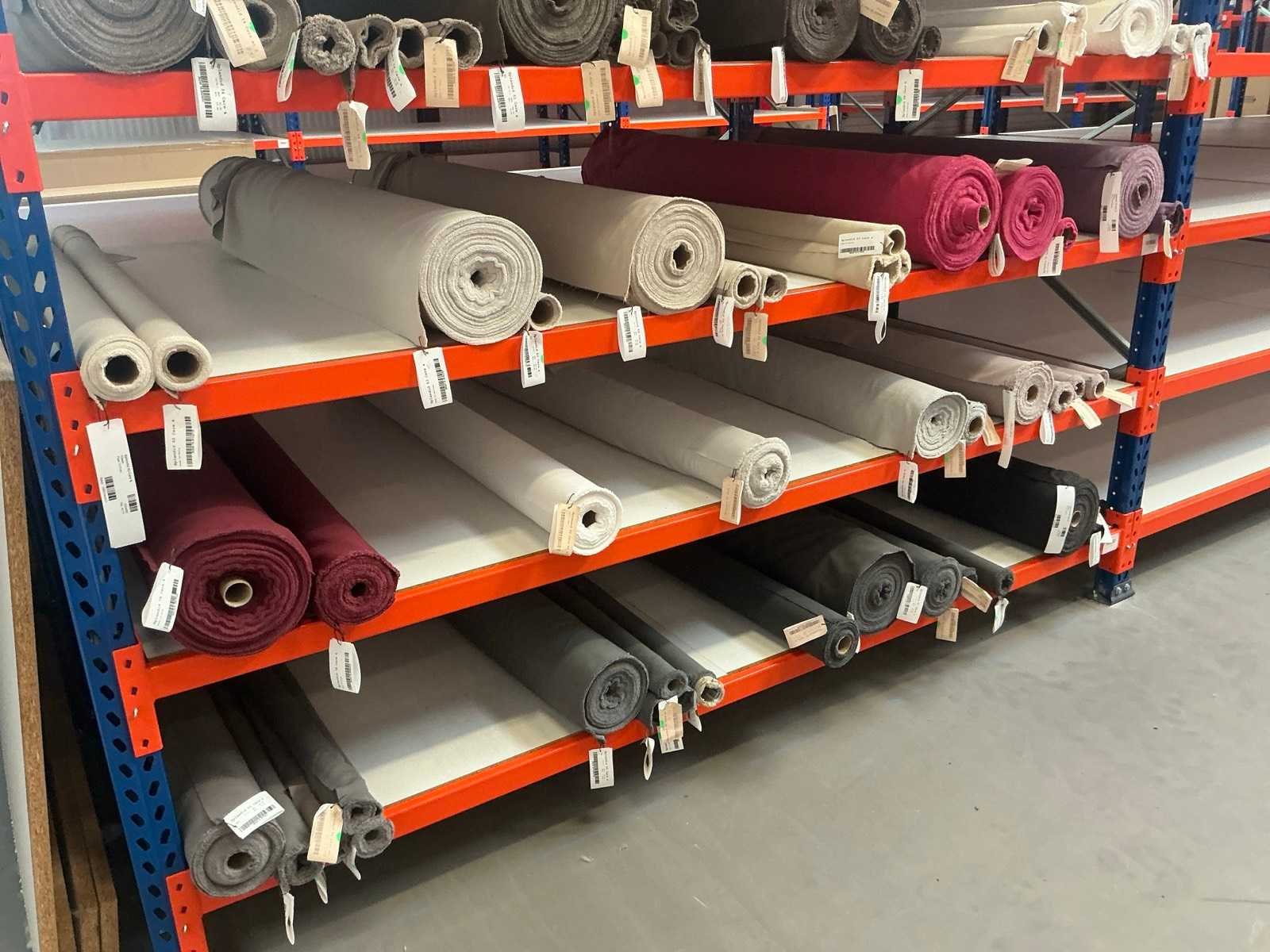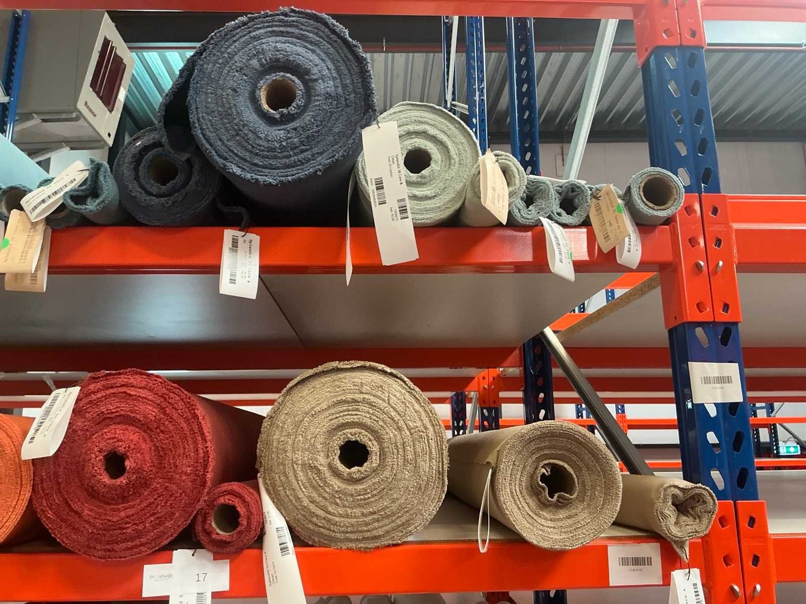 Bestaande uit inhoud sectie, diverse rollen textiel / stof. Diverse designs, soorten stof. Diverse lengtes