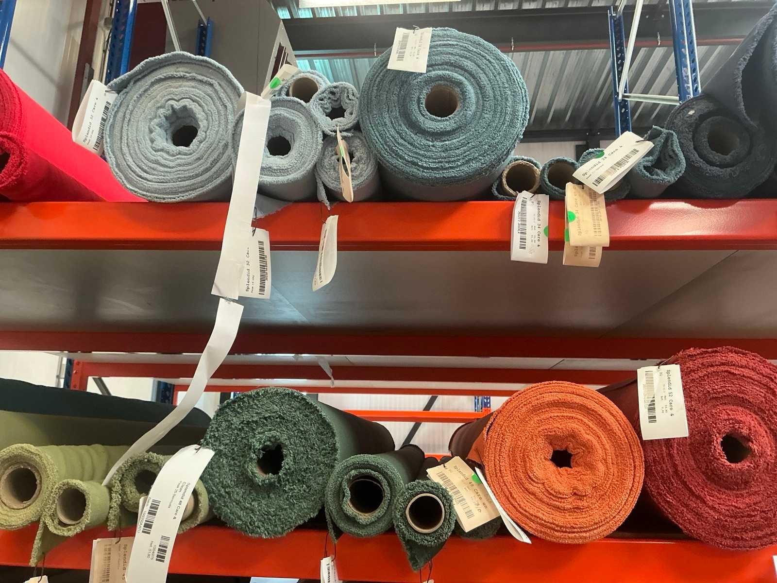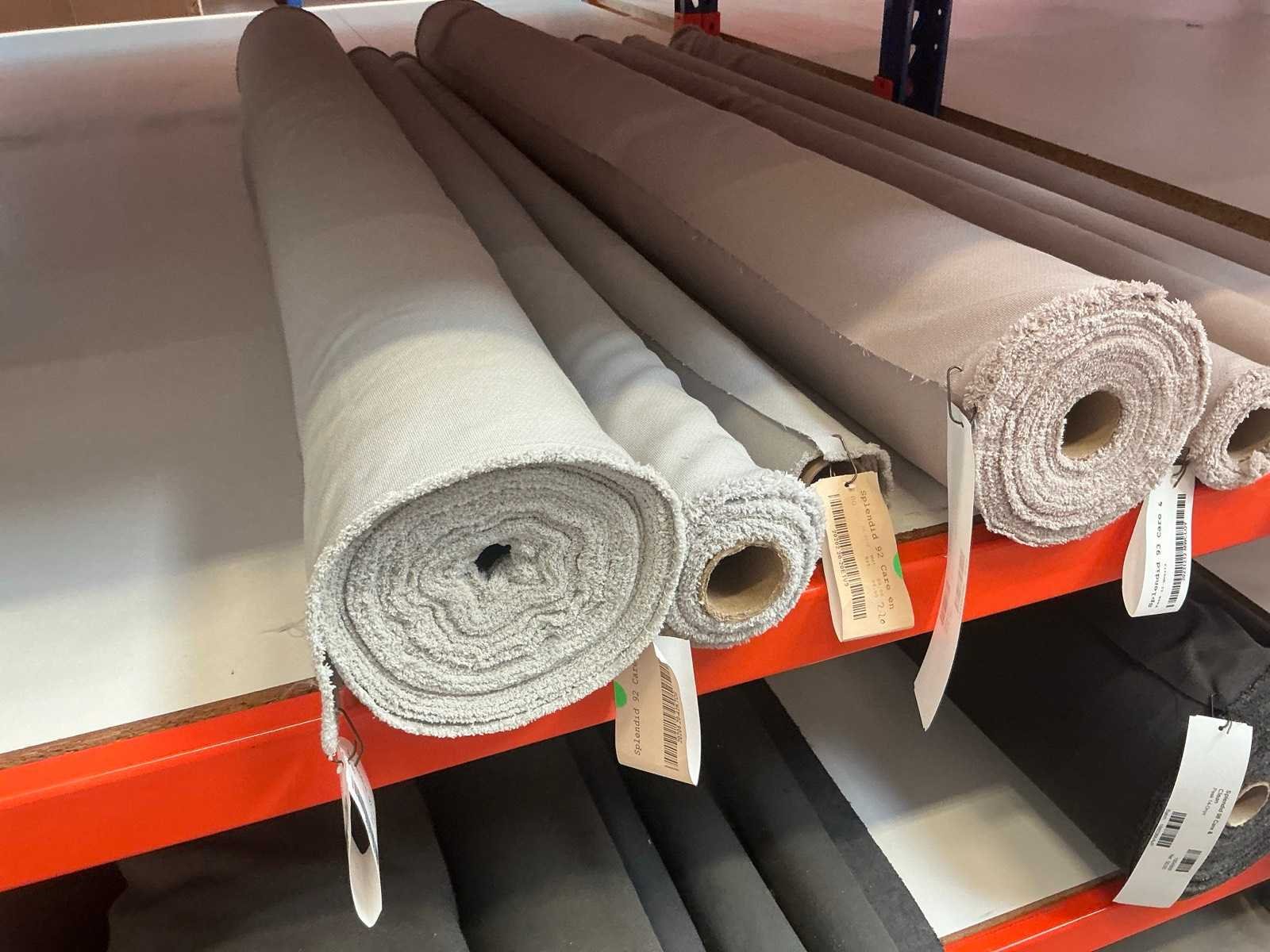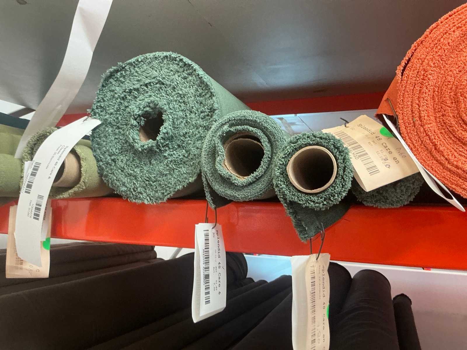 Bestaande uit inhoud sectie, diverse rollen textiel / stof. Diverse designs, soorten stof. Diverse lengtes