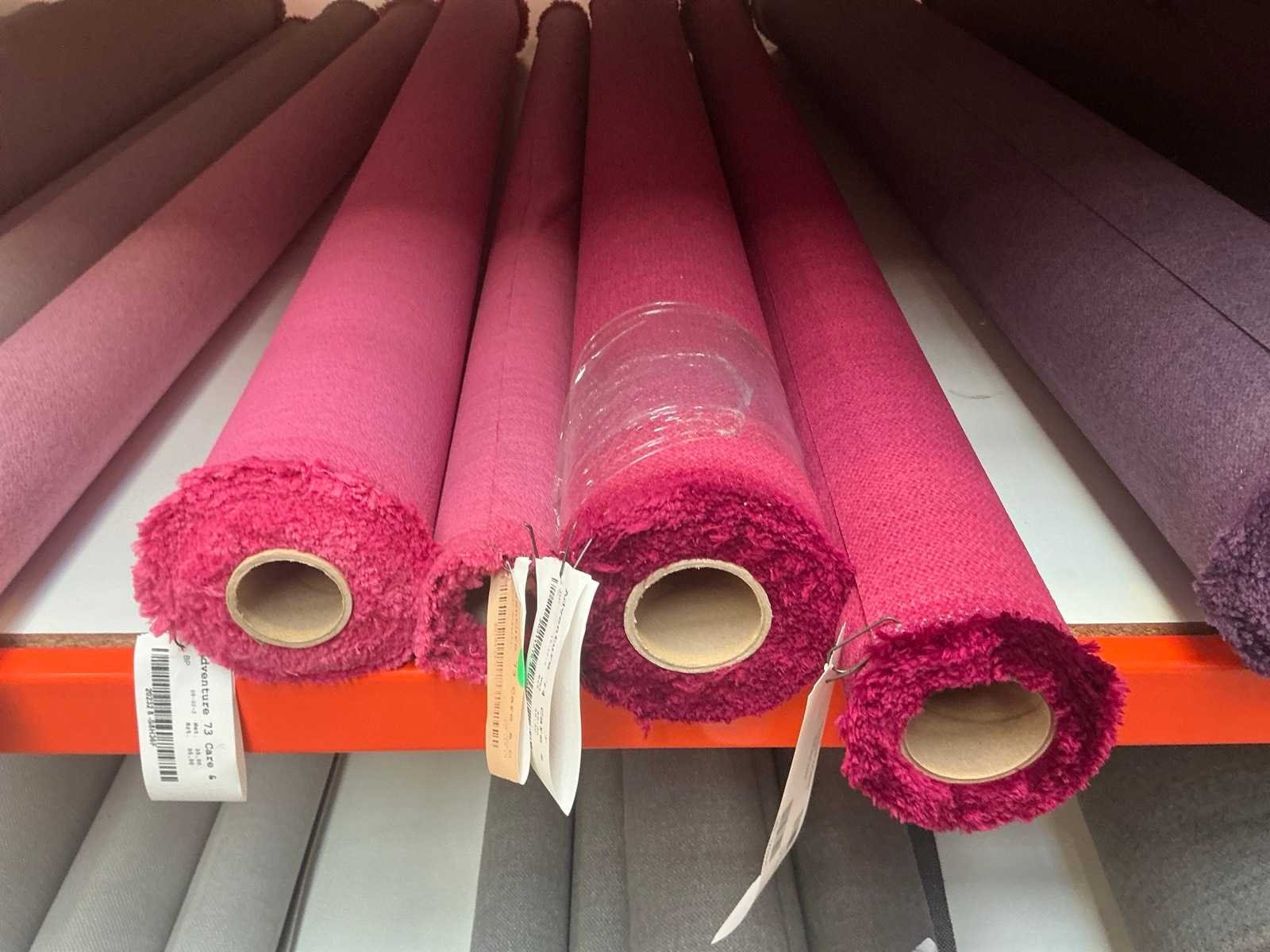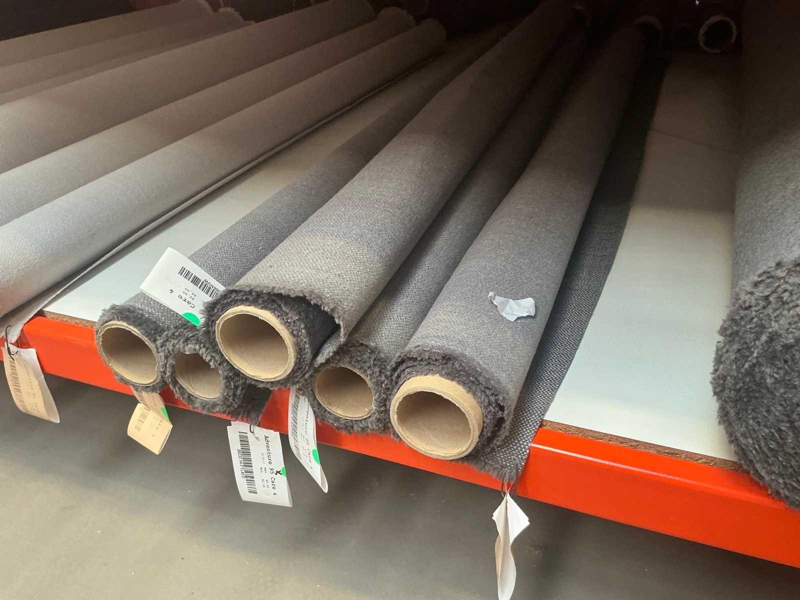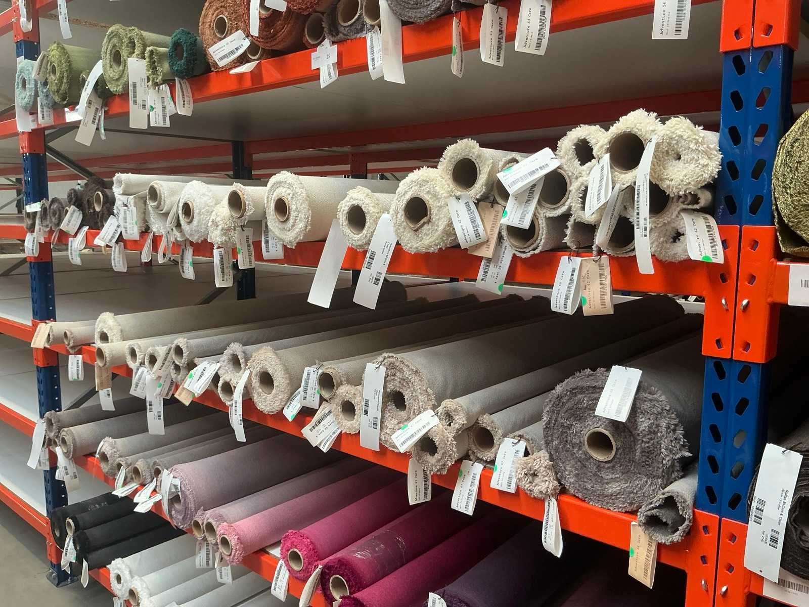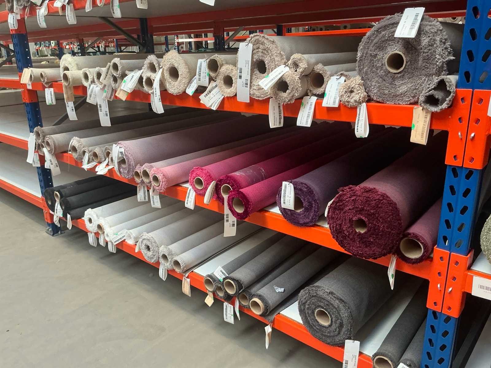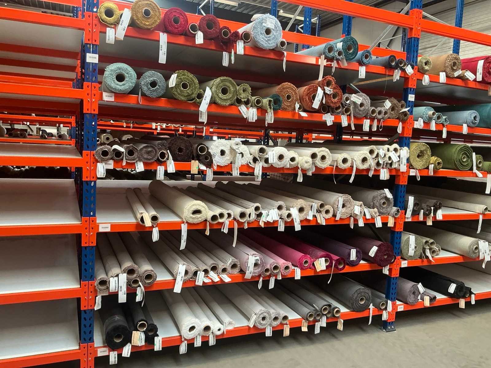 Bestaande uit inhoud sectie, diverse rollen textiel / stof. Diverse designs, soorten stof. Diverse lengtes