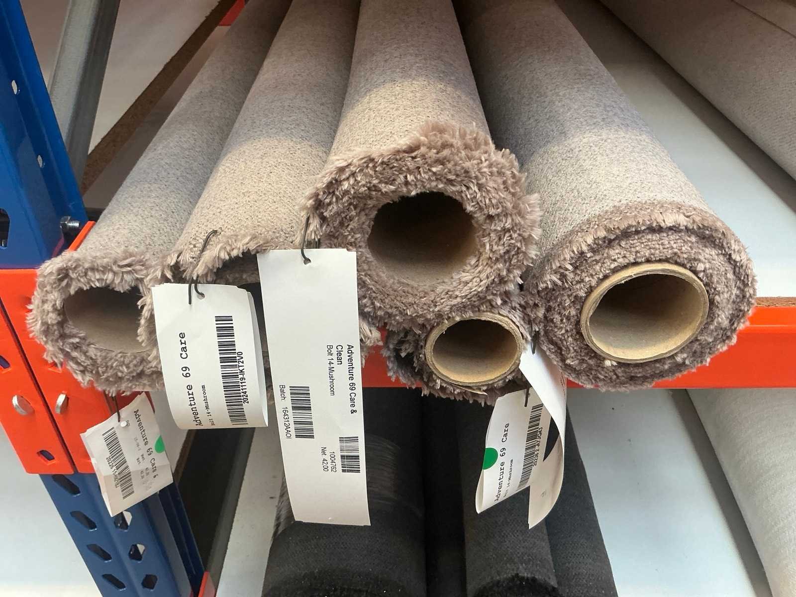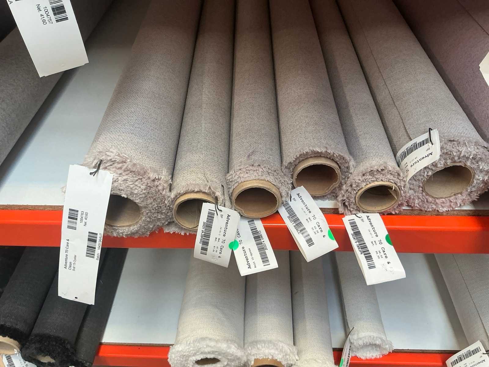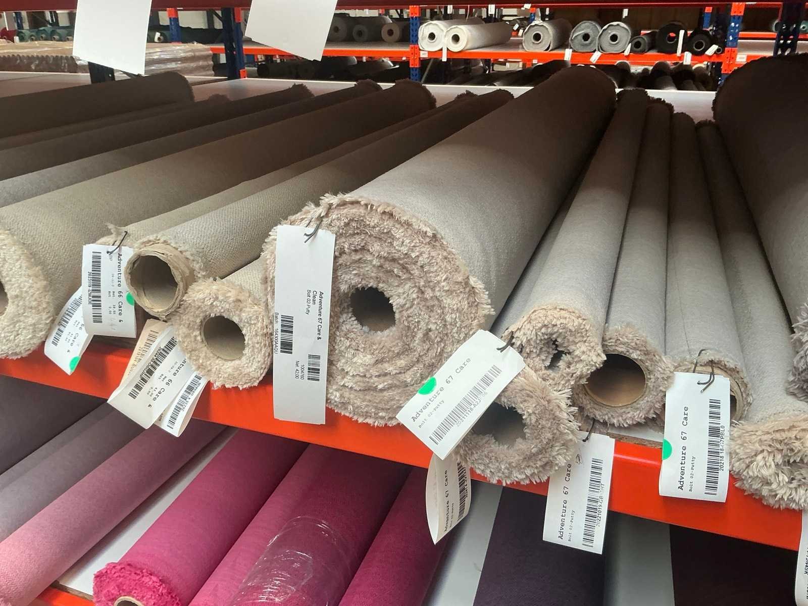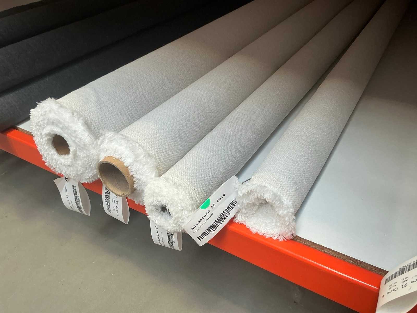 Bestaande uit inhoud sectie, diverse rollen textiel / stof. Diverse designs, soorten stof. Diverse lengtes