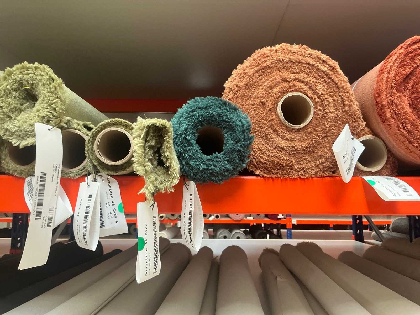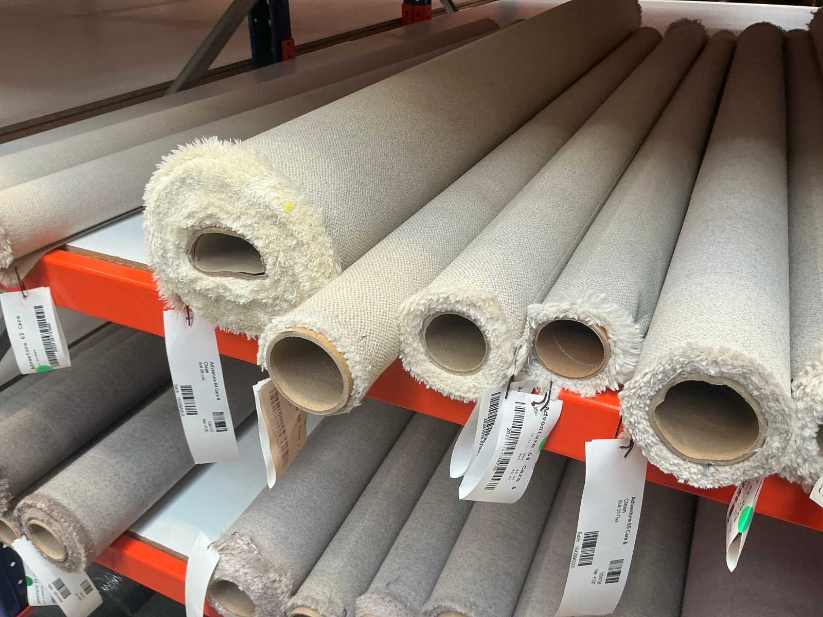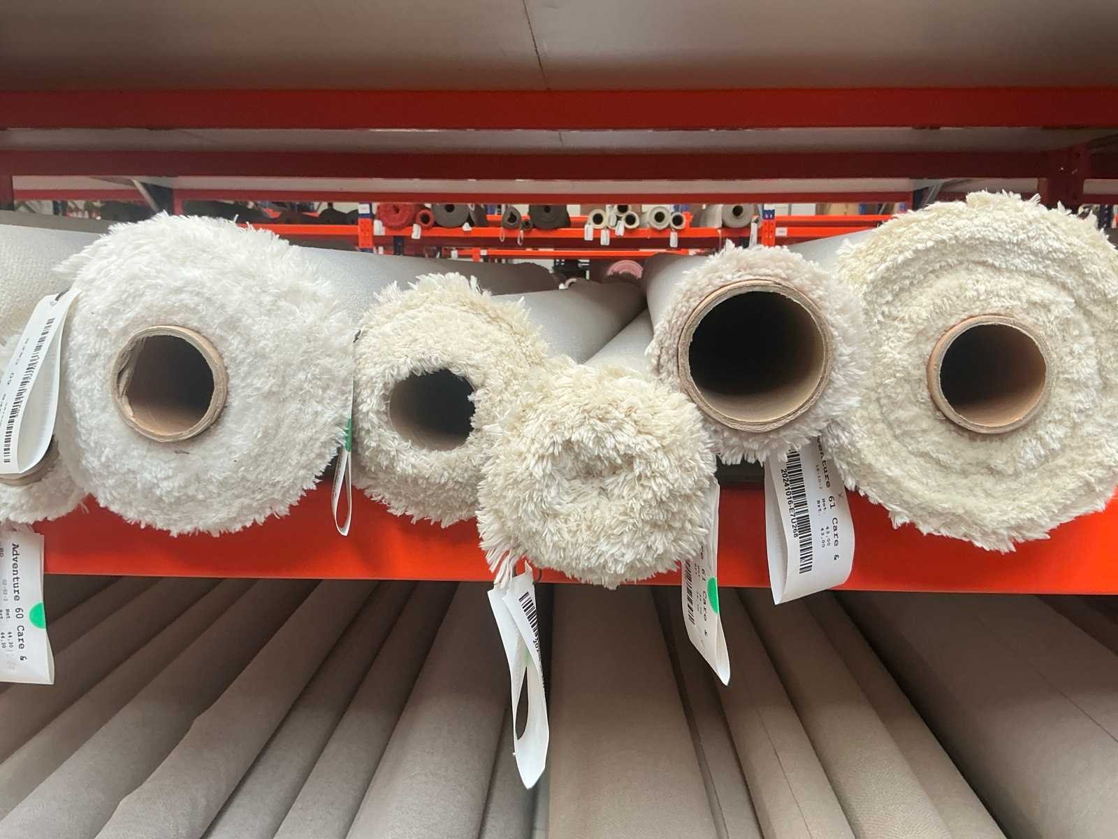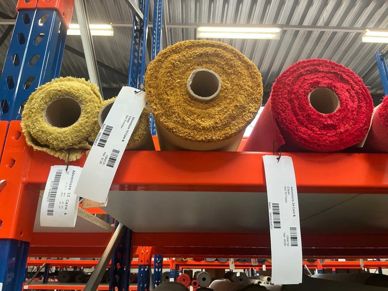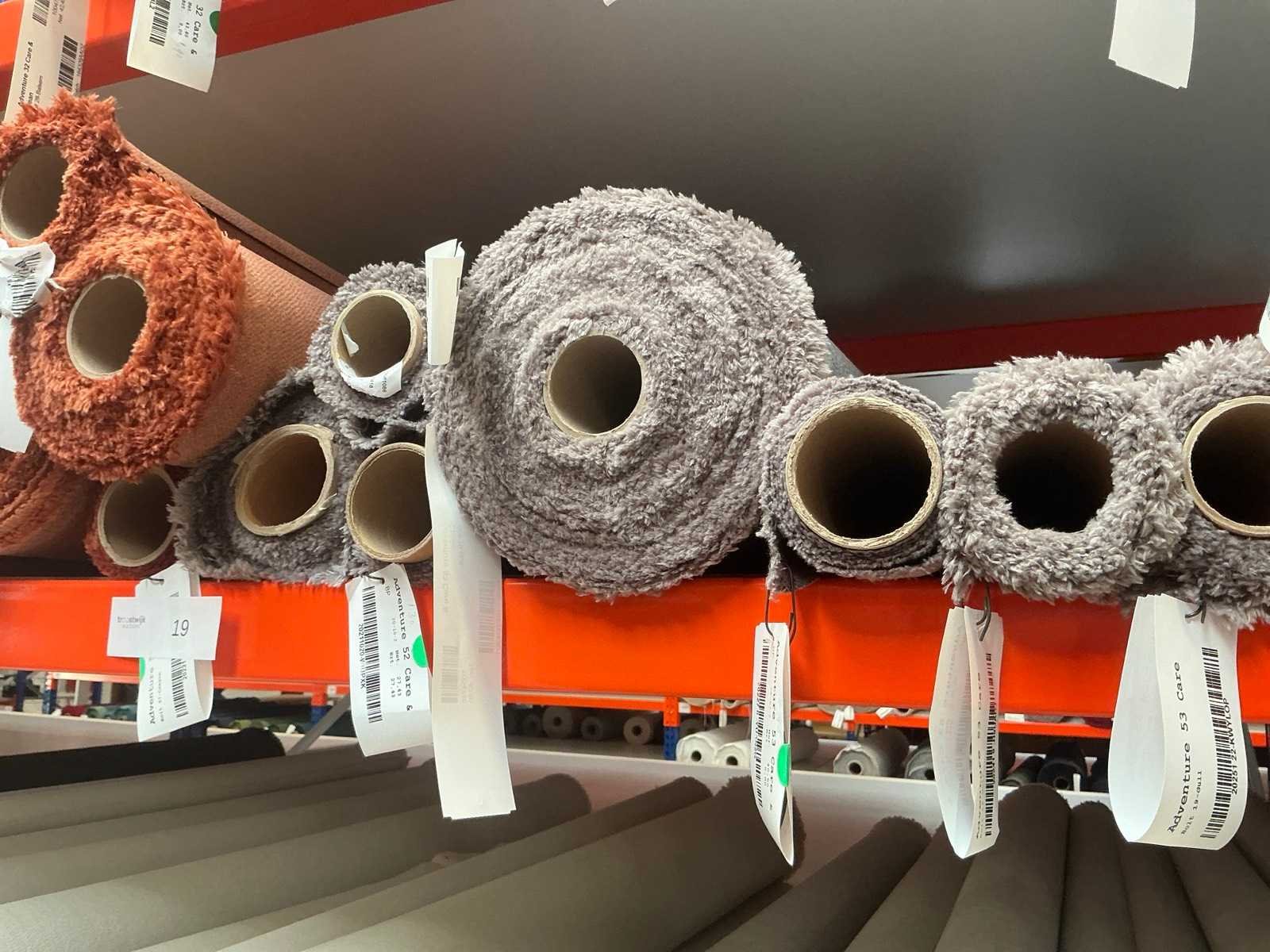 Bestaande uit inhoud sectie, diverse rollen textiel / stof. Diverse designs, soorten stof. Diverse lengtes