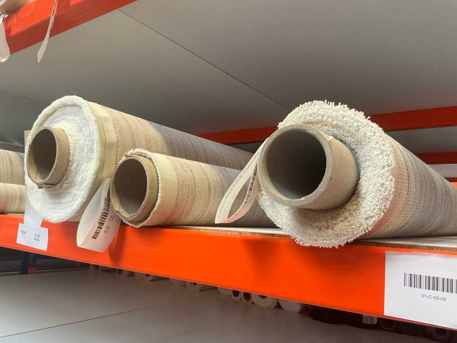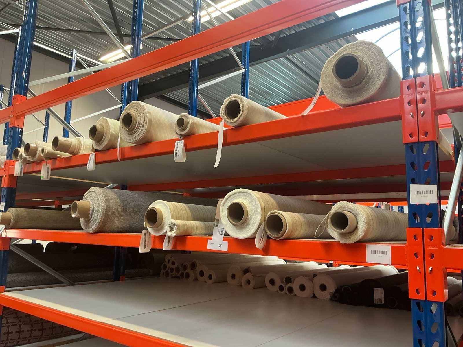 Bestaande uit inhoud sectie, diverse rollen textiel / stof. Diverse designs, soorten stof. Diverse lengtes