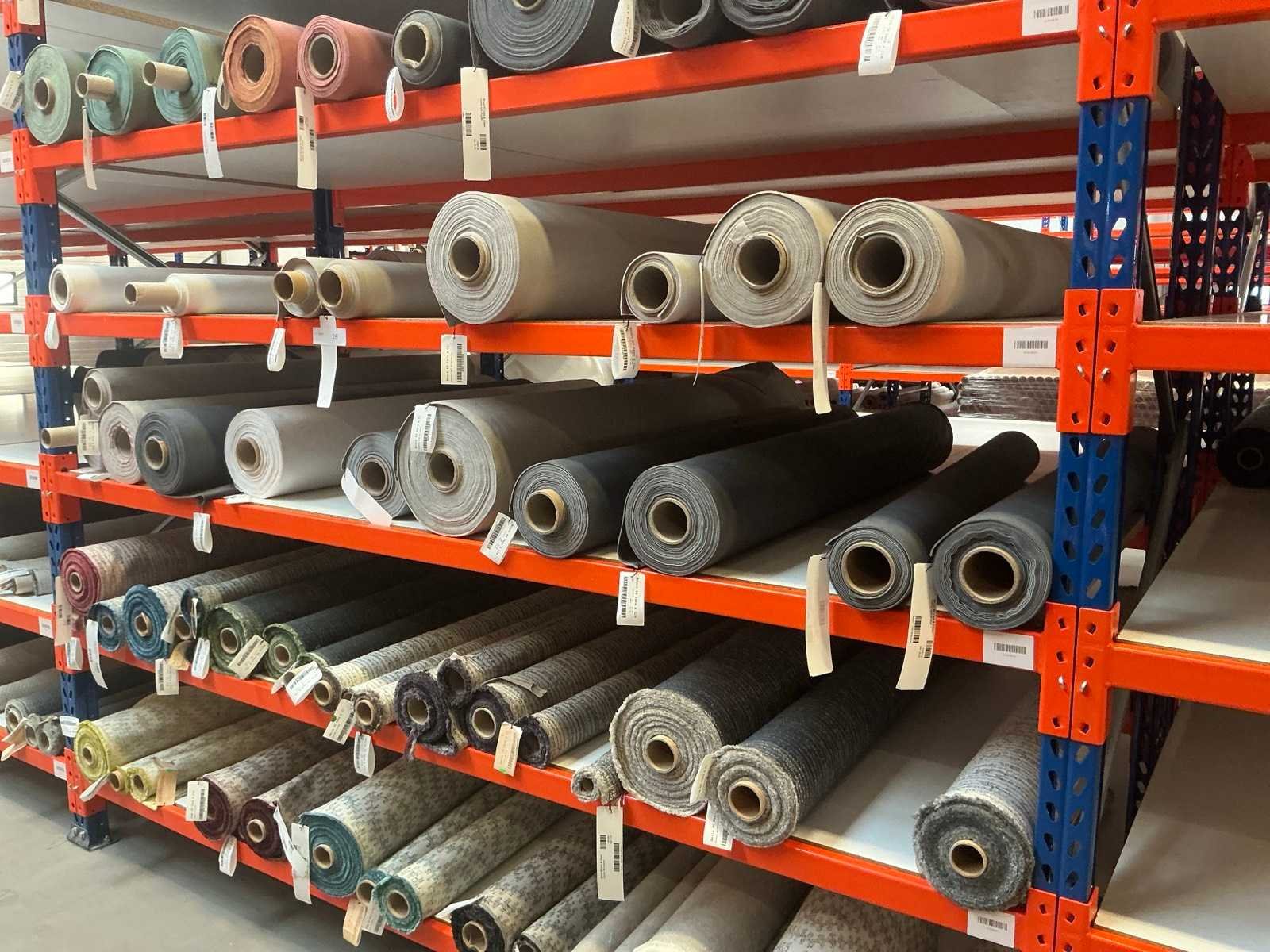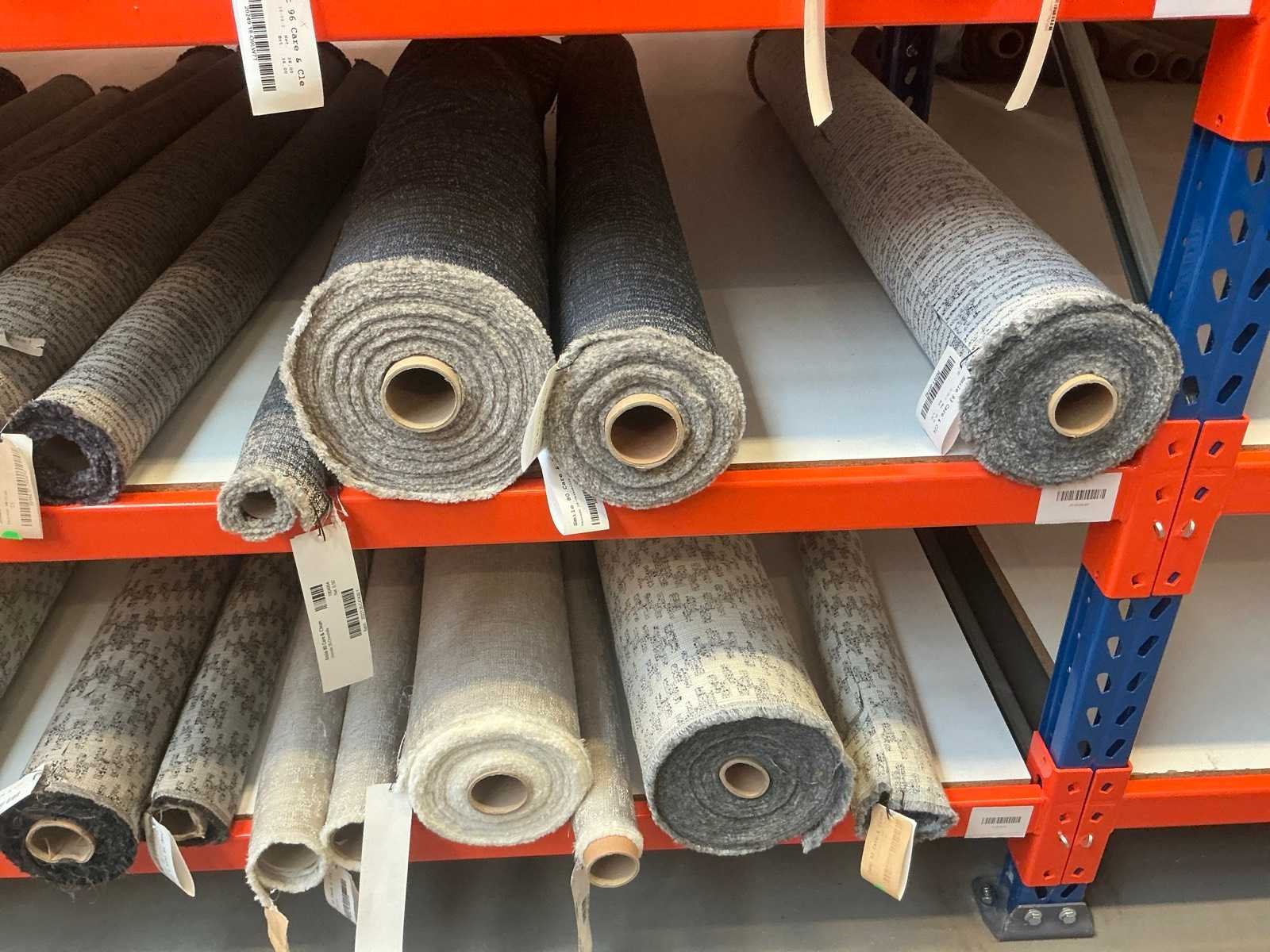 Bestaande uit inhoud sectie, diverse rollen textiel / stof. Diverse designs, soorten stof. Diverse lengtes